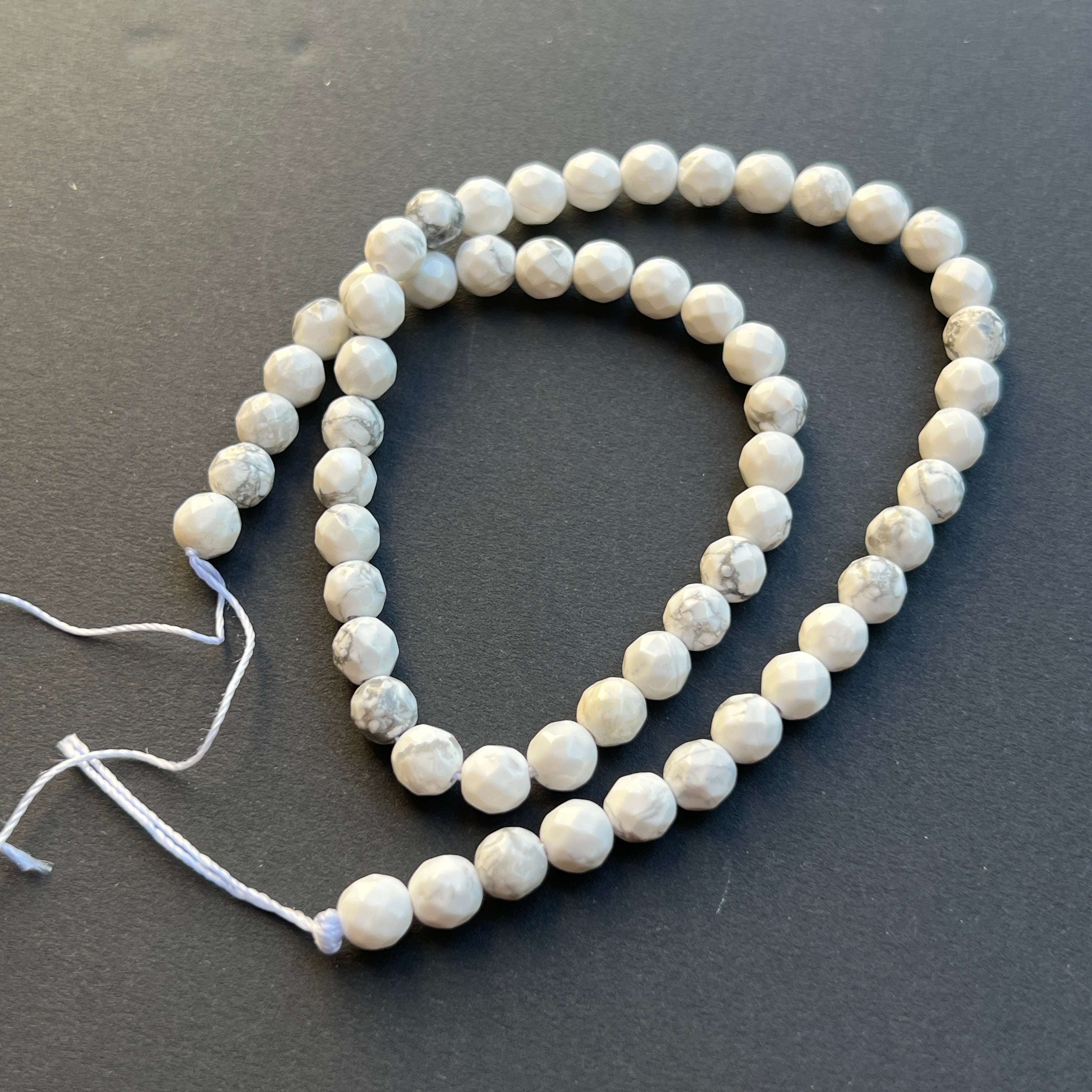 Hilo de cuentas piedras semipreciosas esferas facetadas HOWLIT BLANCO