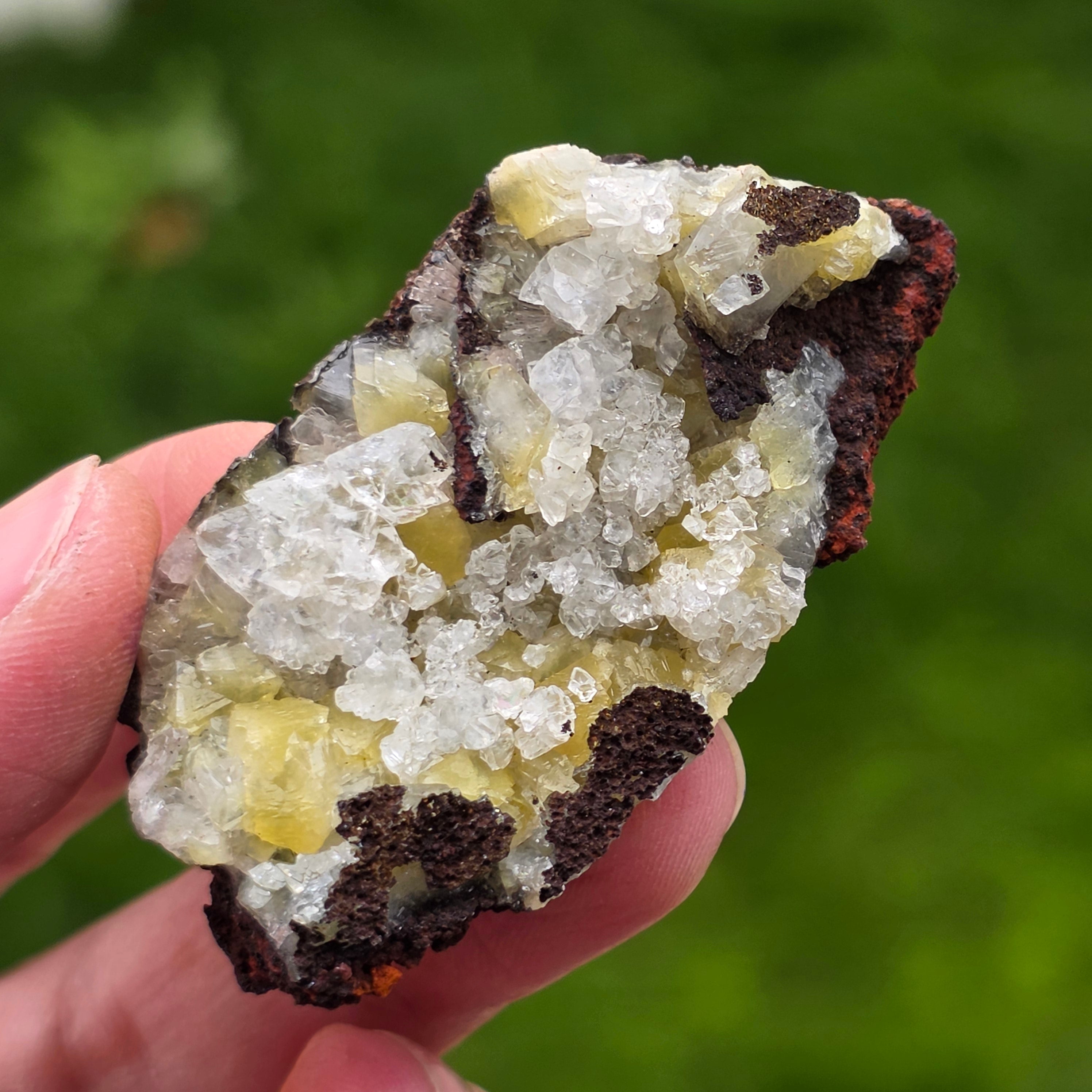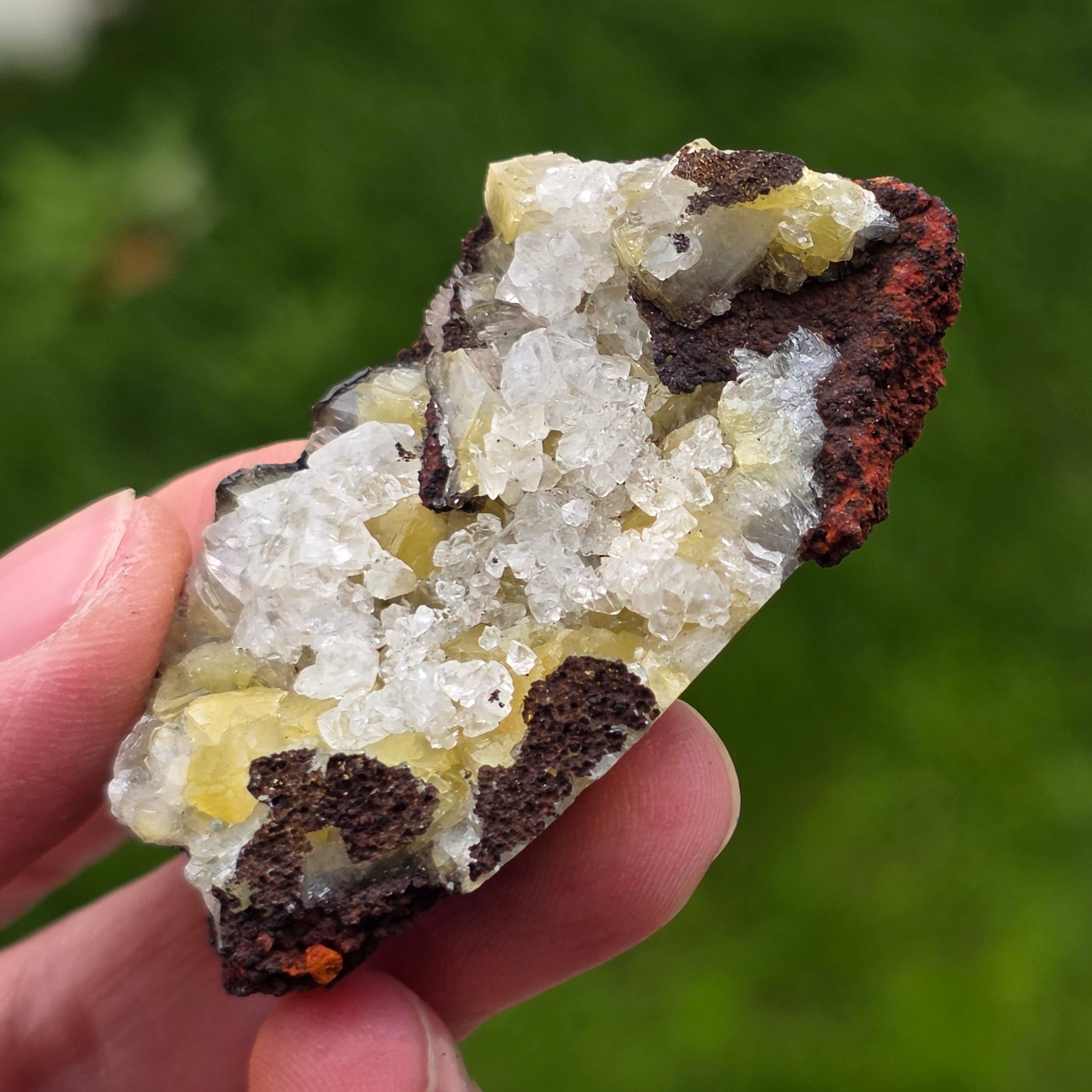 El adamit aparece en forma de cristales finos o agregados compactos, dispuestos sobre matriz, con un aspecto vibrante y expresivo. A la luz natural, los cristales presentan tonalidades de verde, verde-amarillo o amarillo intenso, y bajo luz ultravioleta se destacan por su fuerte fluorescencia, que transforma completamente la apariencia del espécimen y lo hace extremadamente atractivo para los coleccionistas.