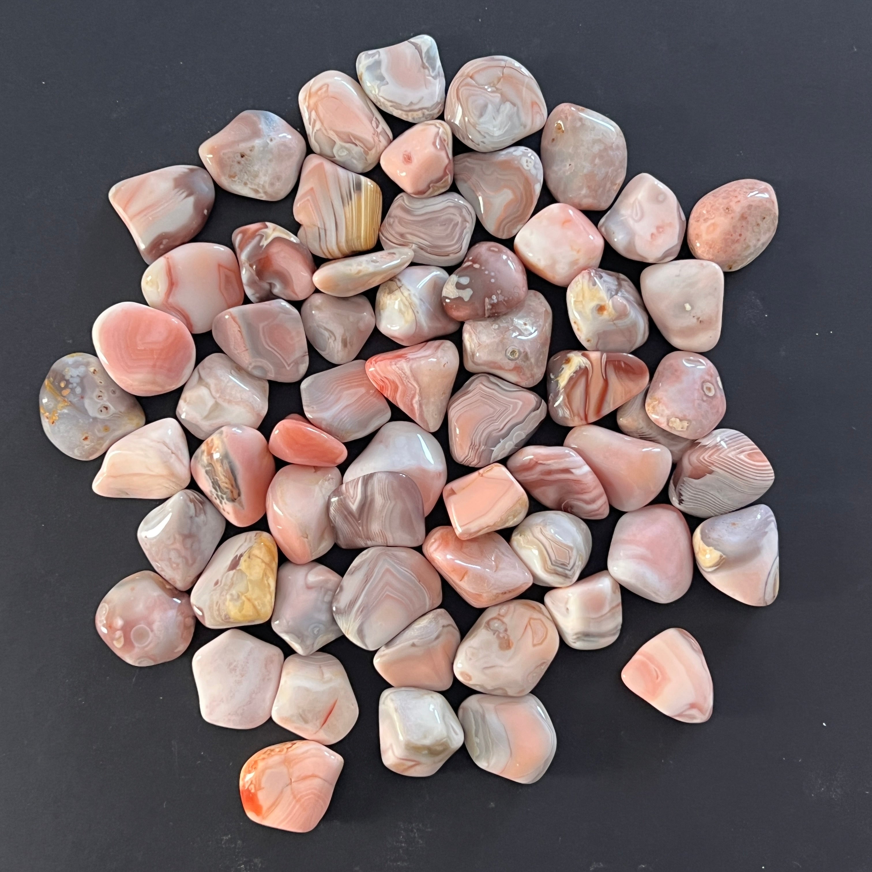 El ágata de Botswana es una variedad rara y elegante de ágata, reconocida por sus finas bandas en tonos de gris, rosa, blanco y marrón, proveniente de Botswana. Es una piedra de confort emocional y protección, que calma las ansiedades y miedos profundos. Apoya los procesos de transformación interior, ayudando a liberar el pensamiento negativo. Está asociada con el chakra raíz y el chakra del tercer ojo (Ajna – chakra 6), favoreciendo la estabilidad interior y la claridad mental. El ágata de Botswana se utiliza a menudo en meditación para aumentar la concentración y la intuición.