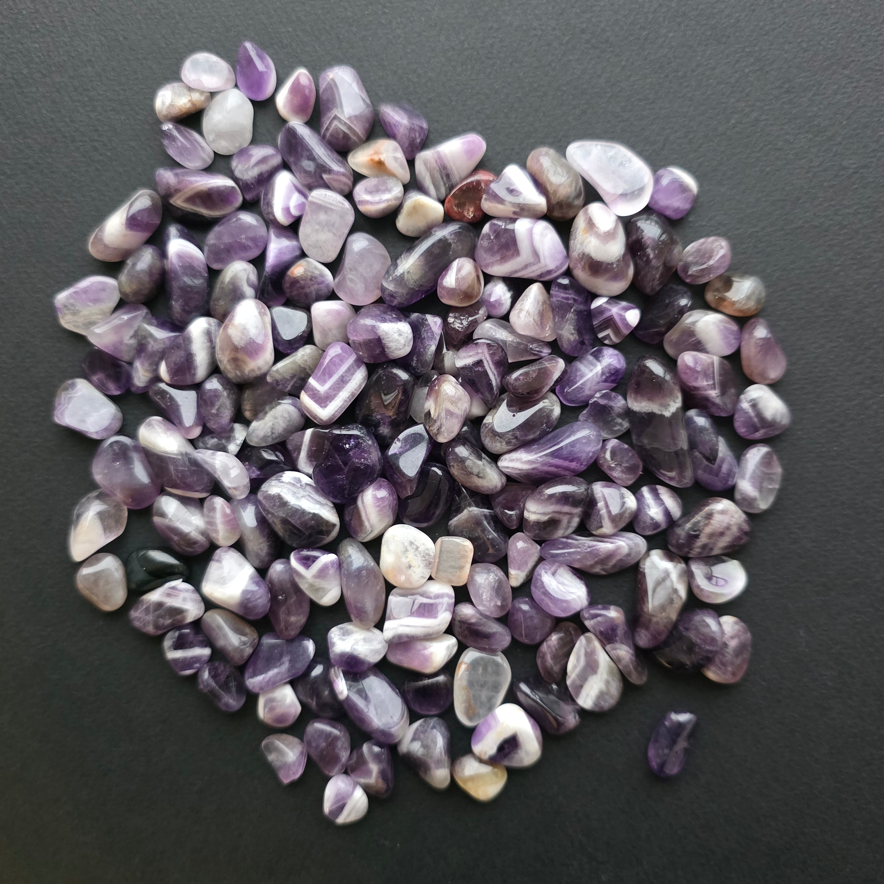 Tipo: chips de amatista chevron Zambia (piedras pequeñas pulidas, irregulares)