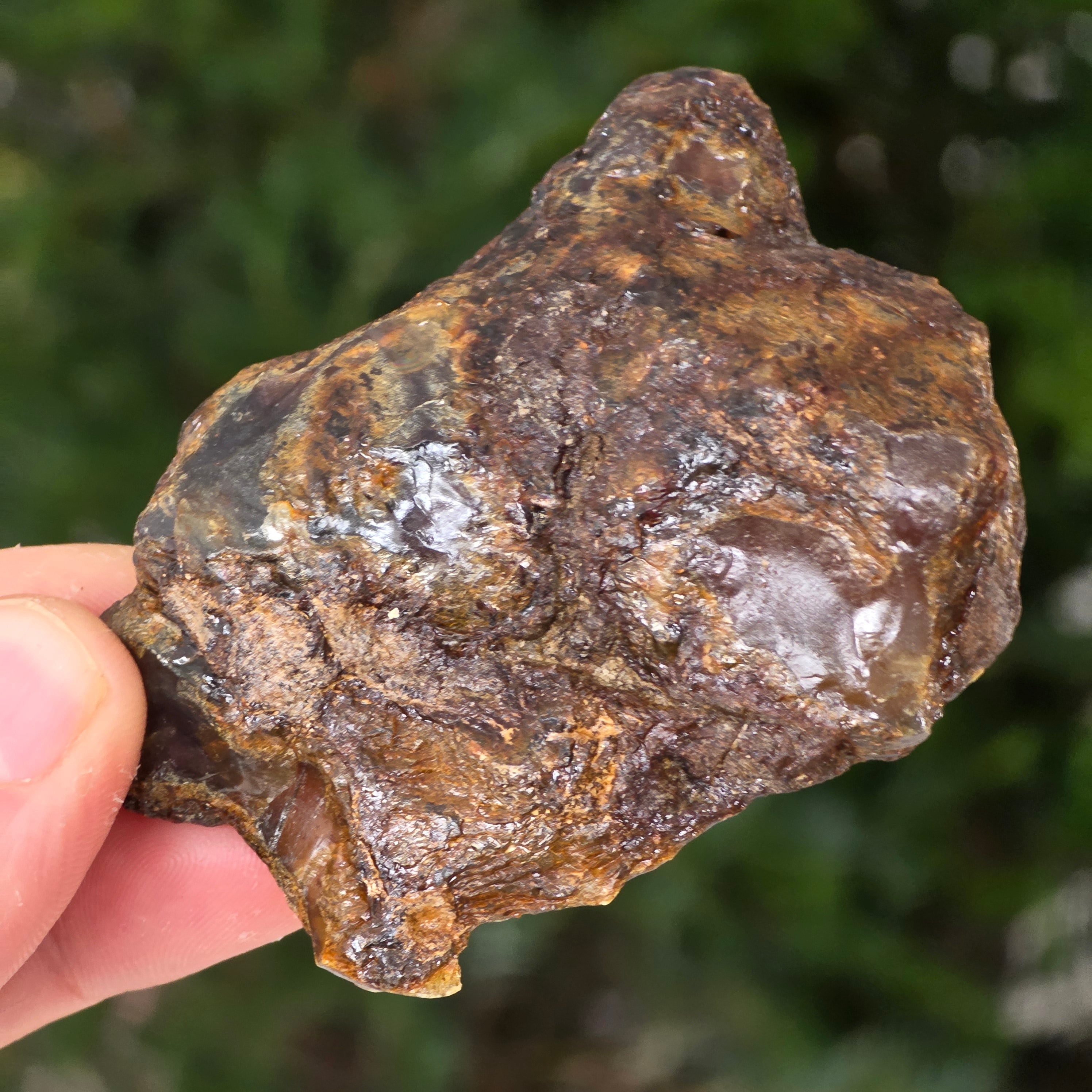 Especimen natural de ámbar fósil en bruto, proveniente de la región de Sumatra, Indonesia, una de las pocas fuentes activas de ámbar en el Sudeste Asiático. Esta zona tropical es conocida por sus suelos ricos en sedimentos orgánicos y su intensa actividad geológica, condiciones ideales para la formación del ámbar.