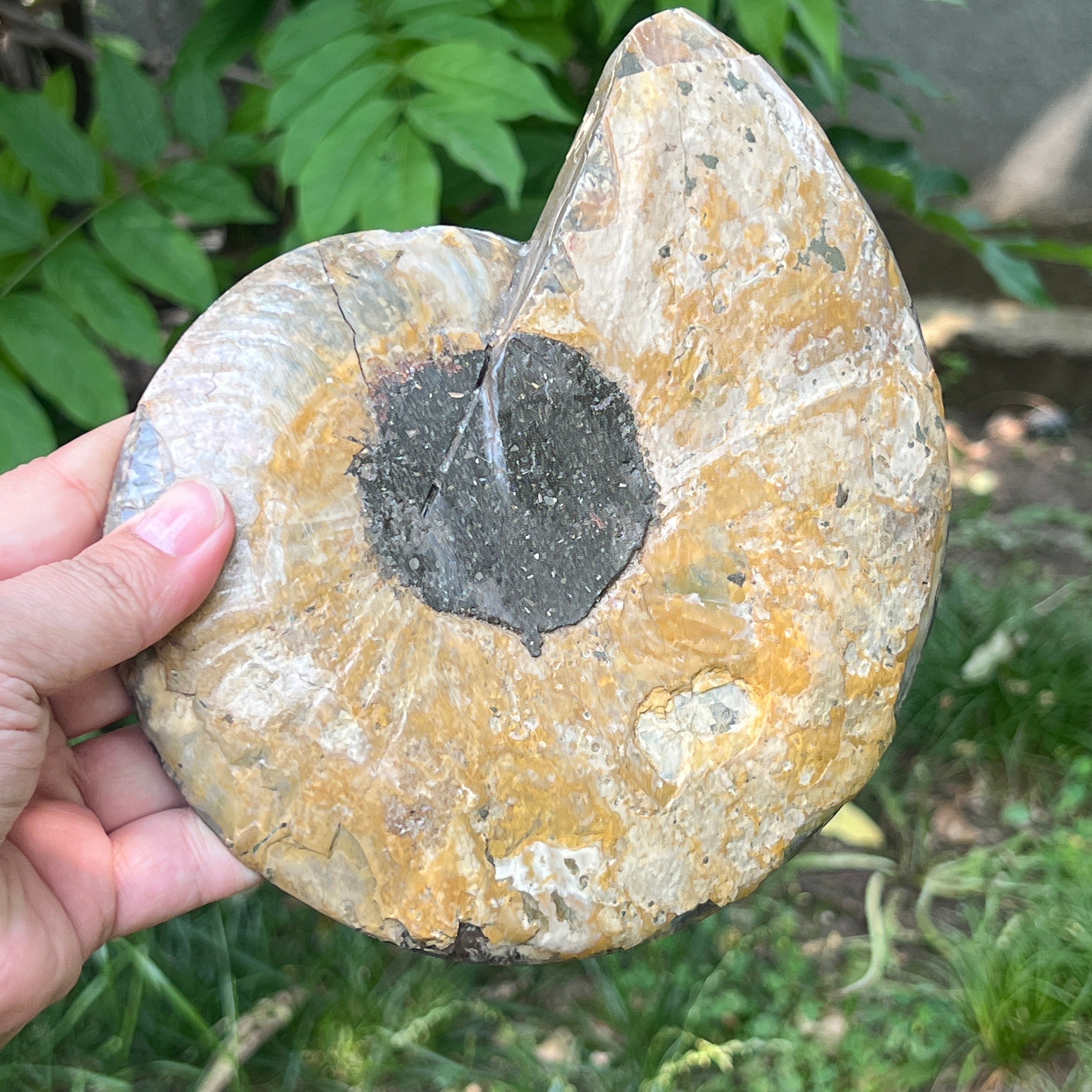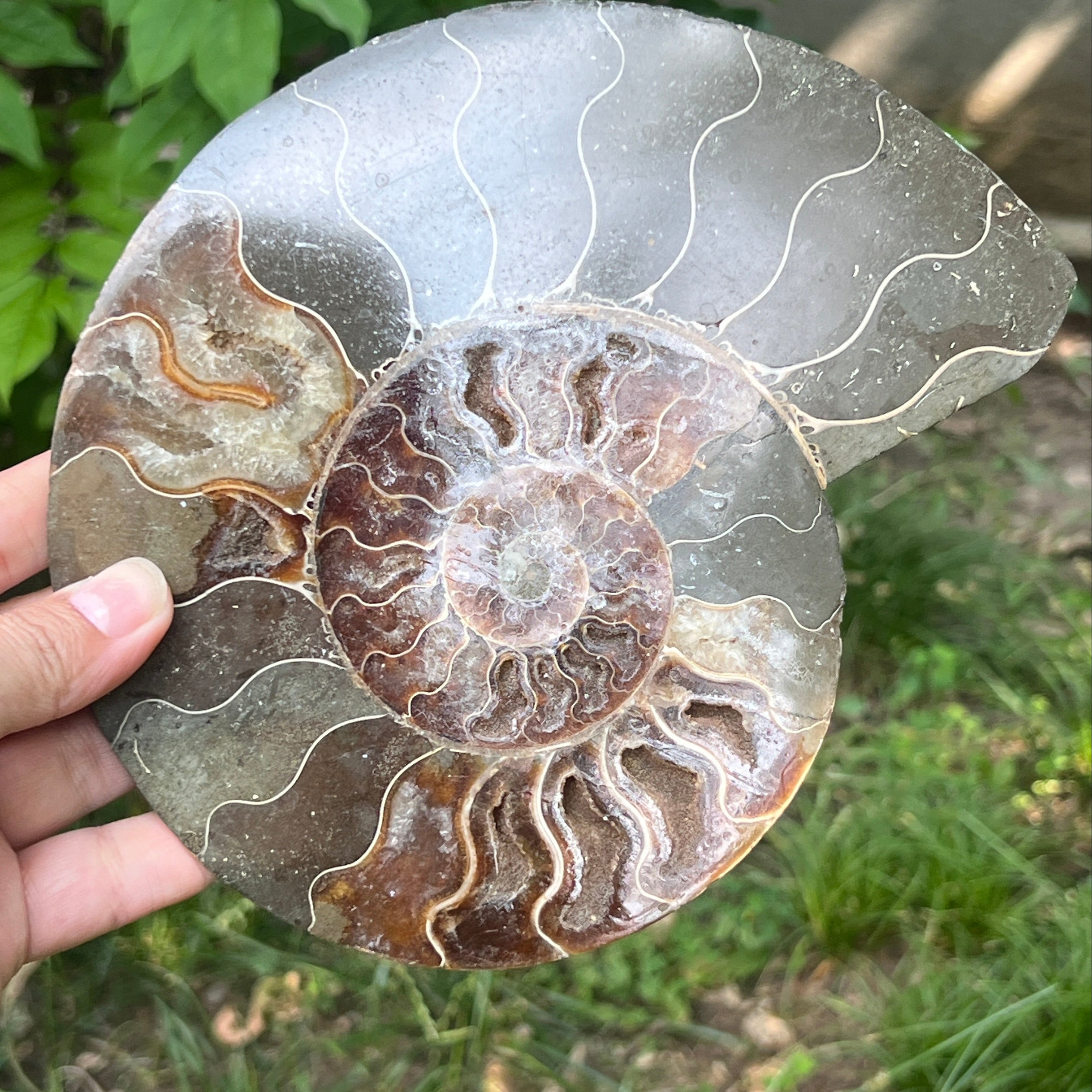 Para crear los cristales fósiles de amonites, los fósiles en bruto se cortan y se procesan con cuidado. Se pulen y se lustran para revelar las conchas en espiral y sus adornos. Luego, se montan en joyas o se procesan para convertirse en objetos decorativos.