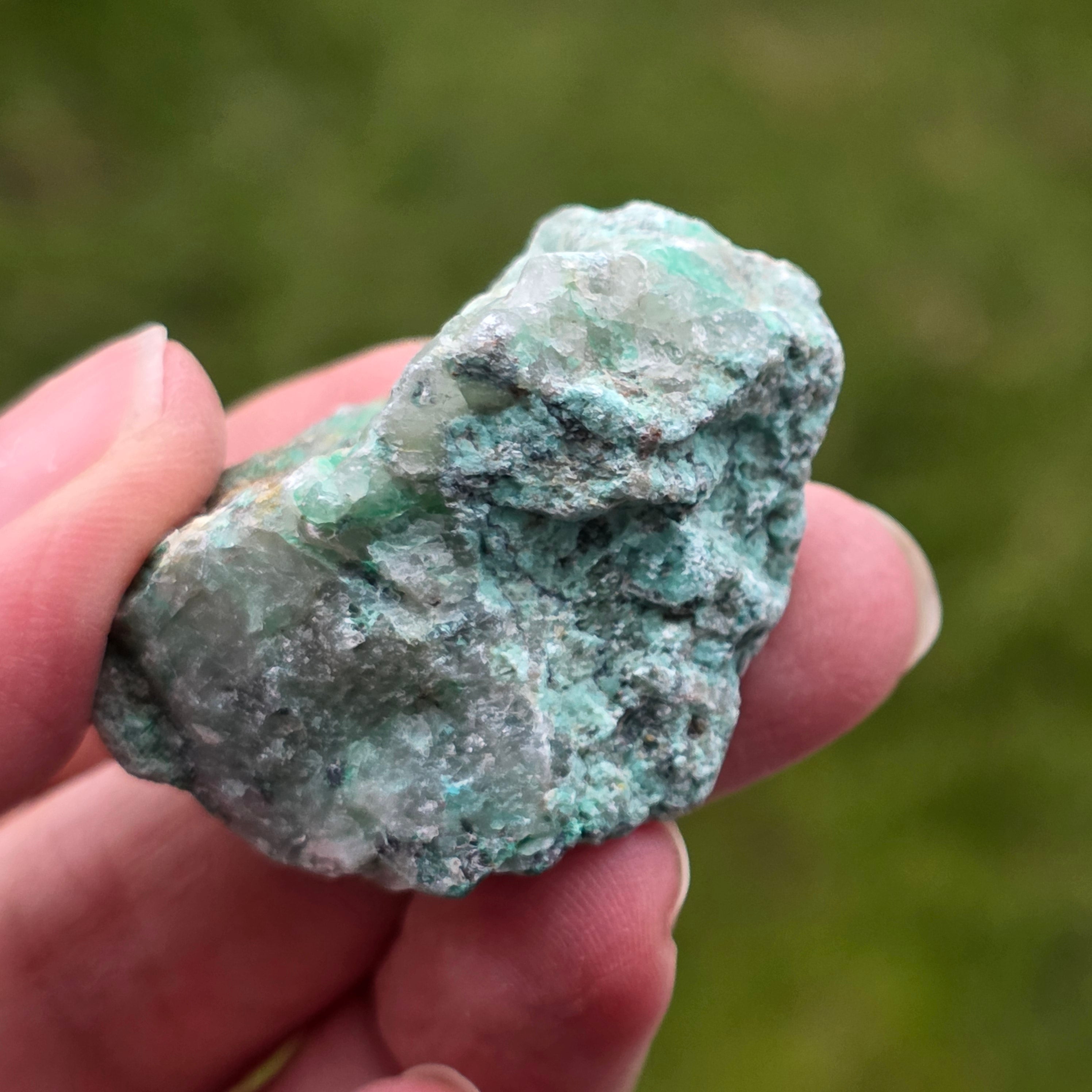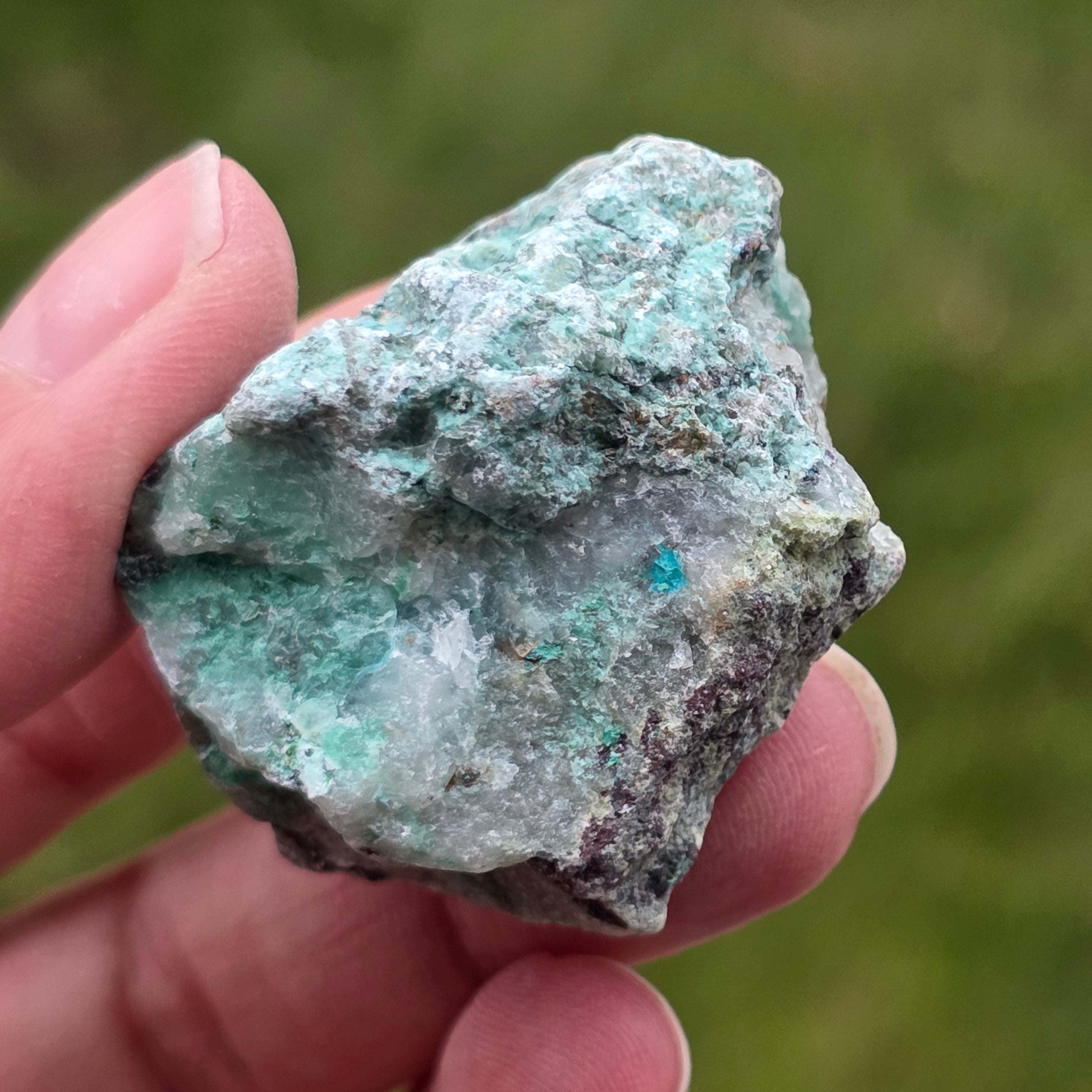 Ajoit es una piedra rara que está compuesta de silicato de sodio y cobre de color verde intenso.