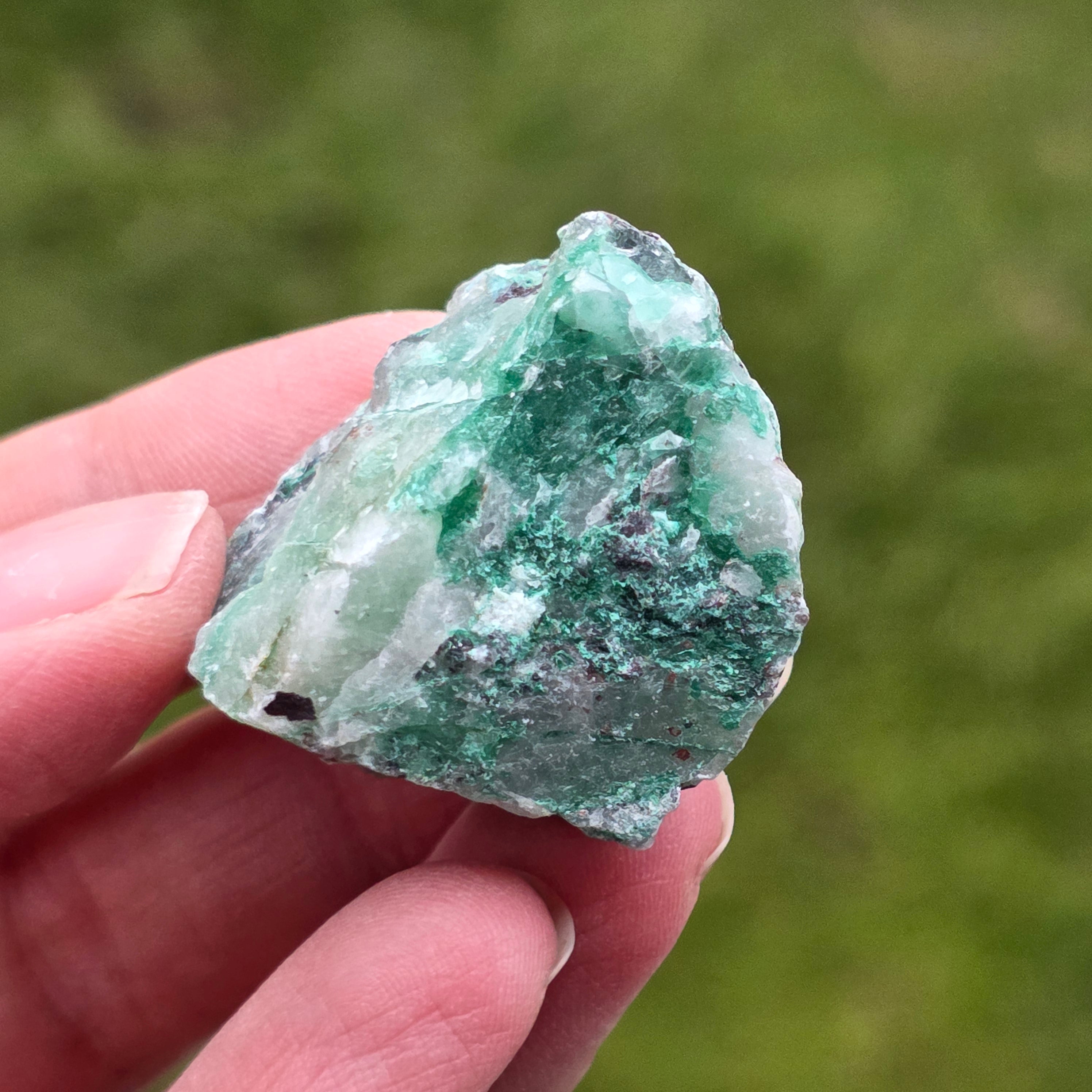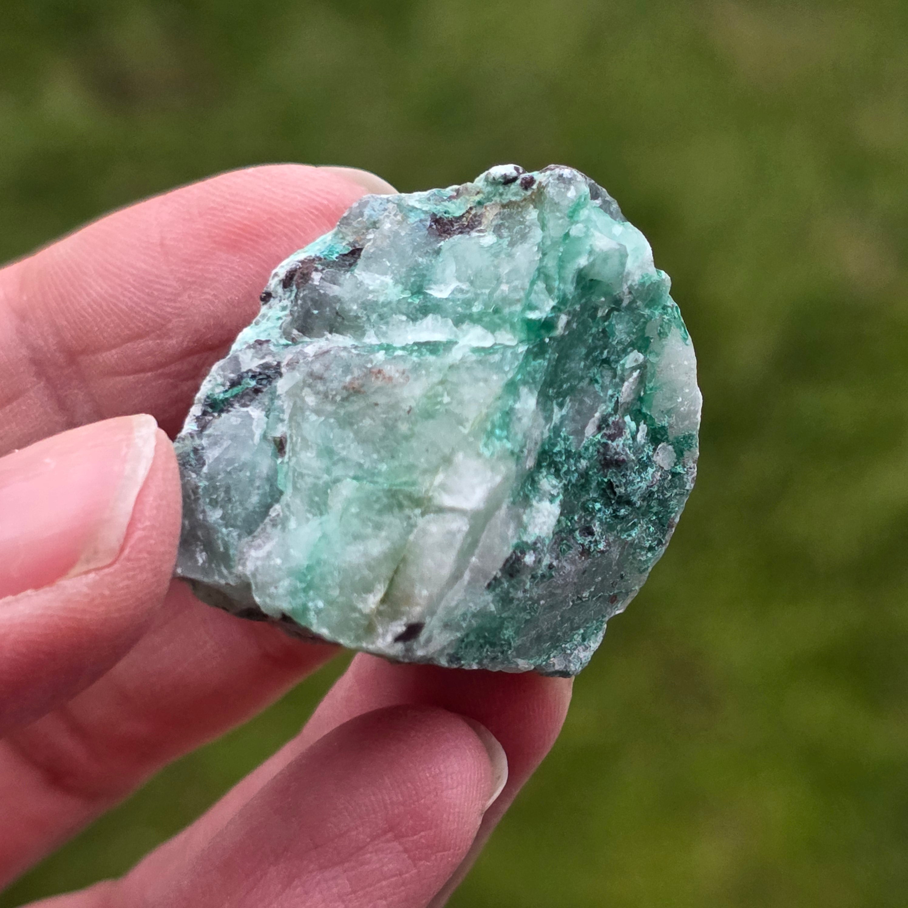 Ajoit es una piedra rara que está compuesta de silicato de sodio y cobre de color verde intenso.