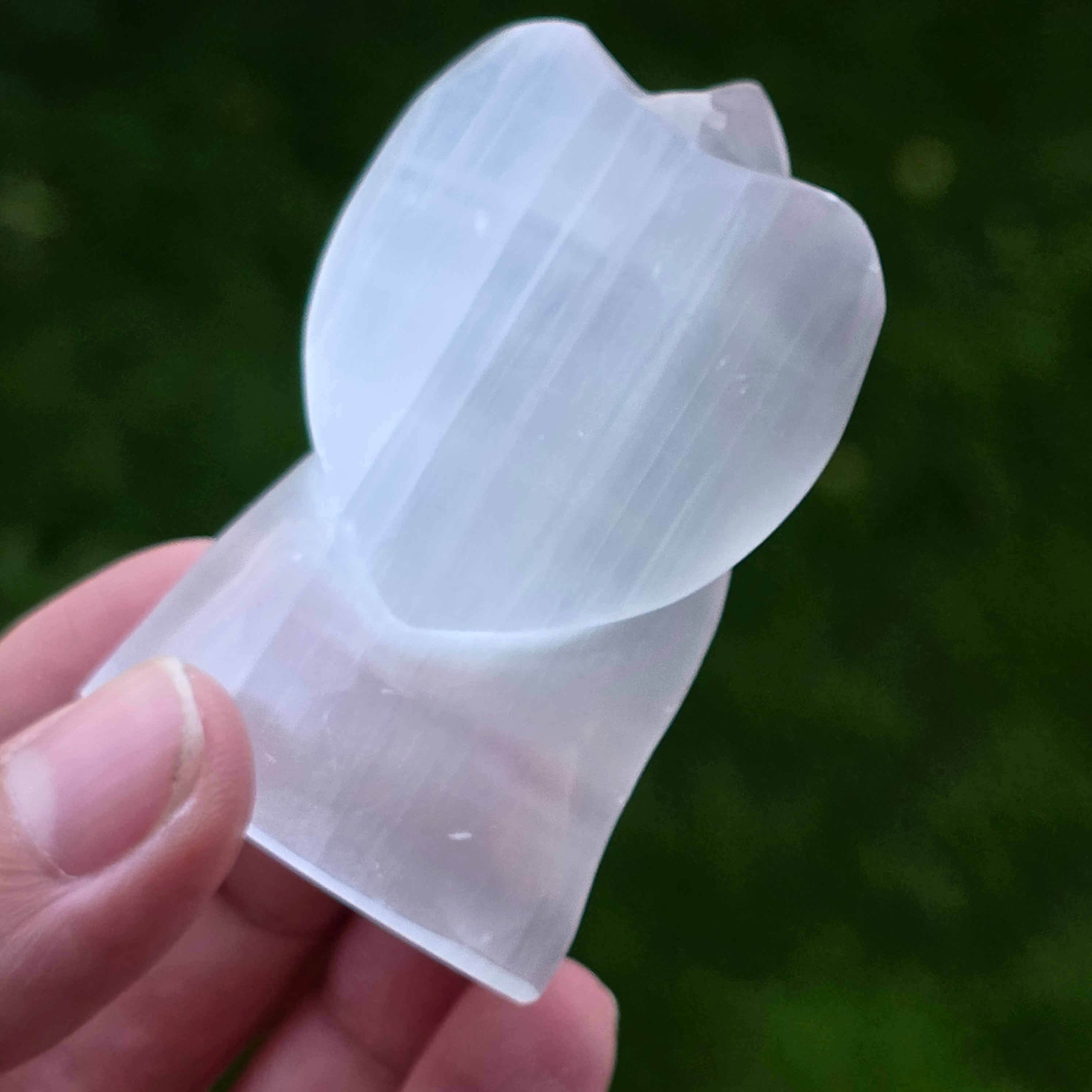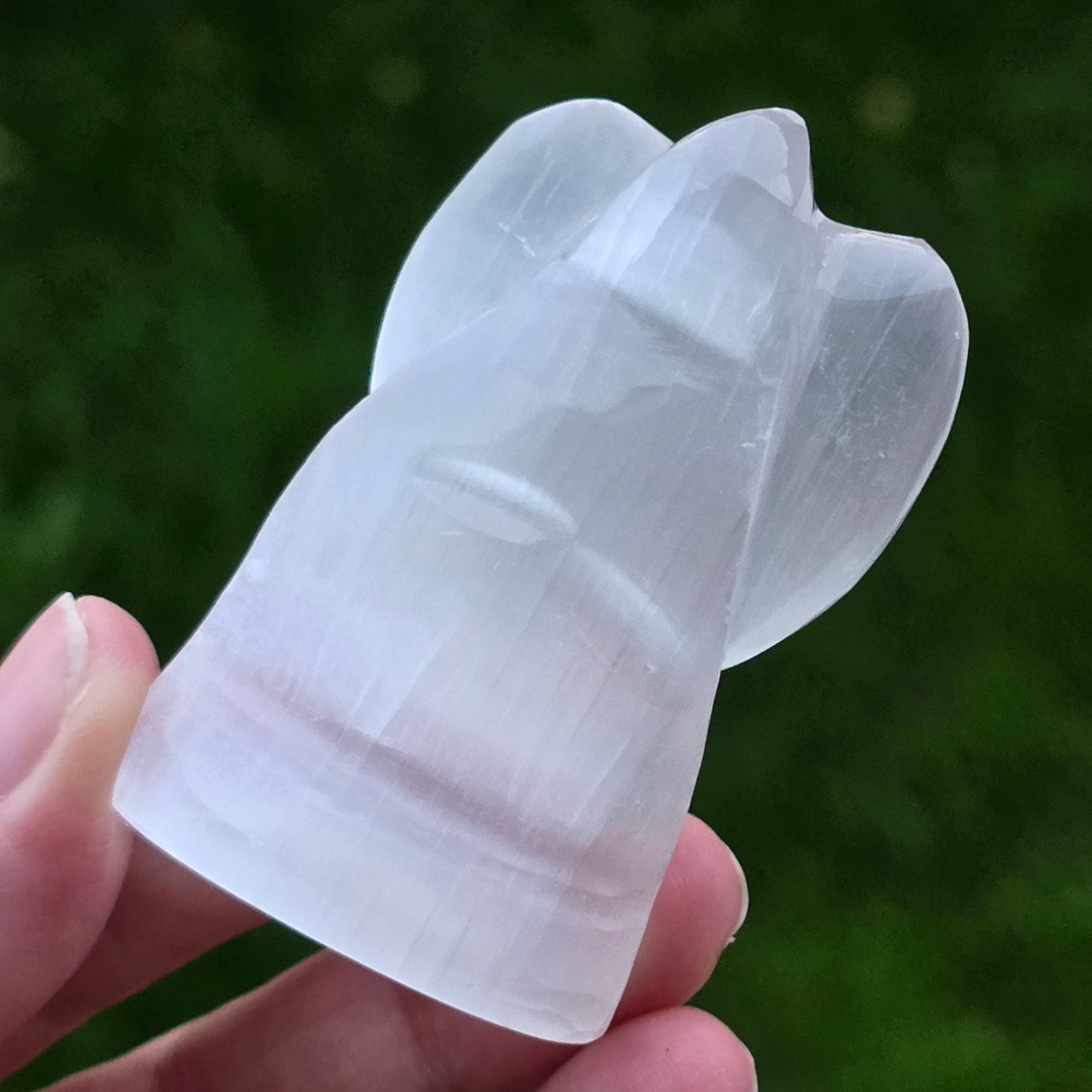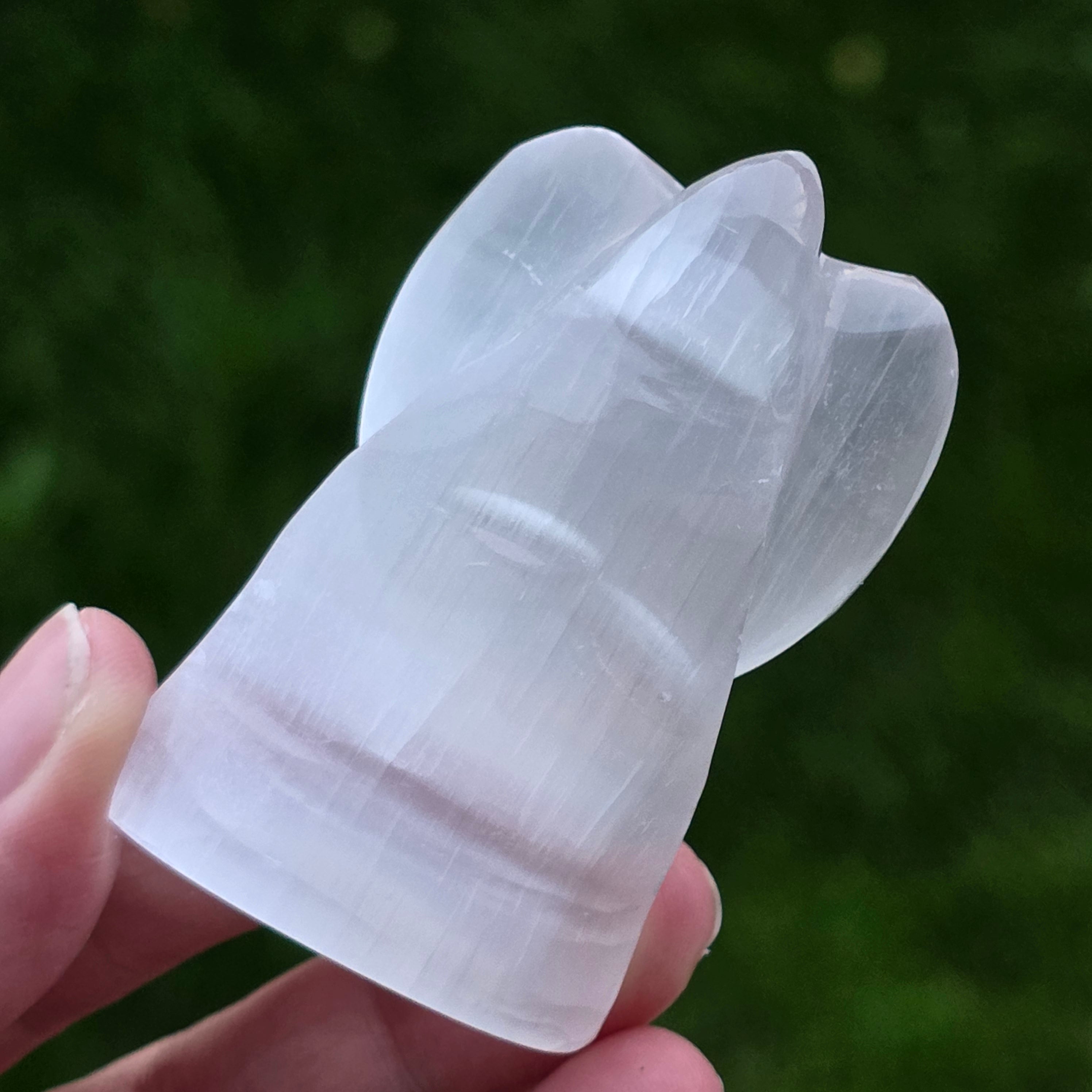 El ángel de Selenita es una de las esculturas más delicadas y luminosas que se pueden añadir a una colección de minerales. La selenita, conocida por su brillo filigranado, casi etéreo, es un cristal que siempre parece guardar en su interior un fragmento de luz. En esta forma de ángel, la piedra se convierte en algo más que un mineral: se convierte en un símbolo de protección, claridad y paz interior.