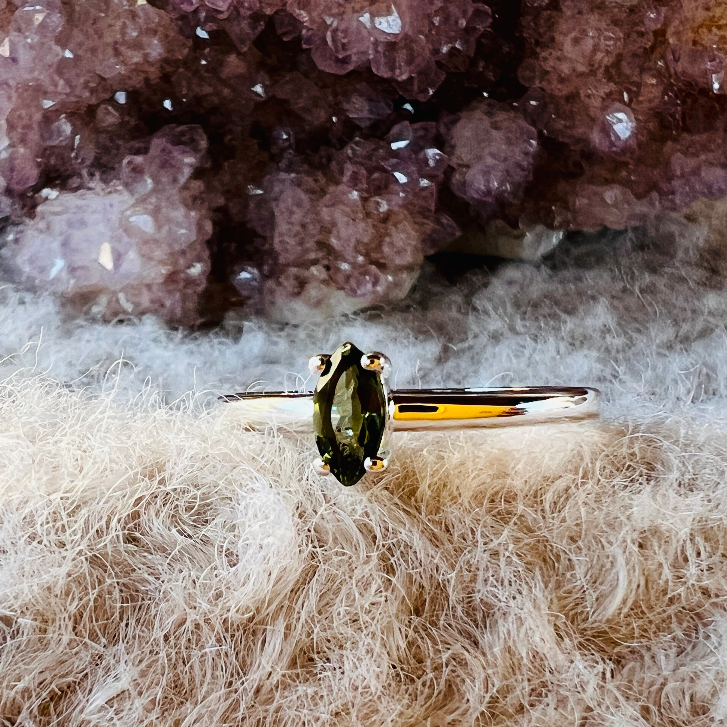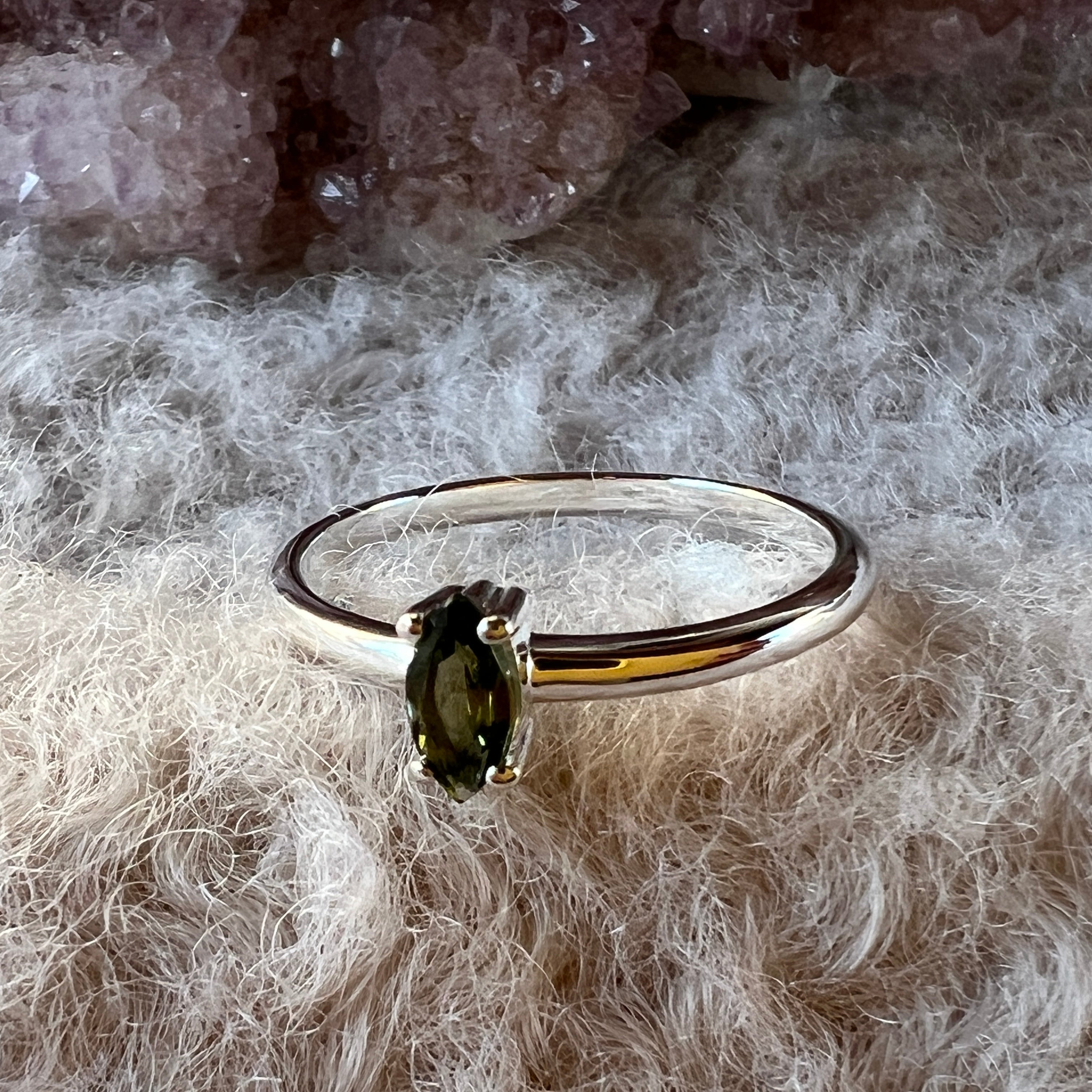 Anillo de moldavita de plata Oval 3x6 mm, por favor seleccione la talla deseada.