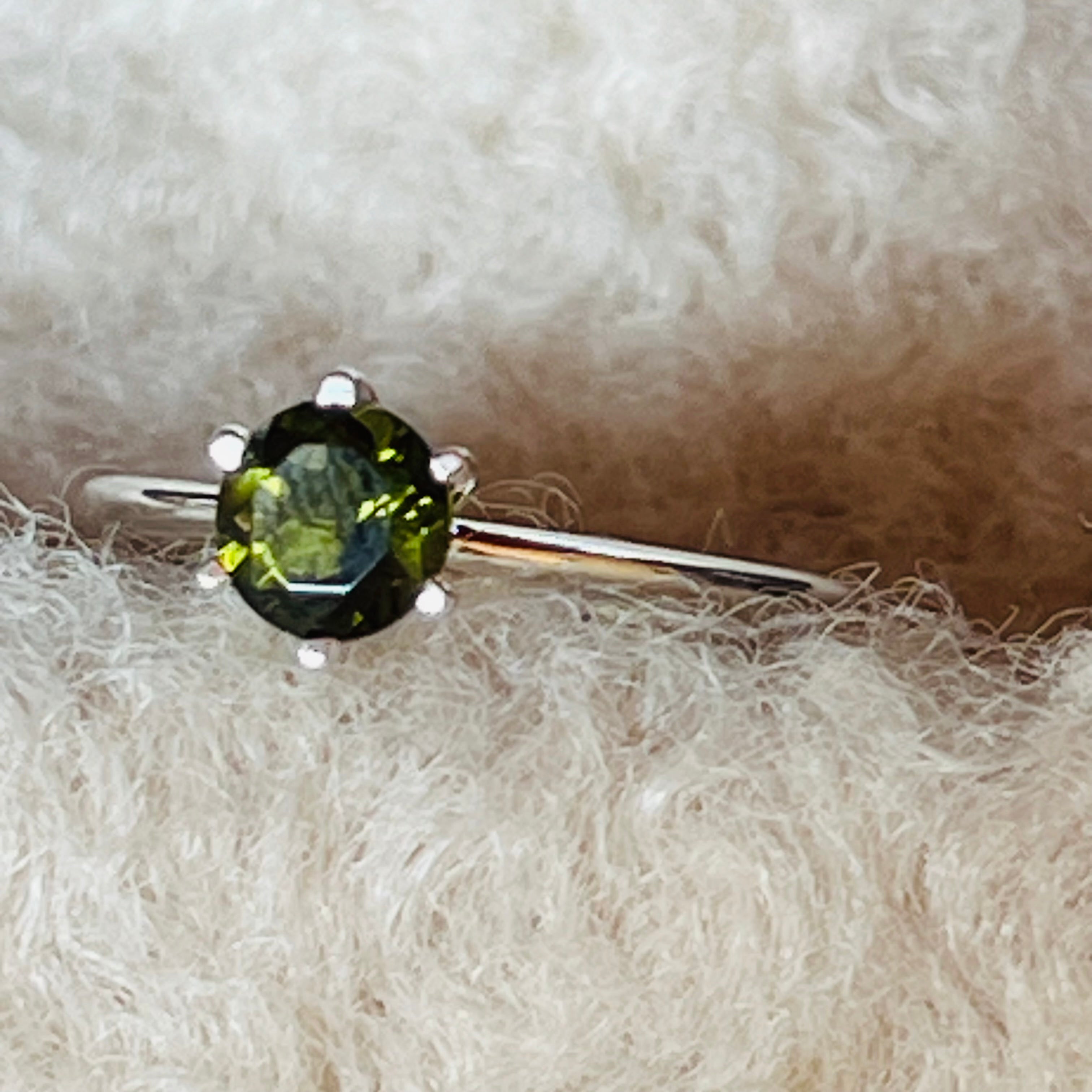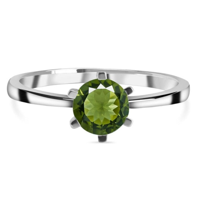 Anillo de moldavita de plata Redondo 6 mm, por favor seleccione la talla deseada.