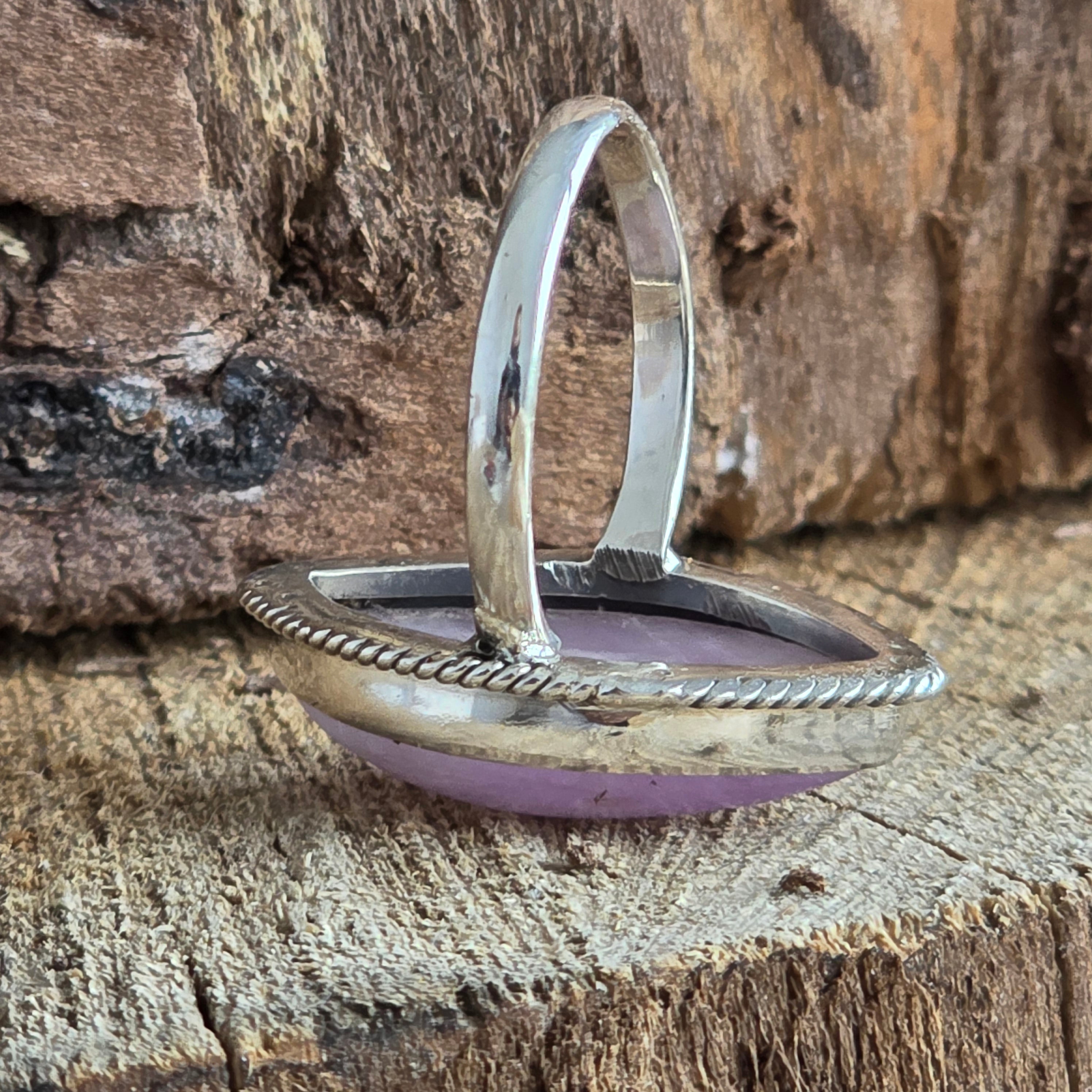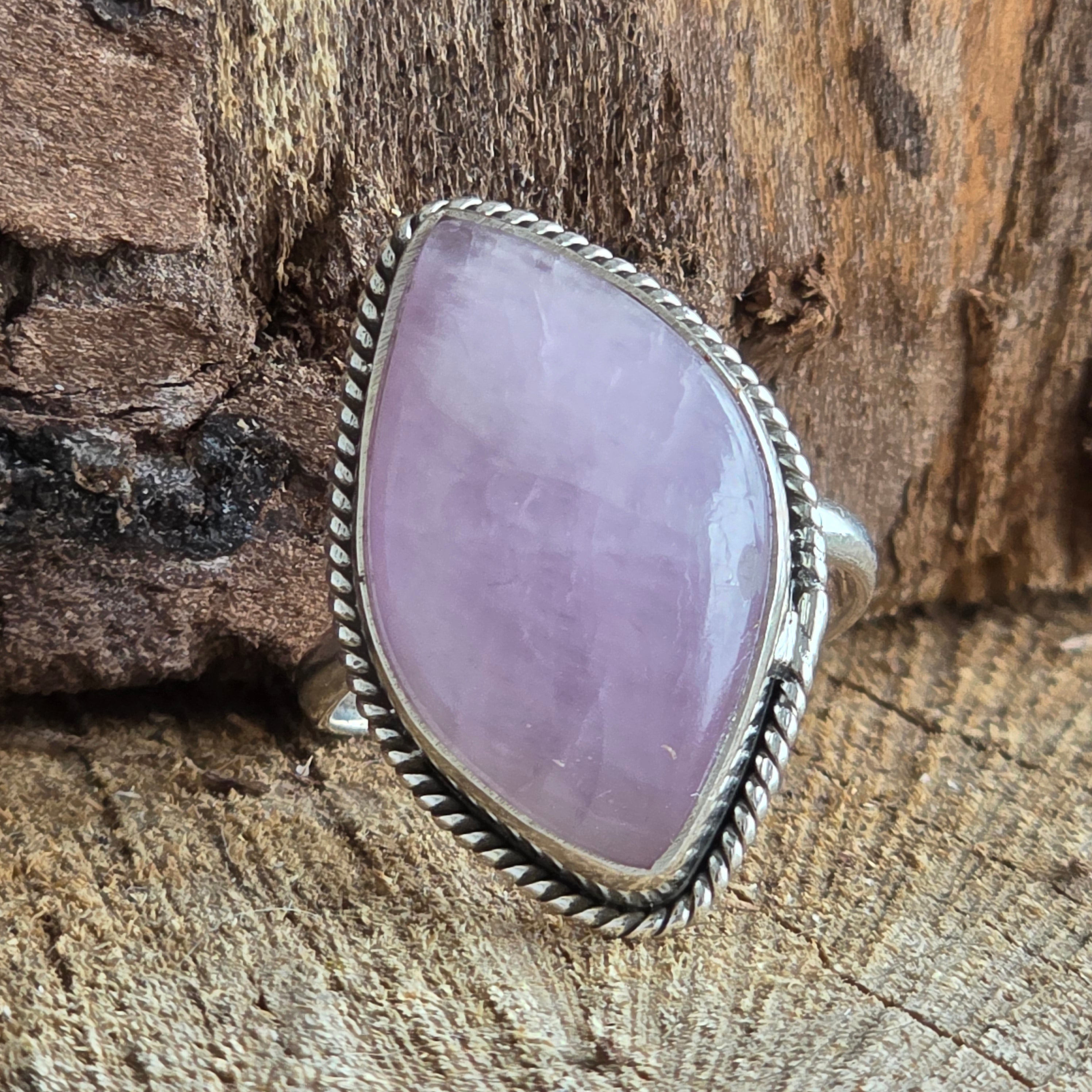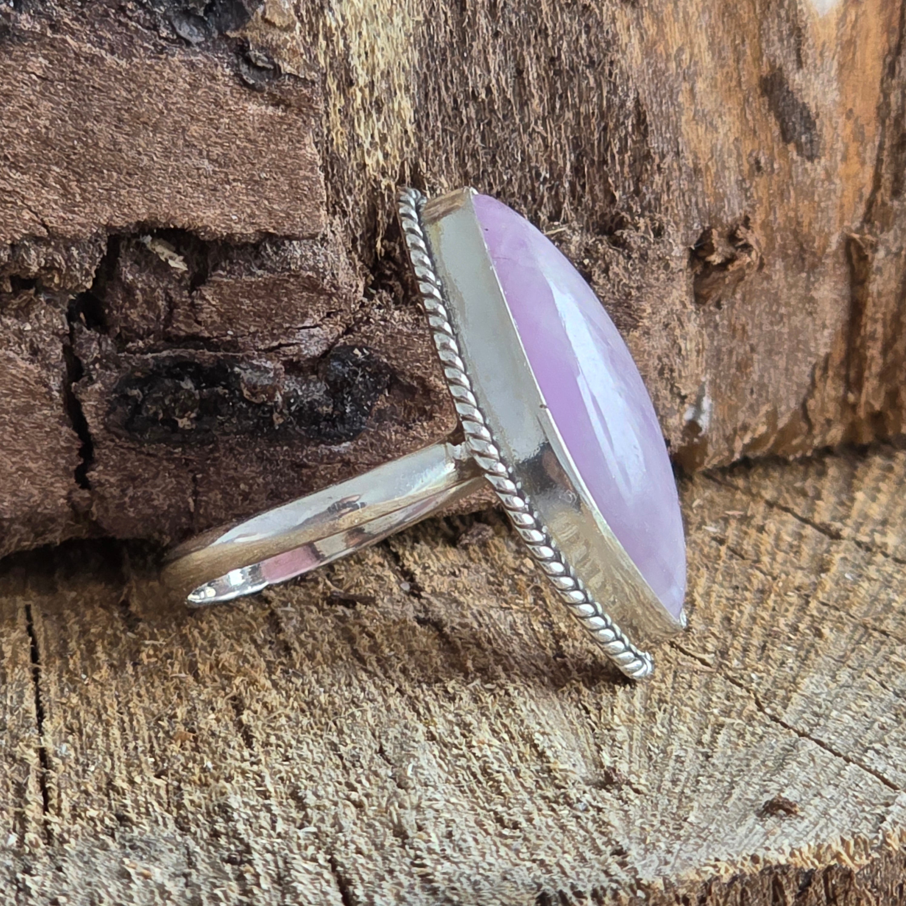 Un exquisito anillo de plata 925, que lleva en su centro la delicadeza de una piedra preciosa kunzita natural – con finos tonos rosa pálido y reflejos traslúcidos que parecen respirar luz.