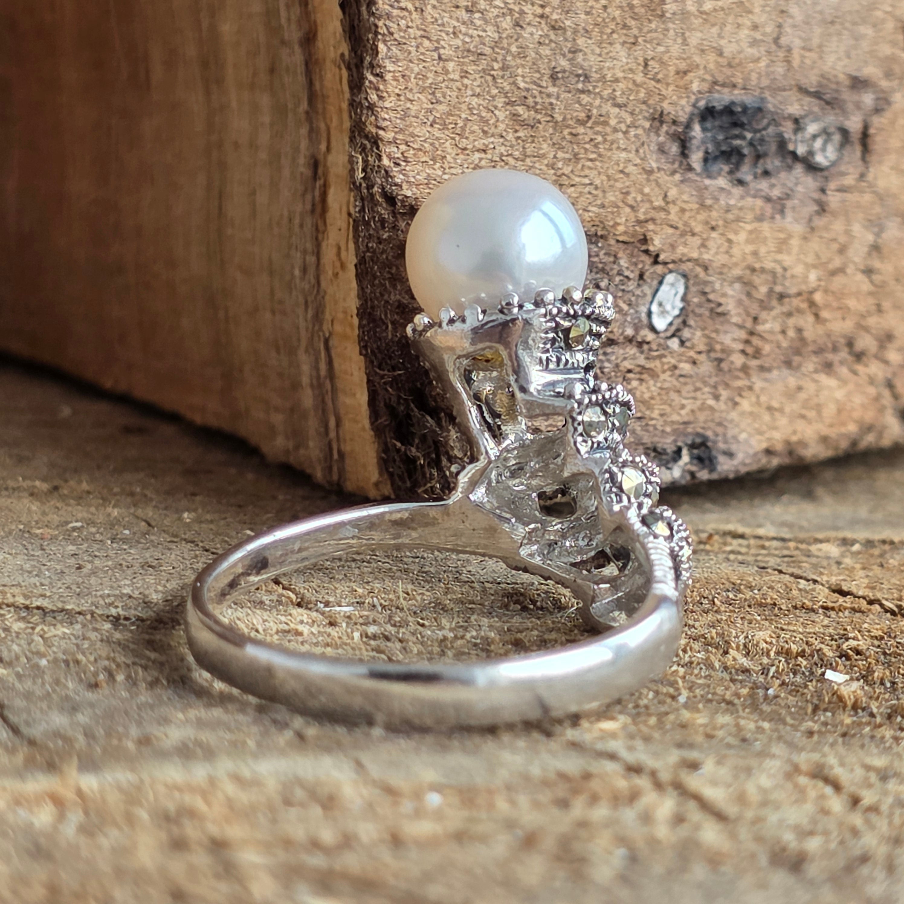 Anillo de perla de plata, marcasita | DÚO