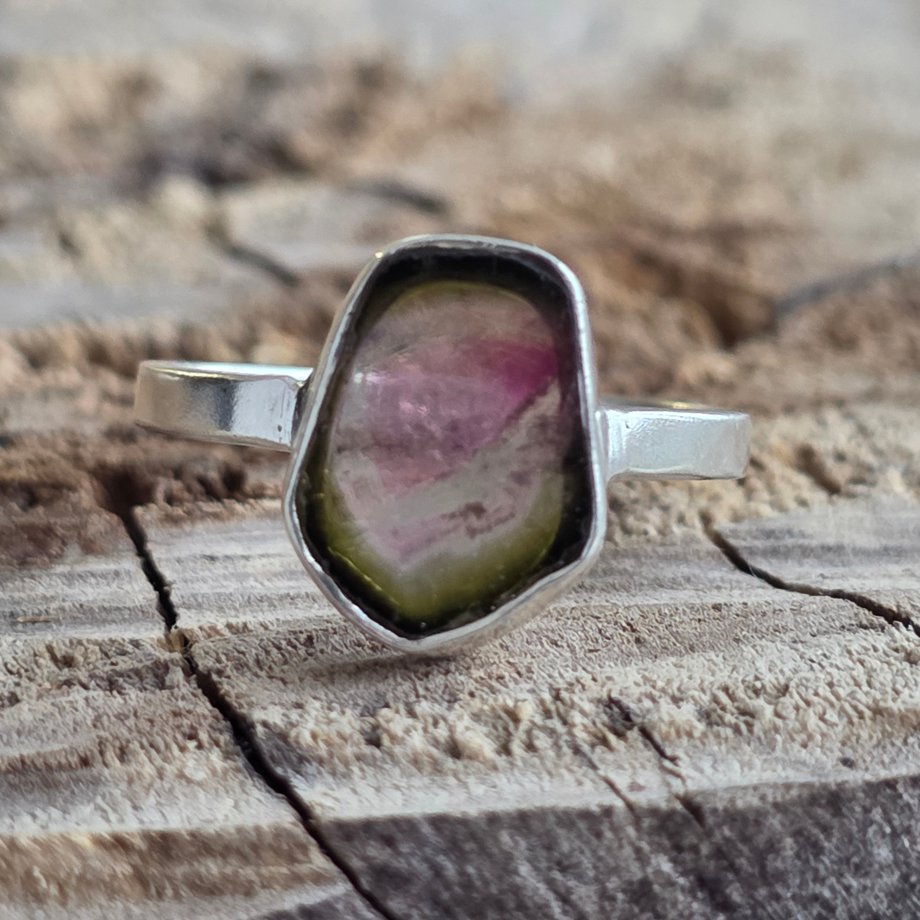 Anillo de plata con turmalina sandía | Modelo 1