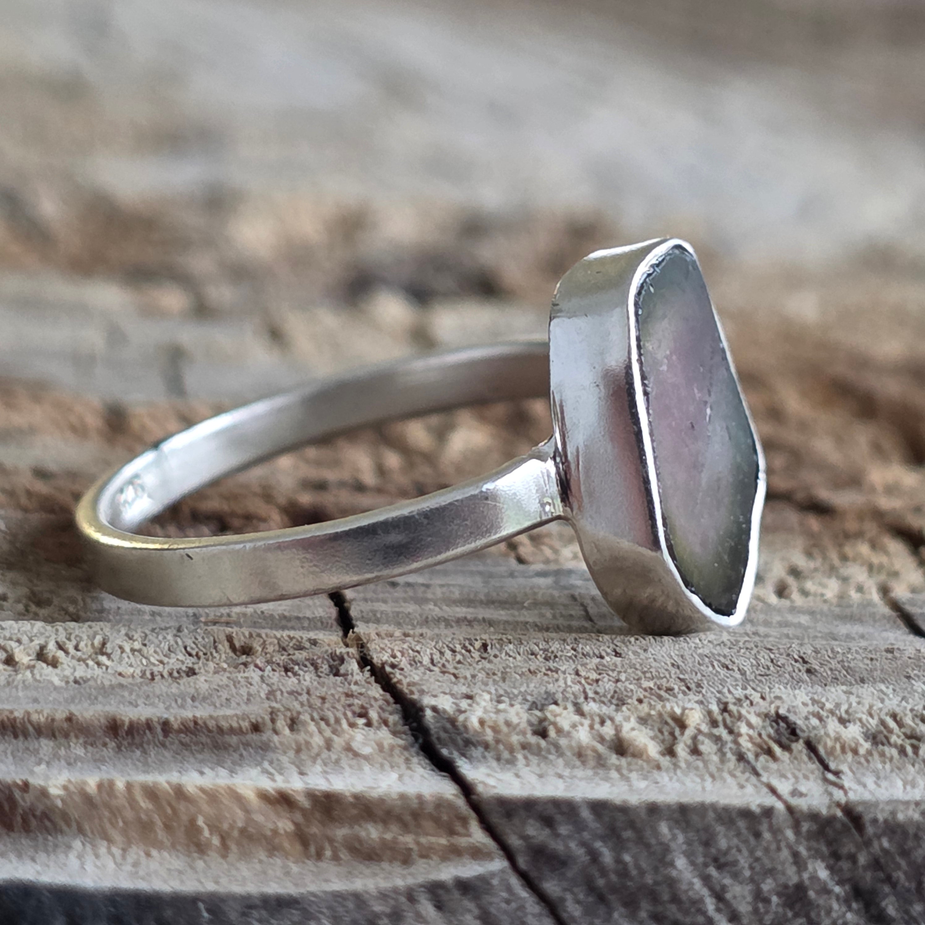 Este anillo de plata de primera ley con turmalina color sandía atrae inmediatamente por su combinación de colores naturales, donde los tonos de rosa y verde se mezclan armoniosamente en una sola piedra. Su aspecto orgánico la convierte en una pieza verdaderamente especial.