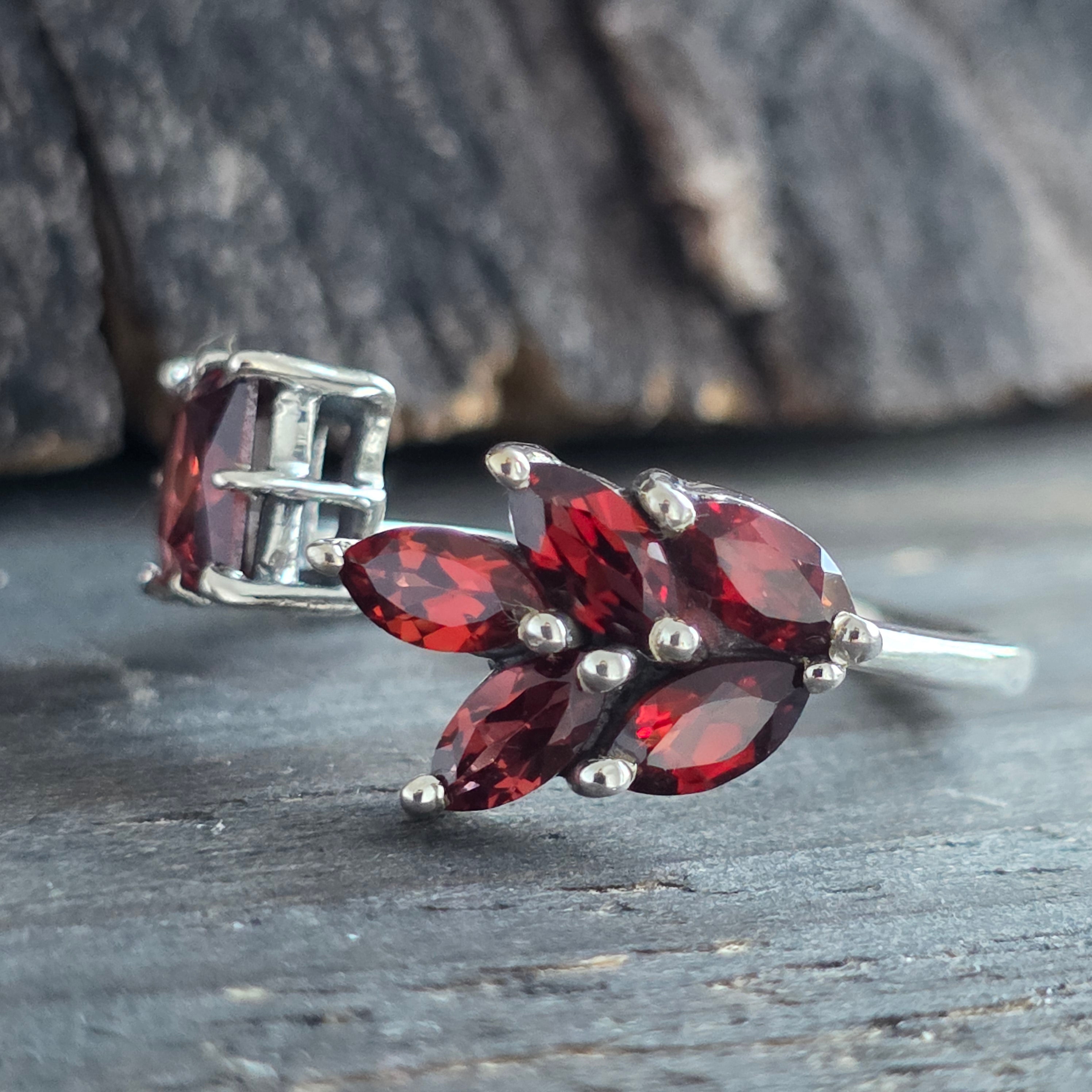 Anillo de plata granate | flores 2