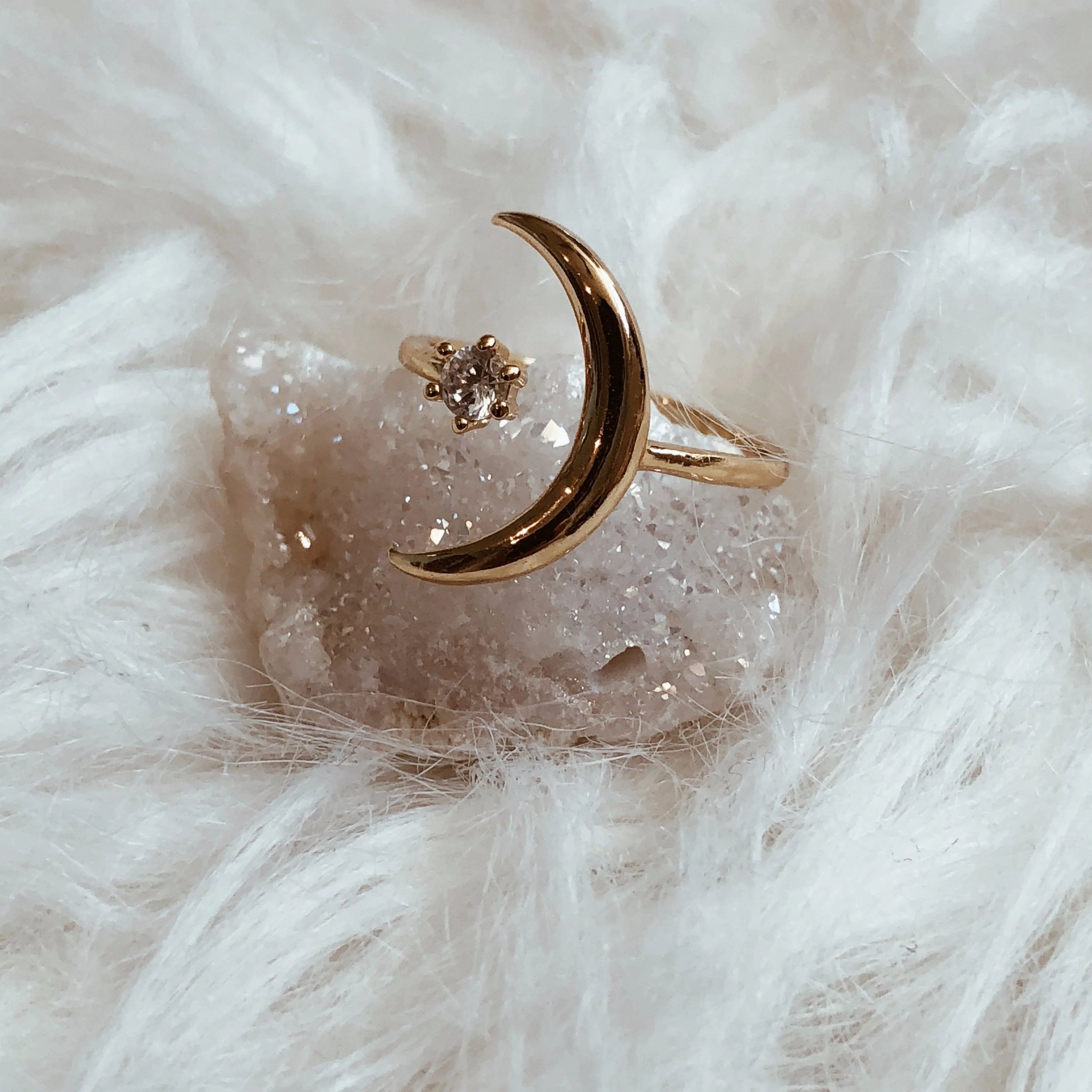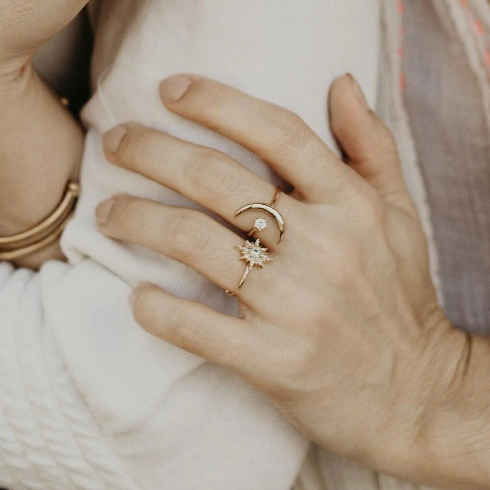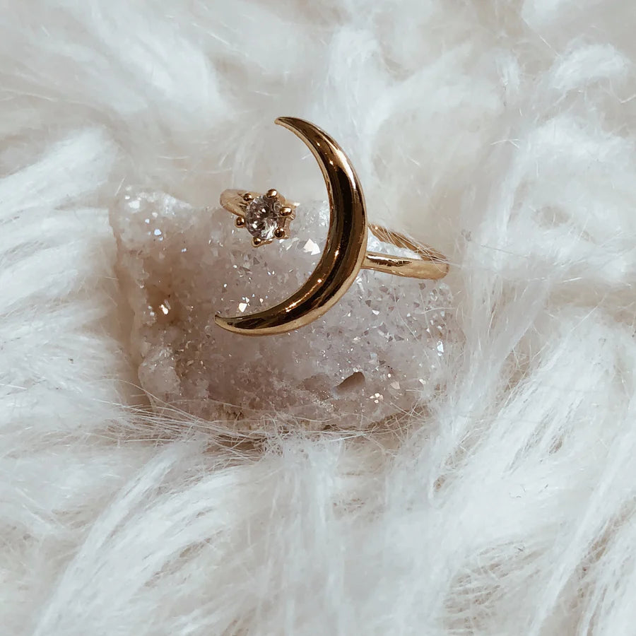 Anillo ajustable bañado en oro de 14 quilates Talking to the Moon, colección Bohindie