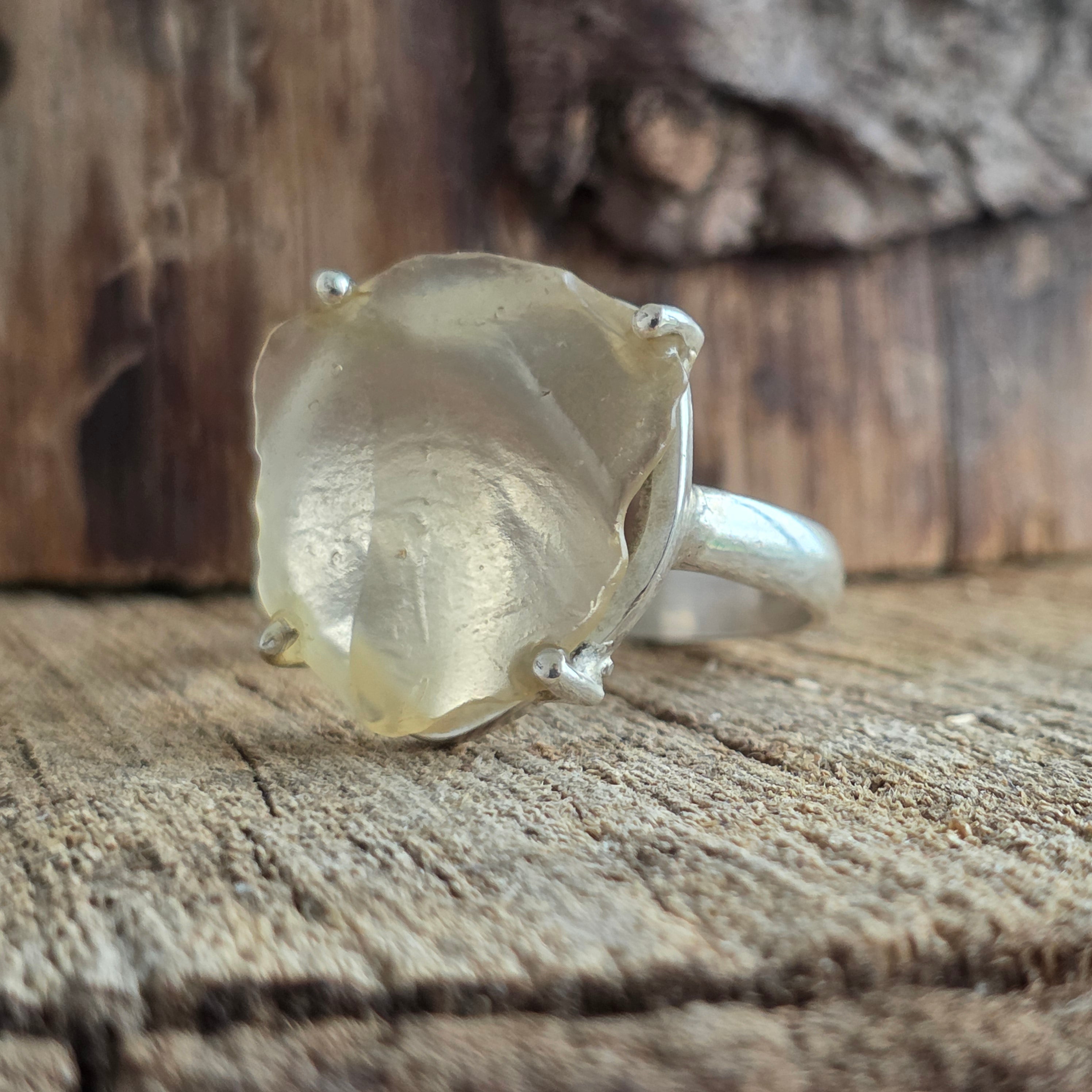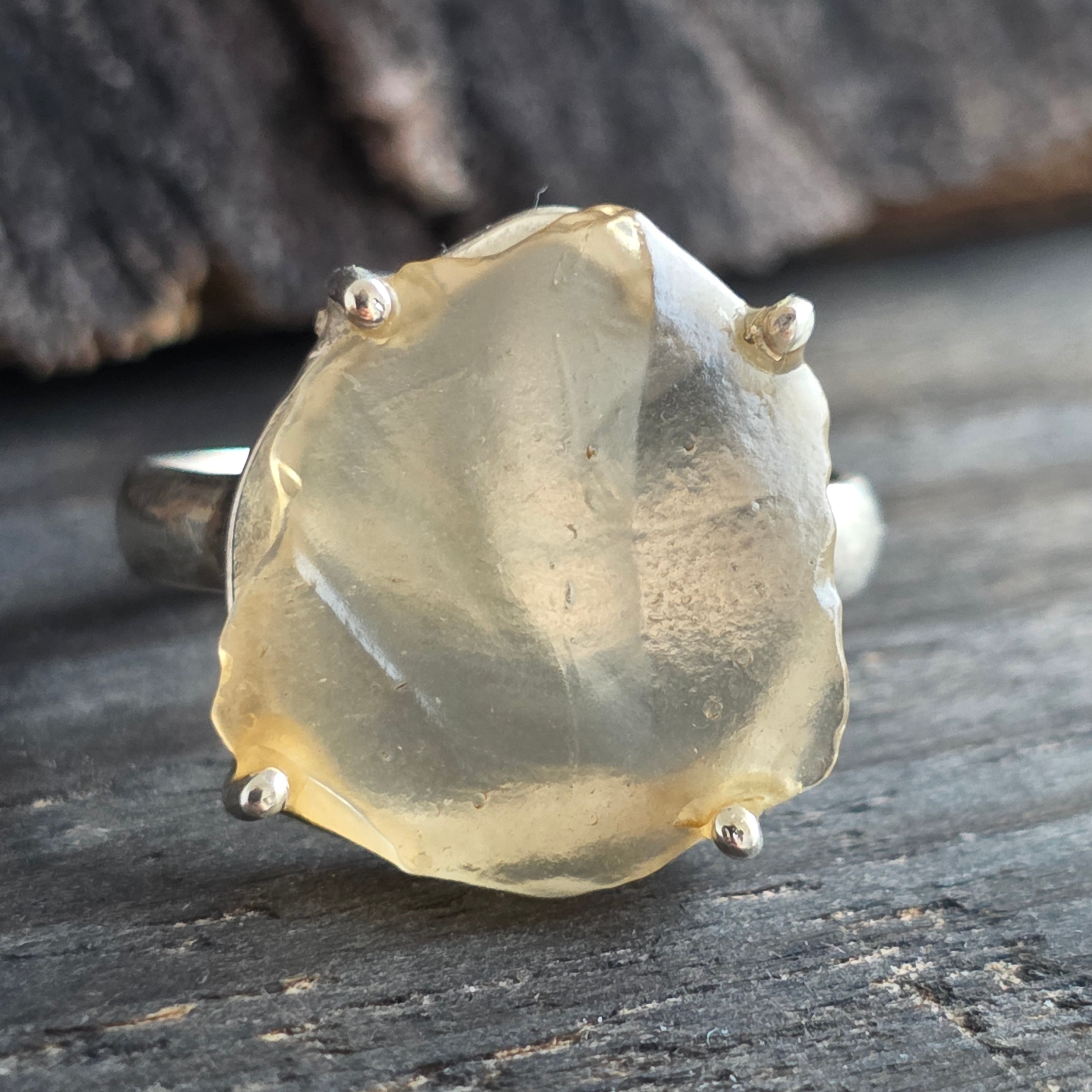 Descriere - Anillo tectita dorada, vidrio del desierto de Libia, meteorito | modelo 4