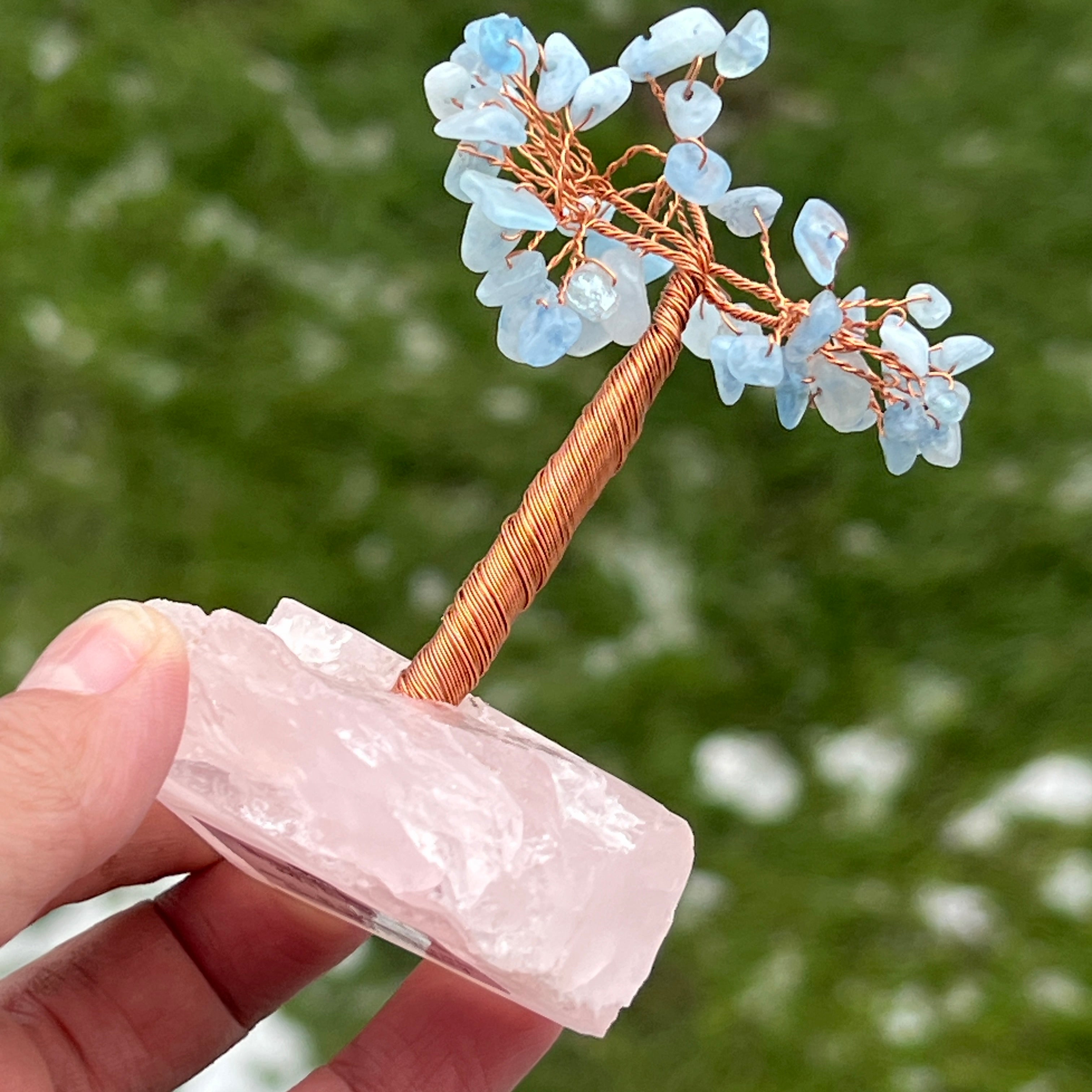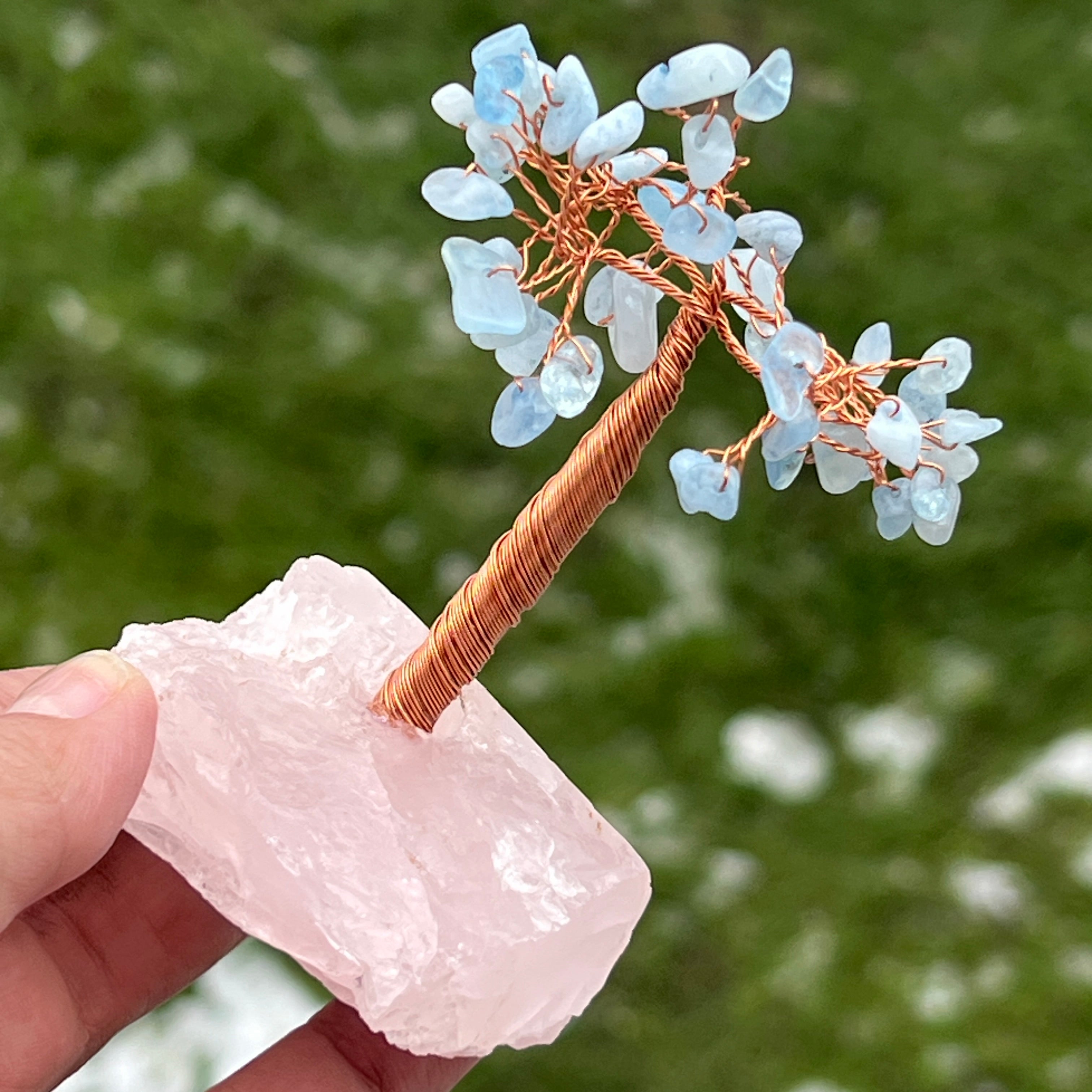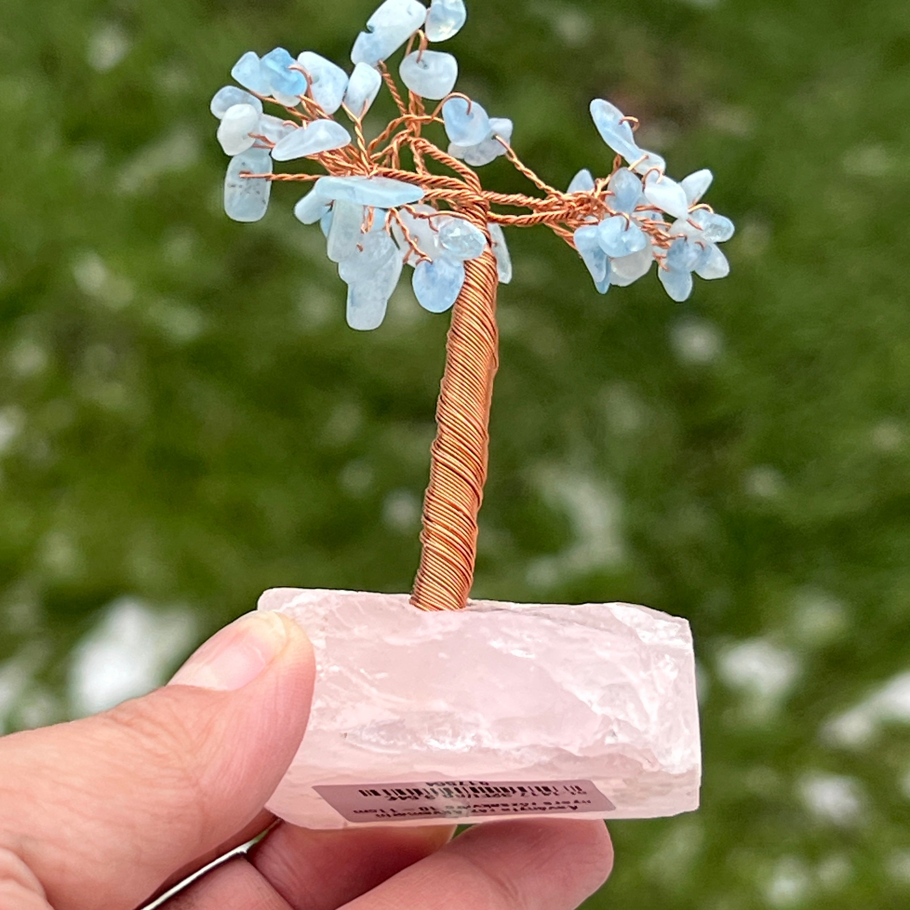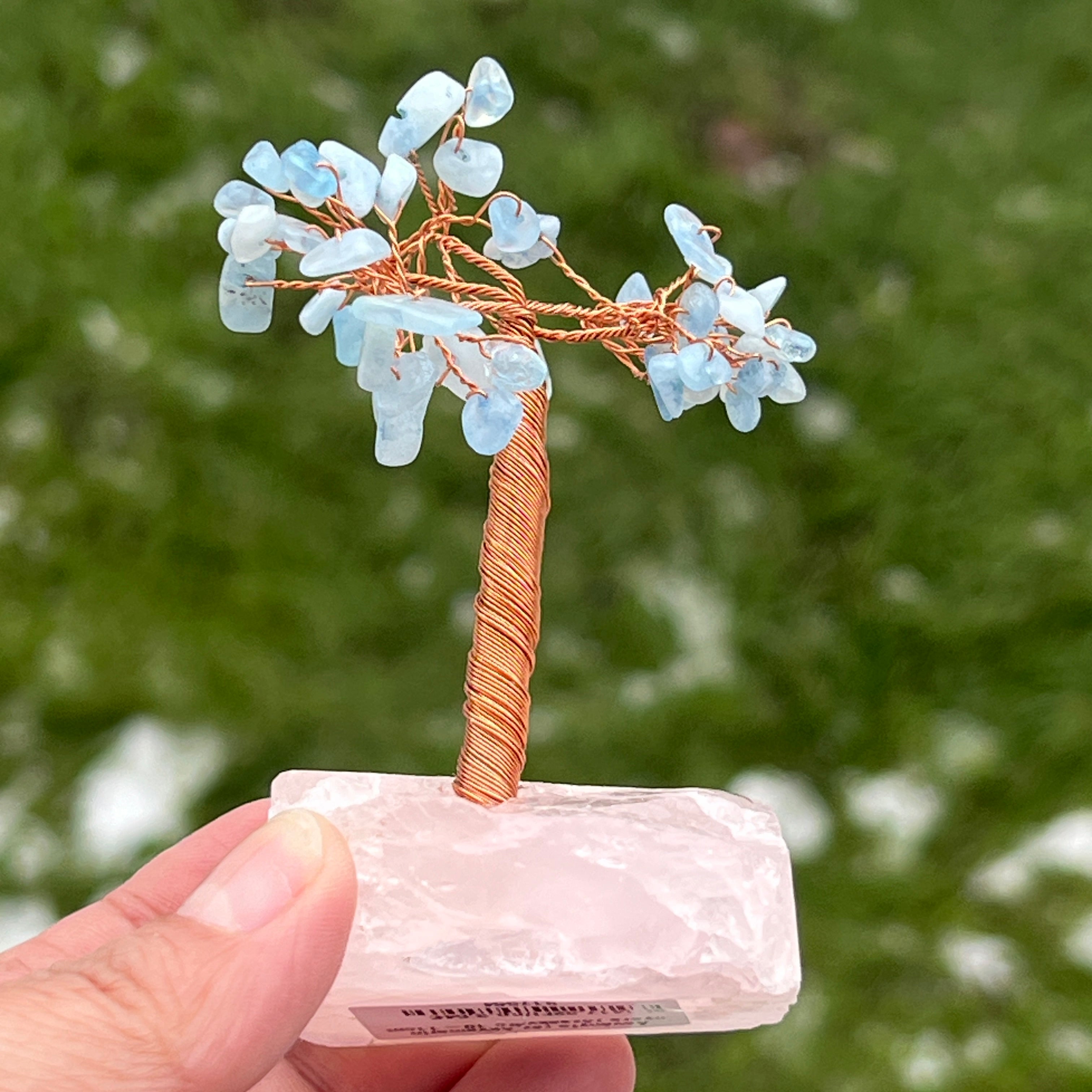 Árbol de feng shui aguamarina a base de cuarzo rosa - talla S