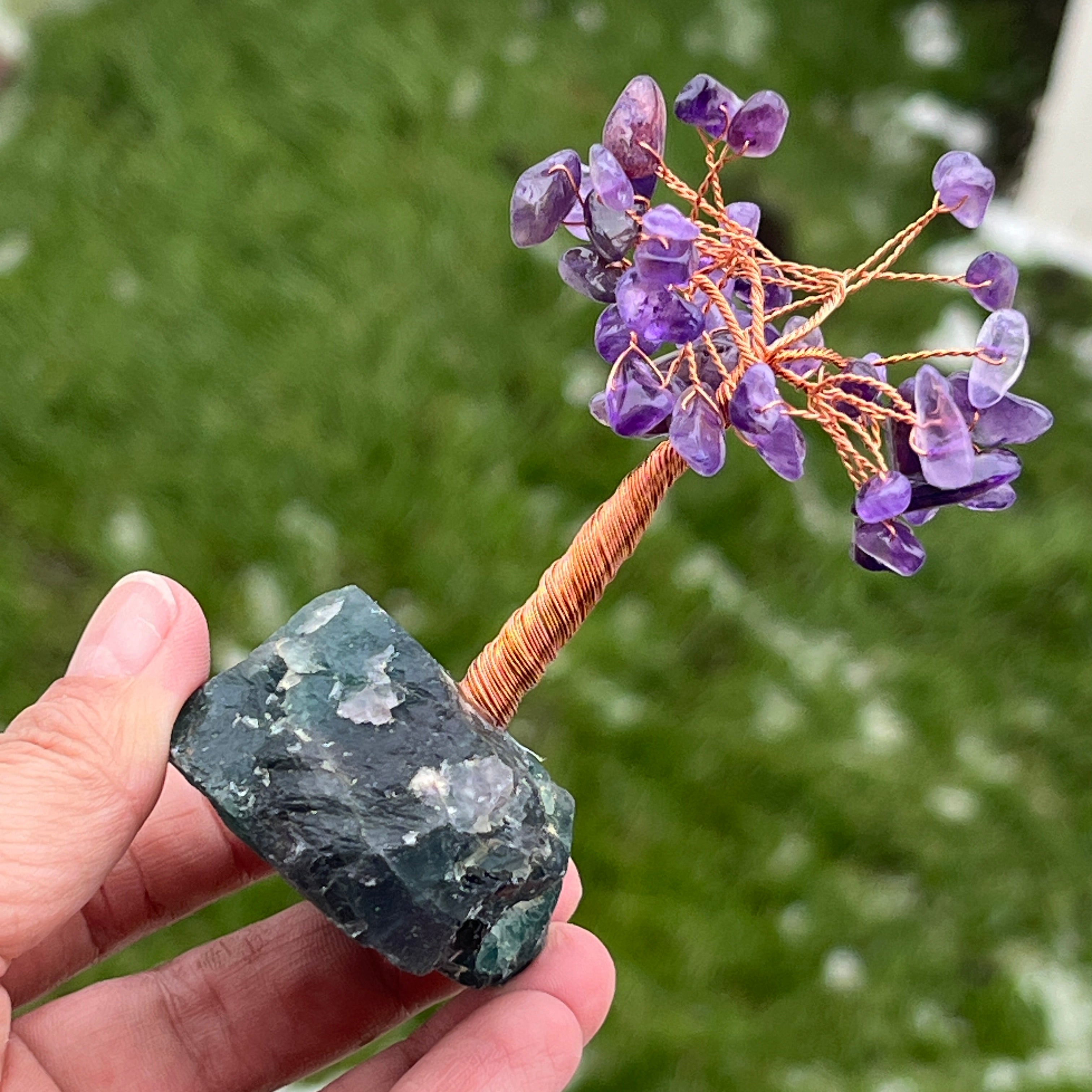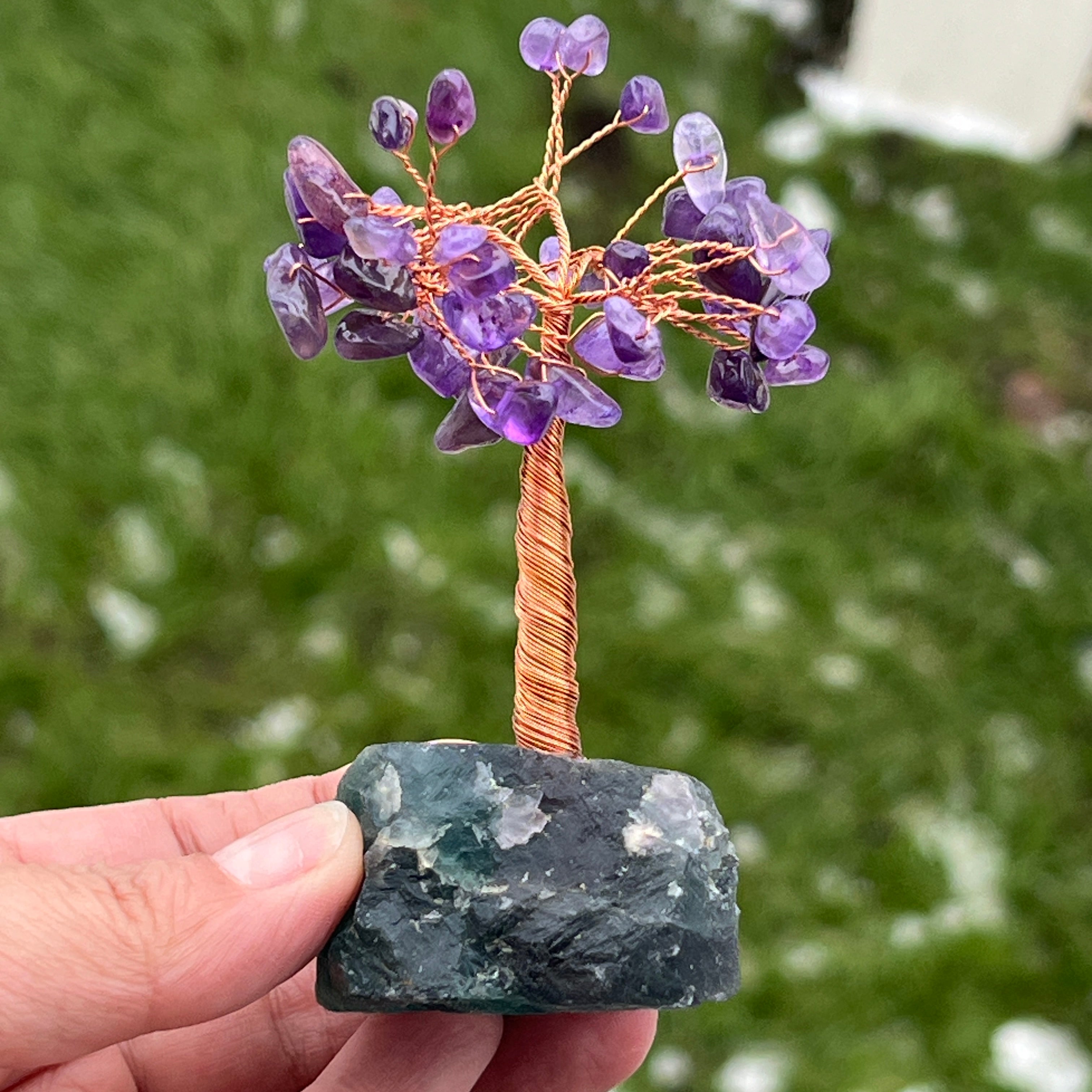Árbol feng shui con amatista sobre base de fluorita – tamaño S