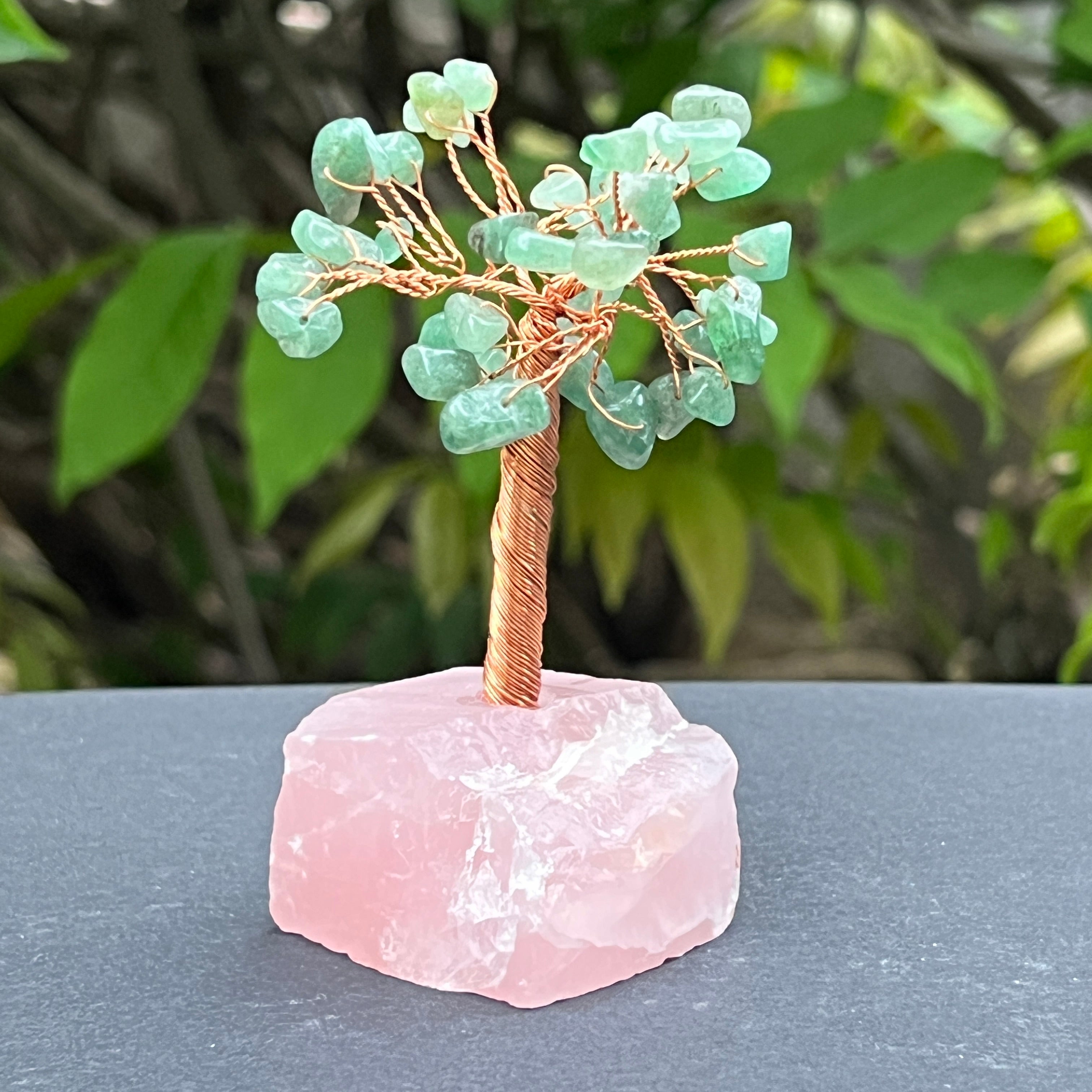 Árbol feng shui con aventurina en base de cuarzo rosa – tamaño S