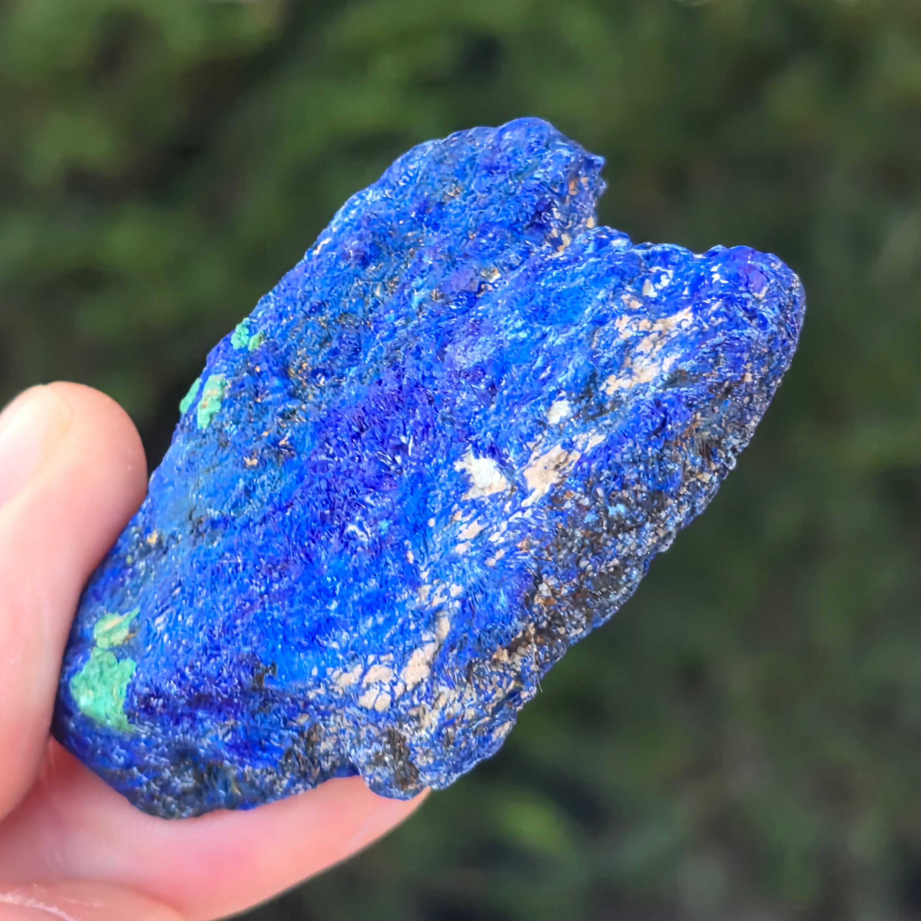 La azurita se forma principalmente en las zonas de oxidación de los depósitos de cobre. El proceso de formación implica la interacción del agua subterránea rica en carbonato con los minerales de cobre, resultando en la cristalización de la azurita en las fracturas y cavidades de las rocas. A menudo, la azurita se asocia con la malaquita, otro mineral de cobre, que tiene un color verde intenso. Ambos minerales se forman en condiciones similares y, a veces, se encuentran juntos en forma de piedras de azurita-malaquita.
