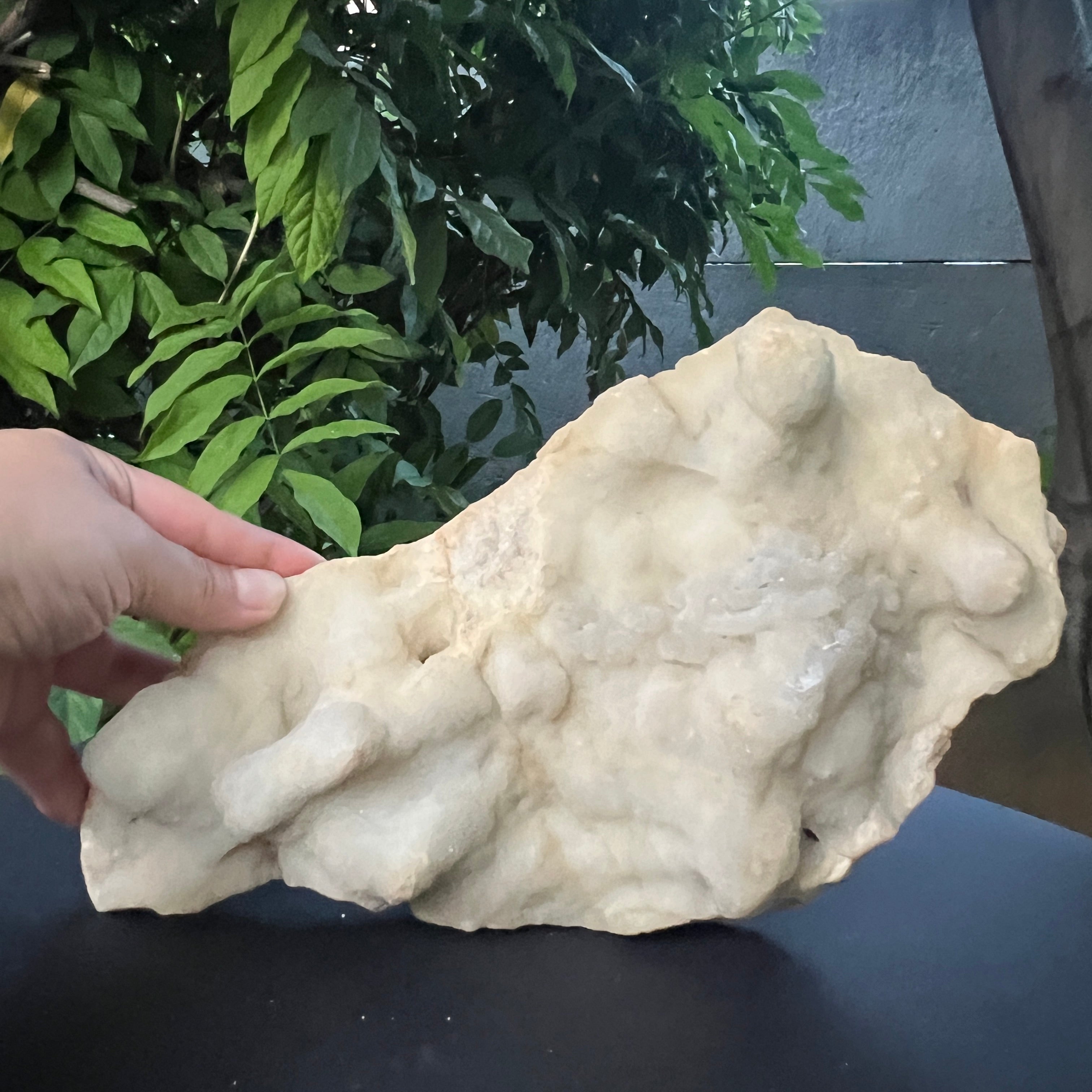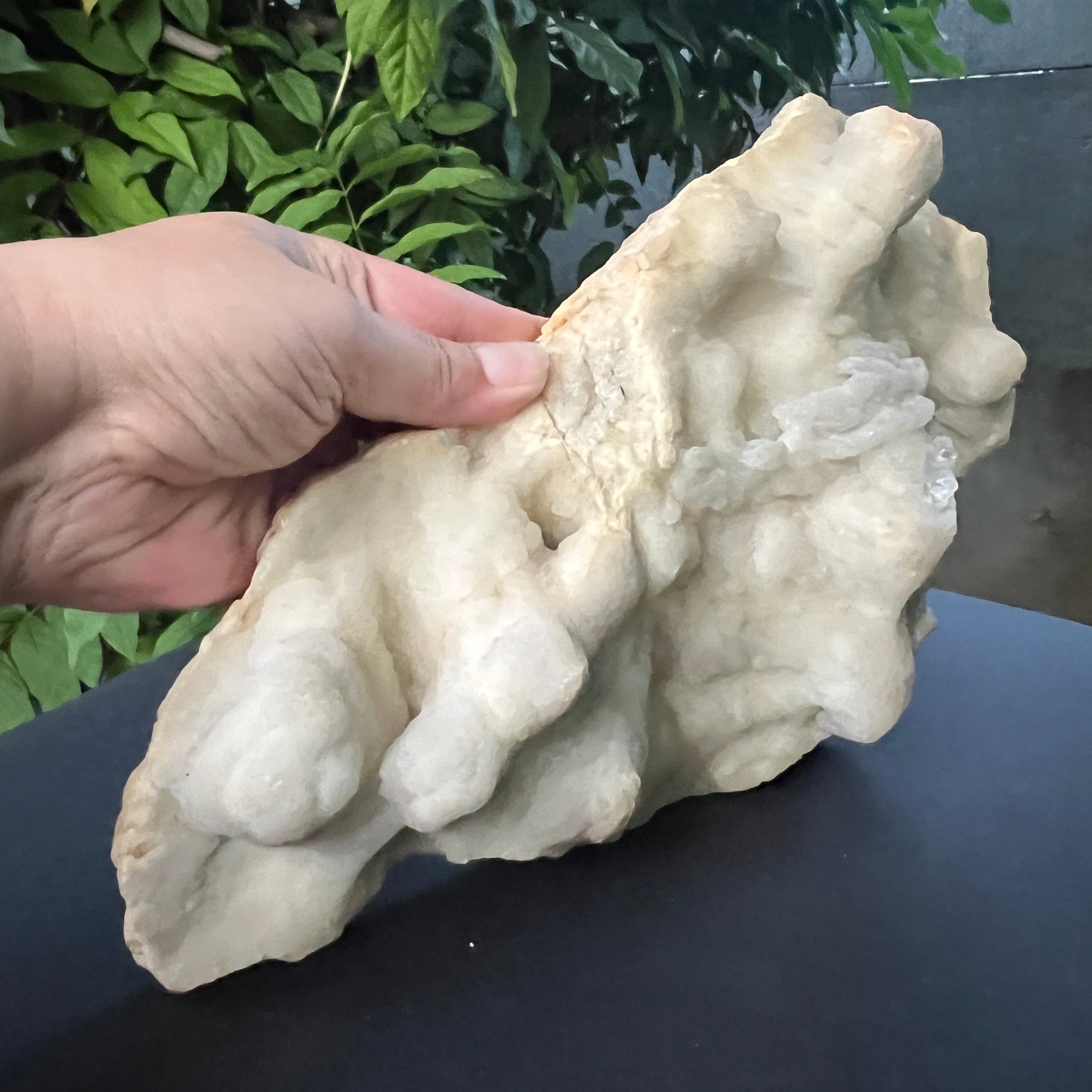 Este ejemplar de calcita de cueva impresiona por su forma botroidal natural, modelada por el tiempo y el ritmo lento de las deposiciones minerales. La textura orgánica, con superficies redondeadas, evoca formaciones estalactíticas de grutas silenciosas, donde cada capa se deposita con paciencia geológica.