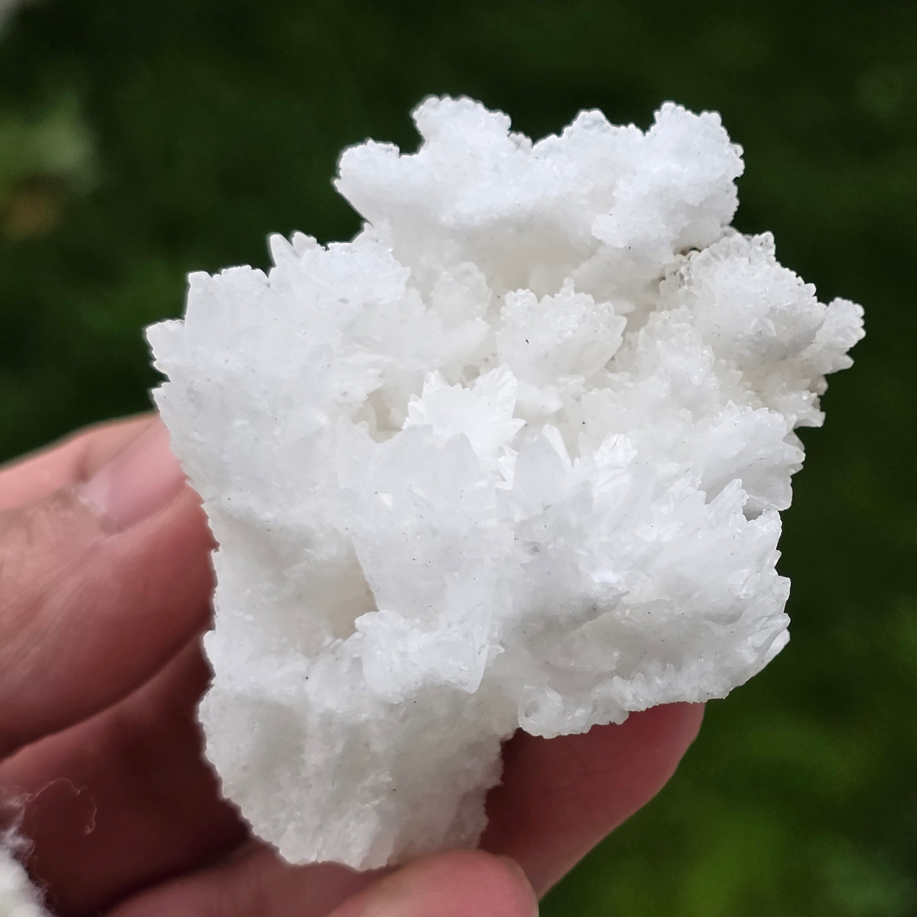 Los cristales están dispuestos en estructuras irregulares, redondeadas, con superficies ligeramente brillantes, recordando las formaciones que se encuentran en el interior de las cuevas. La textura rica y el volumen bien definido confieren a cada ejemplar un carácter auténtico y expresivo, muy valorado en colecciones de minerales y como pieza decorativa natural.