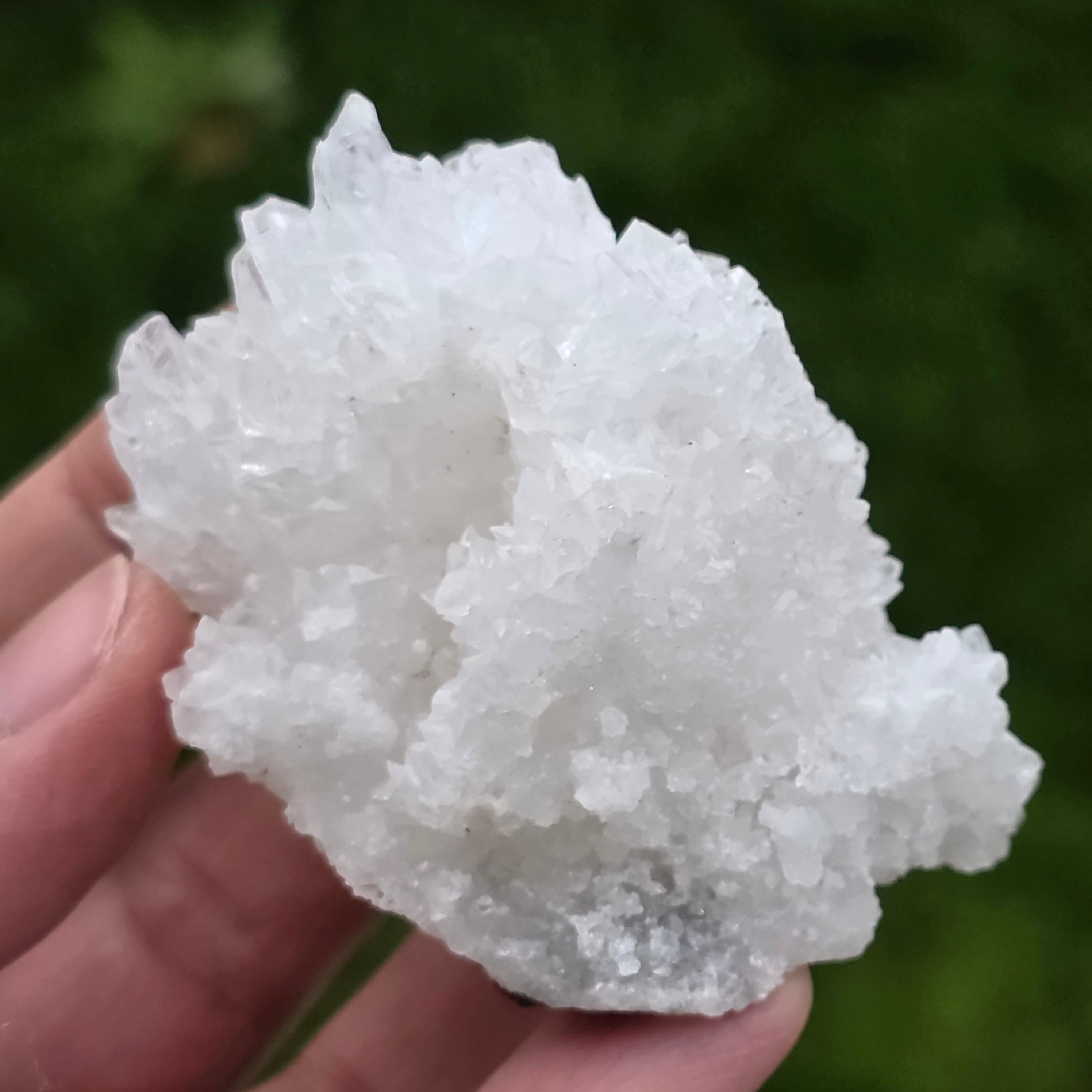 Los cristales están dispuestos en estructuras irregulares, redondeadas, con superficies ligeramente brillantes, recordando las formaciones que se encuentran en el interior de las cuevas. La textura rica y el volumen bien definido confieren a cada ejemplar un carácter auténtico y expresivo, muy valorado en colecciones de minerales y como pieza decorativa natural.