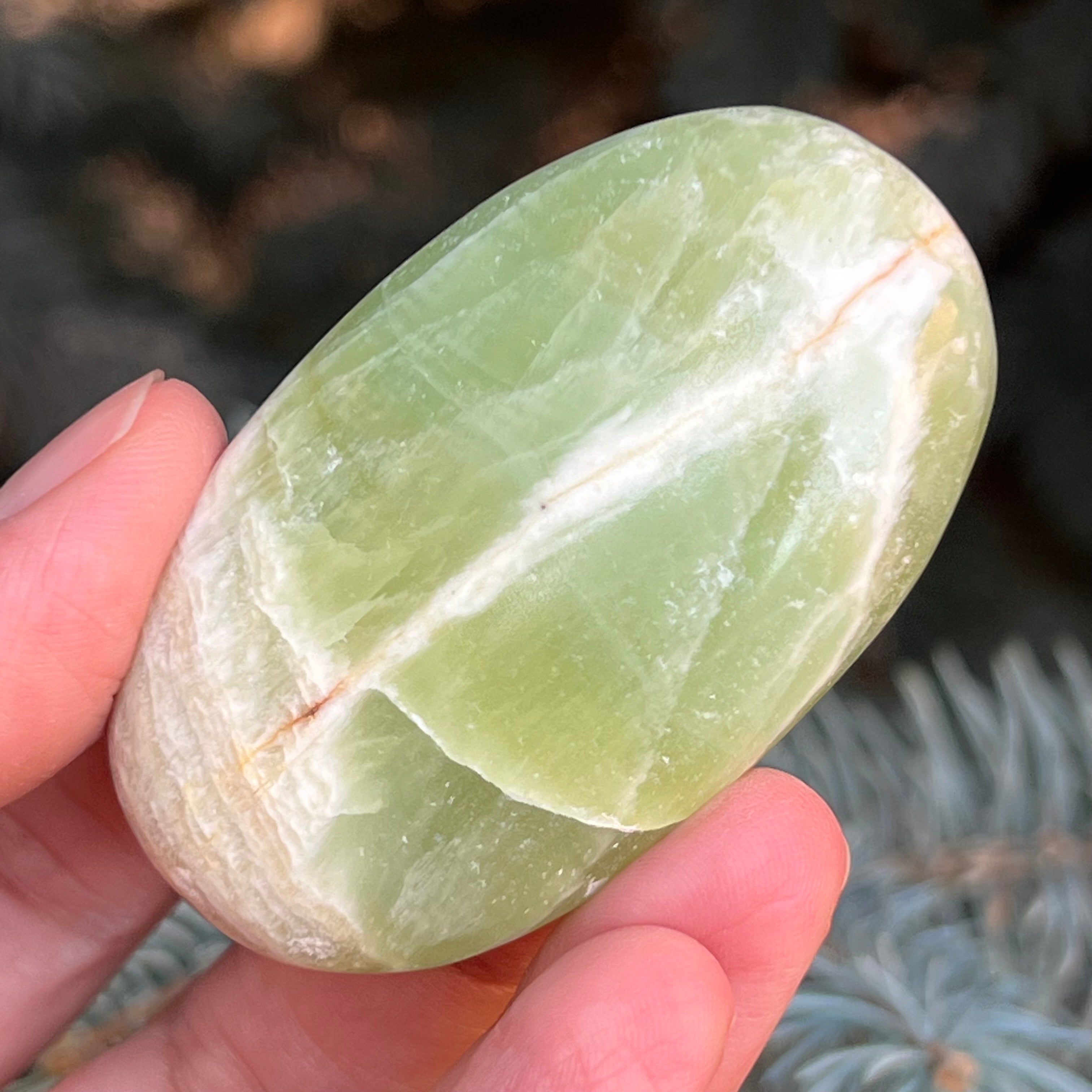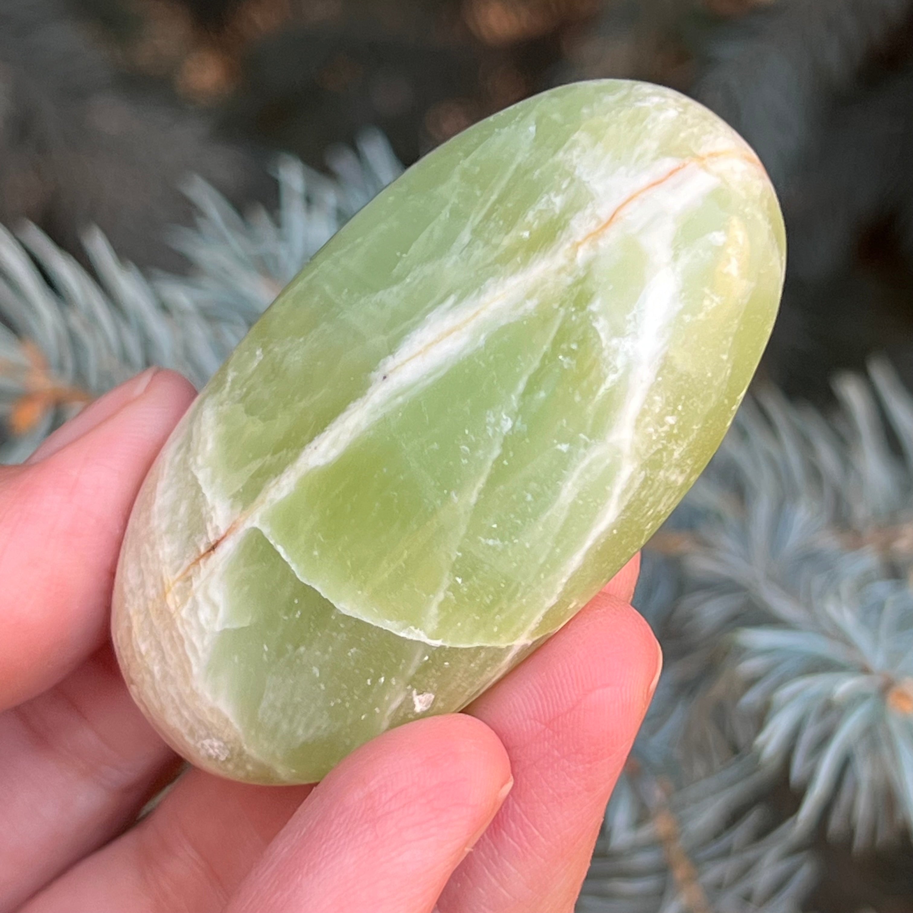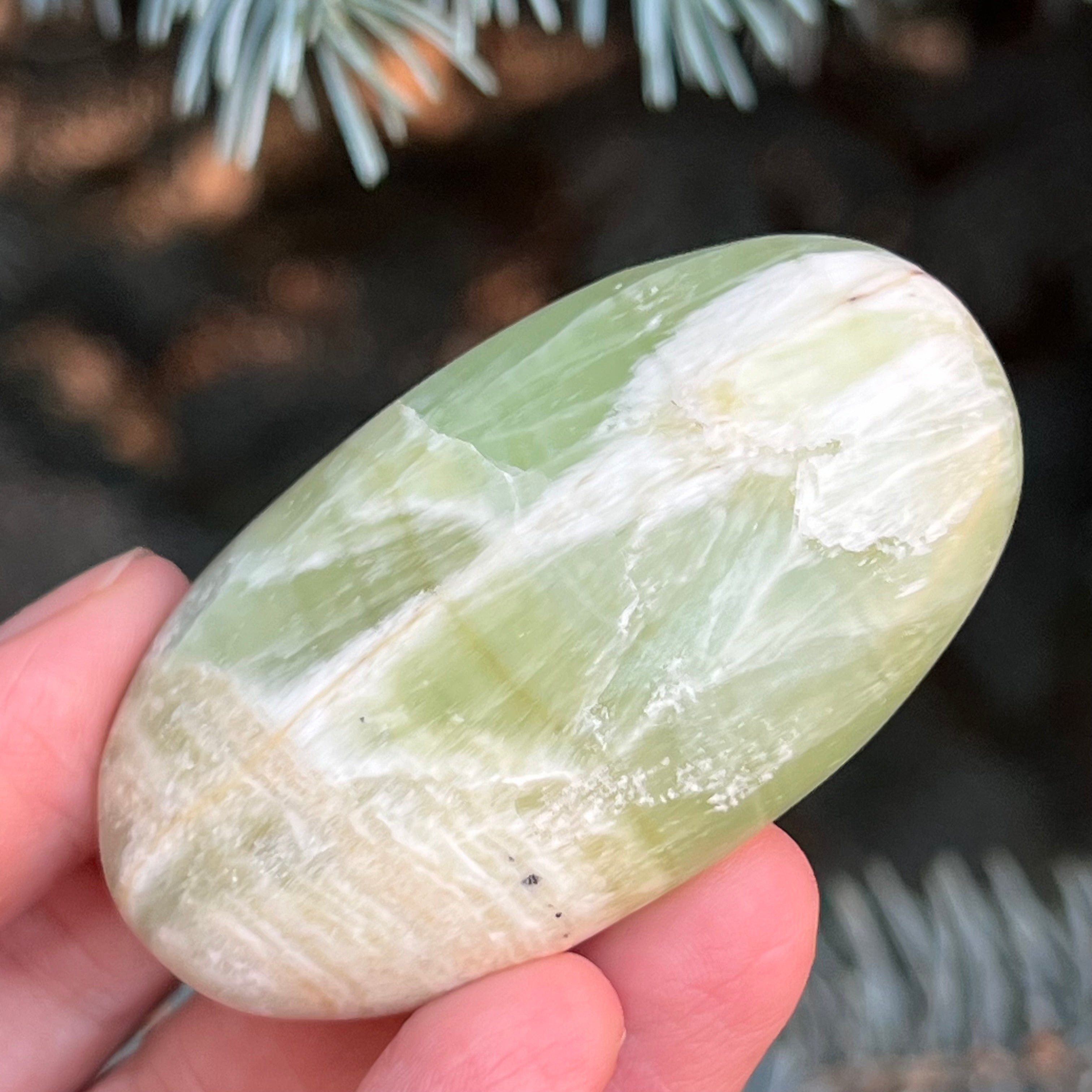 Piedra de palma pistacho calcita m5, tamaño 6,1 * 3,5 * 1,3 cm