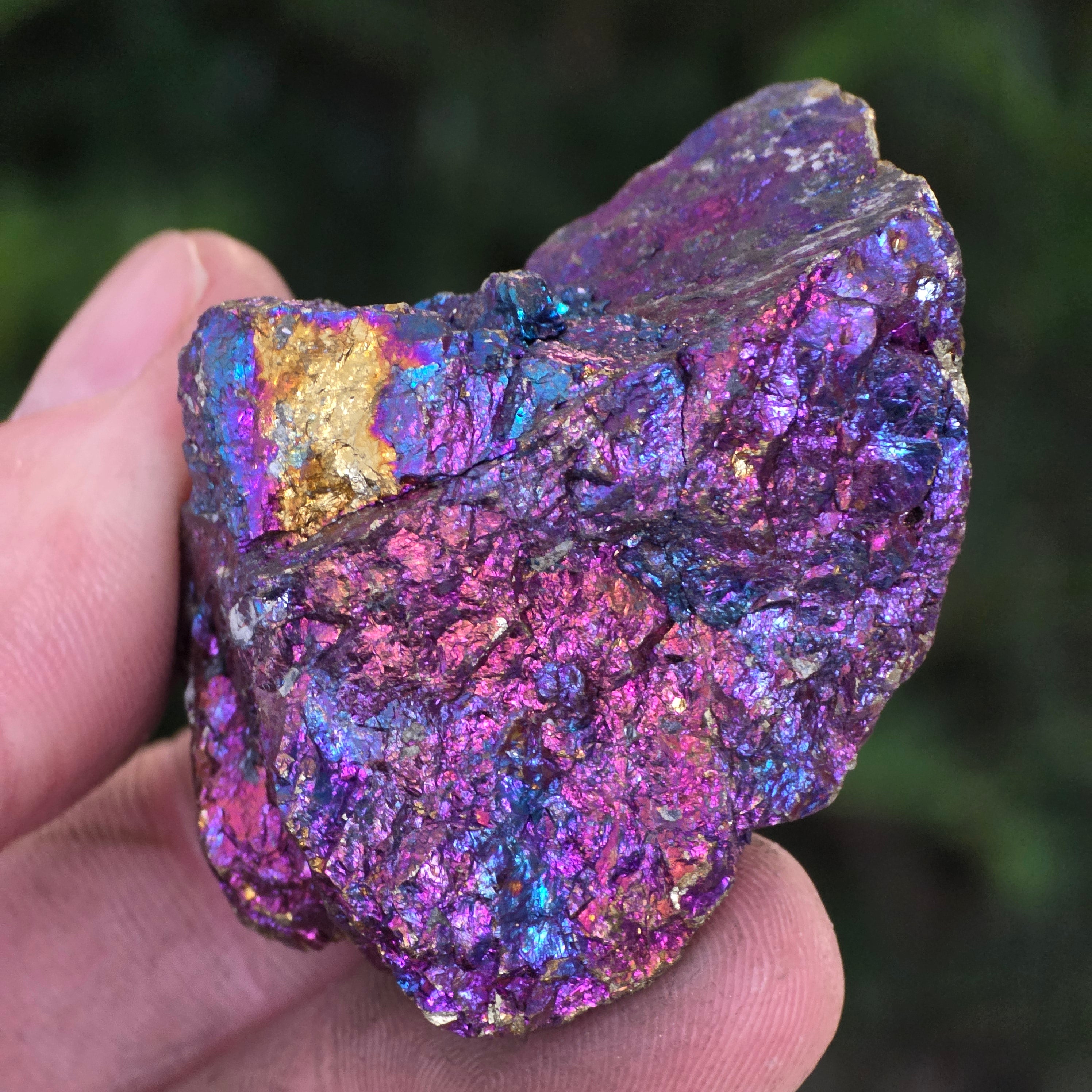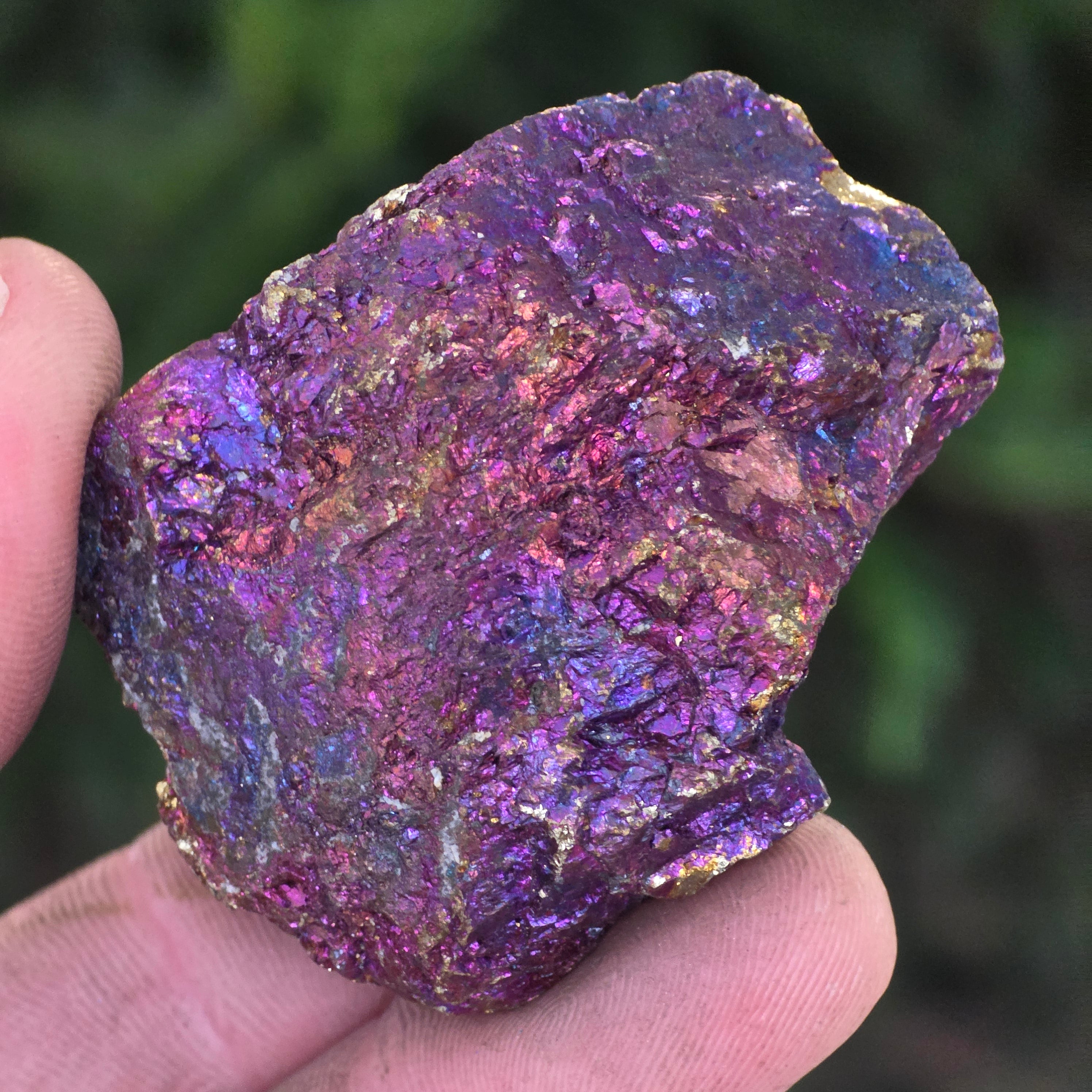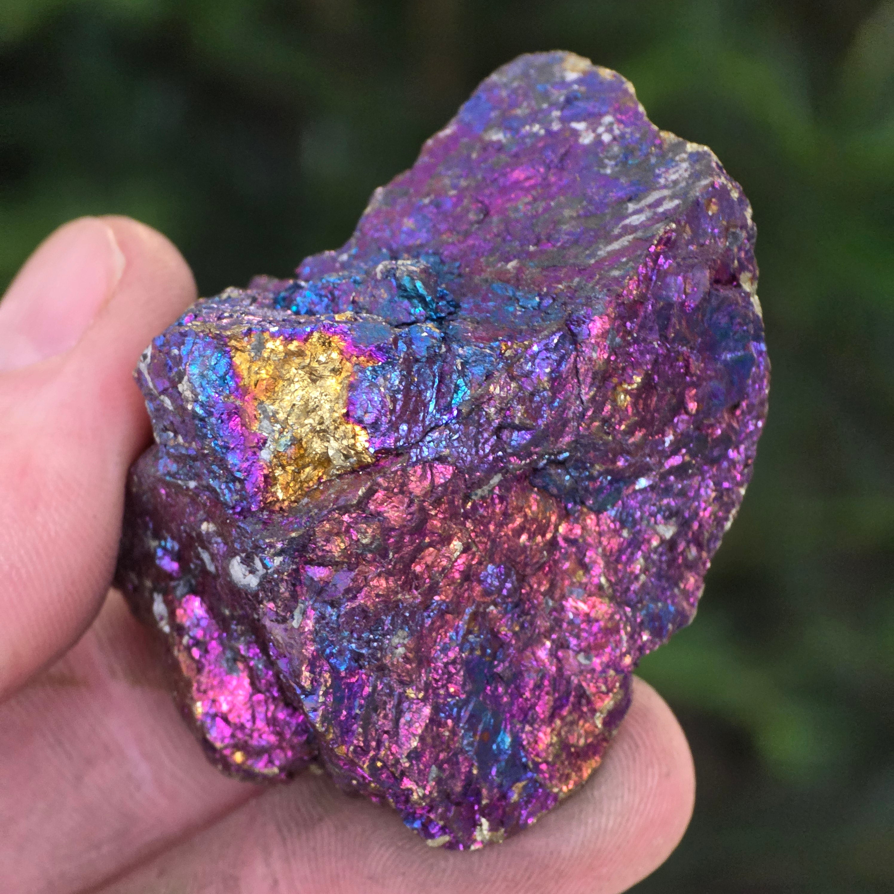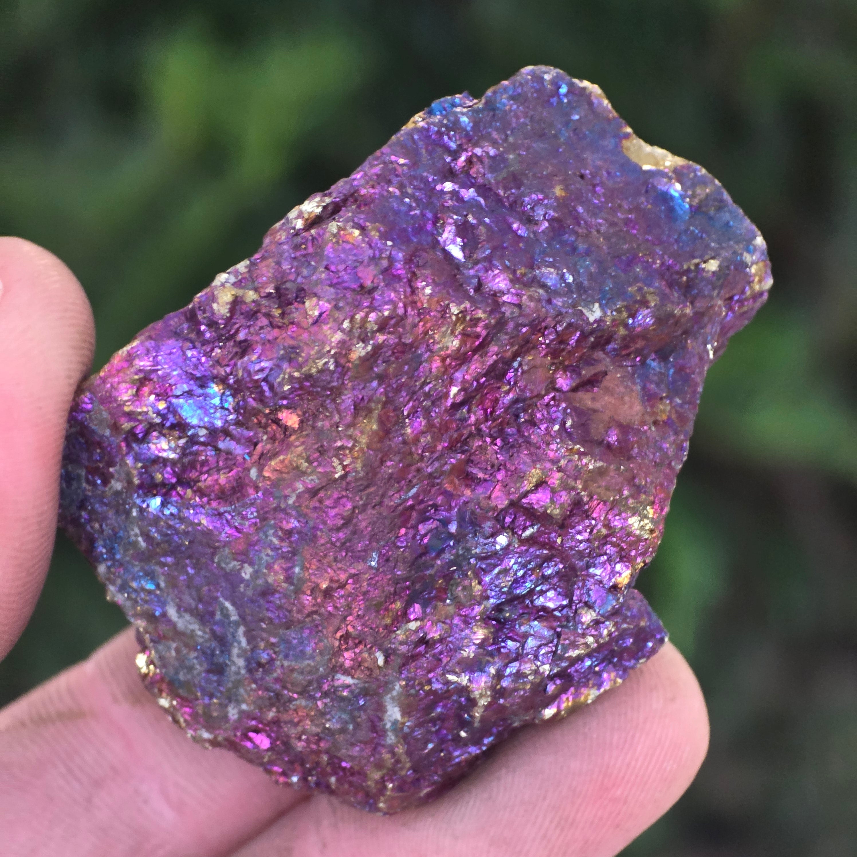 La calcopirita azul y morada están asociadas con el crecimiento espiritual, la intuición y la conexión con energías superiores. Se cree que ayudan a calmar la mente y a estimular la creatividad. Sus tonos iridiscentes se relacionan simbólicamente con el equilibrio y la armonía.