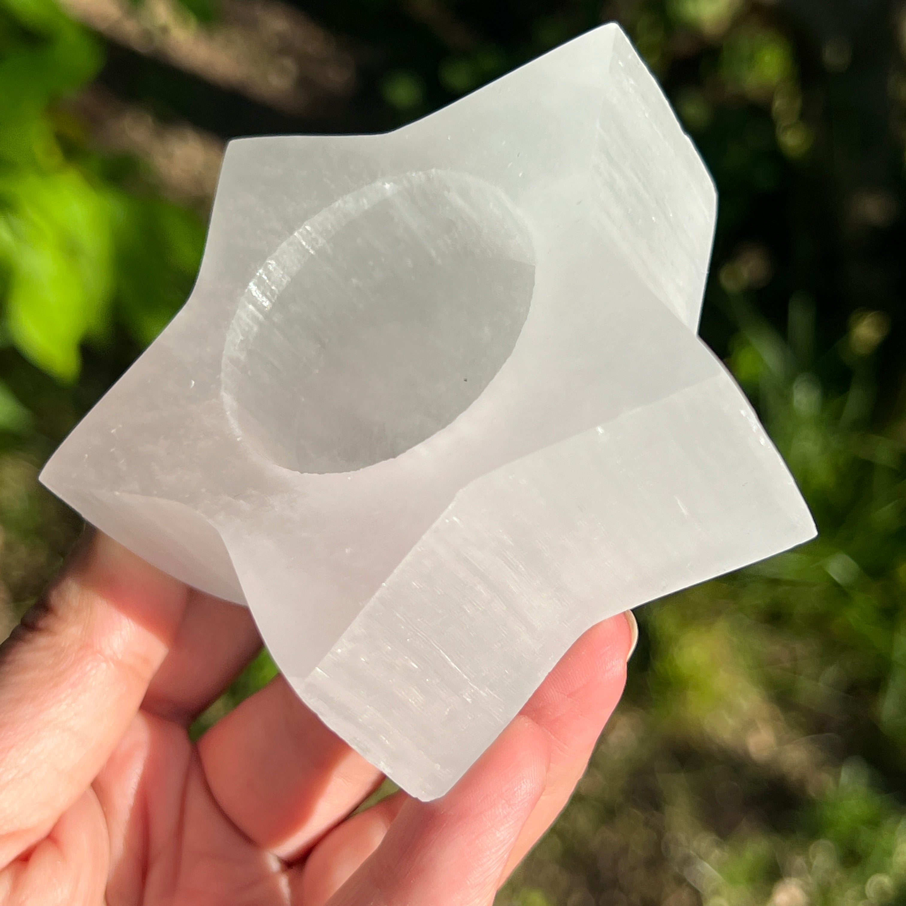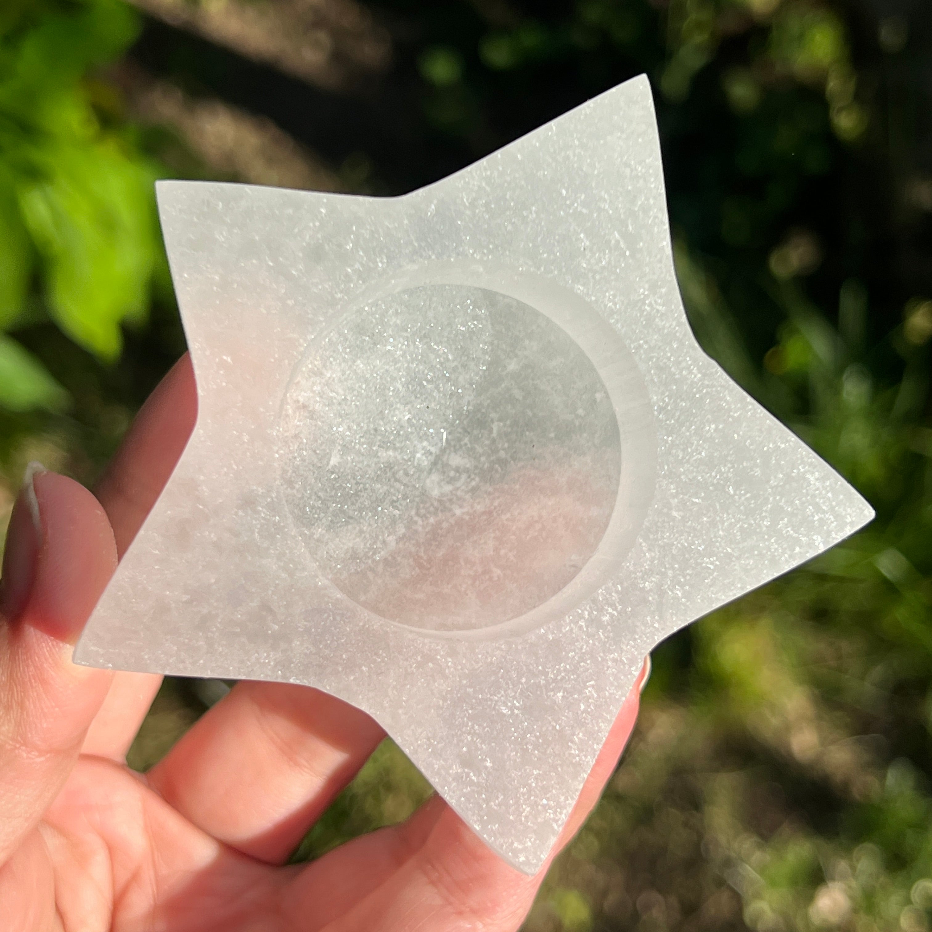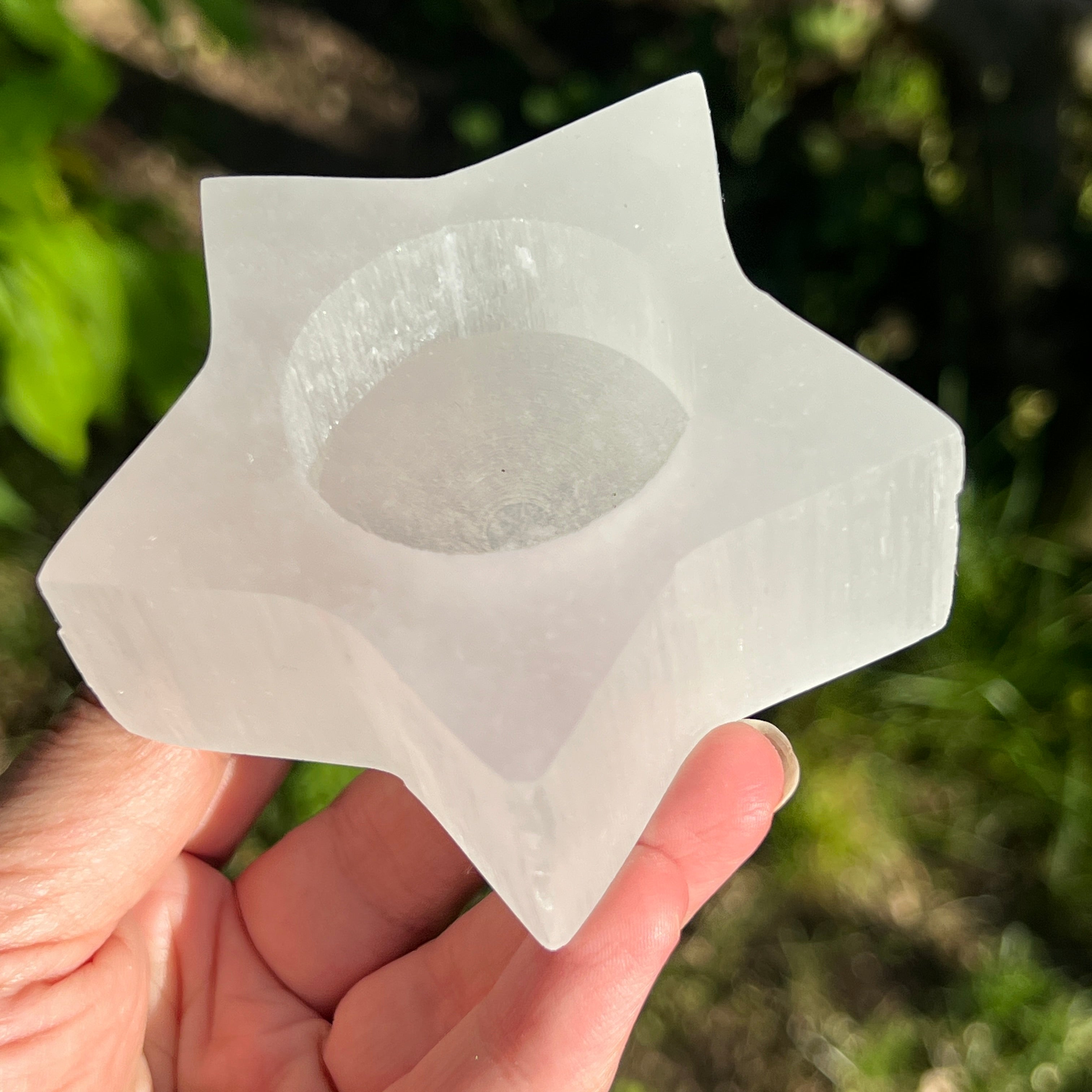 Portavelas de selenita estrella, tamaño: 8,4*7,1*3,3 cm.