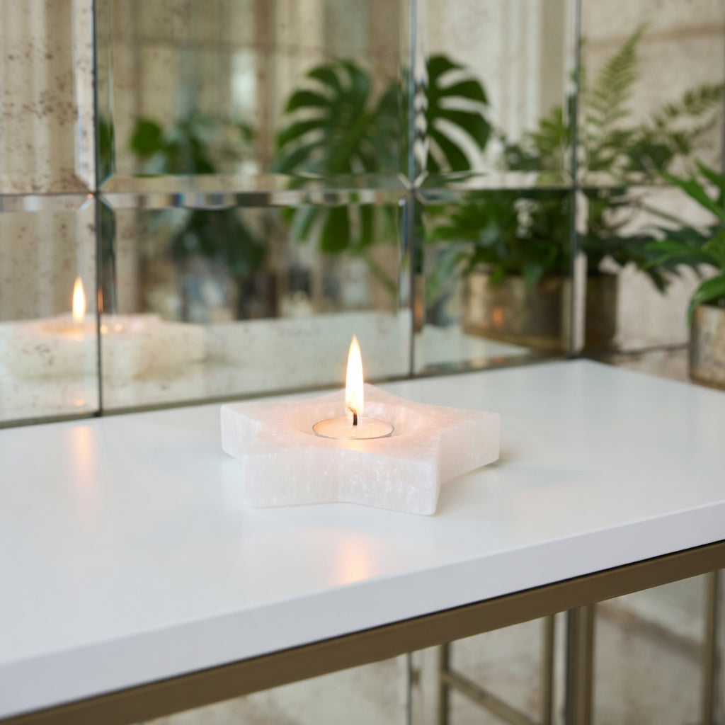 Portavelas estrella de selenita