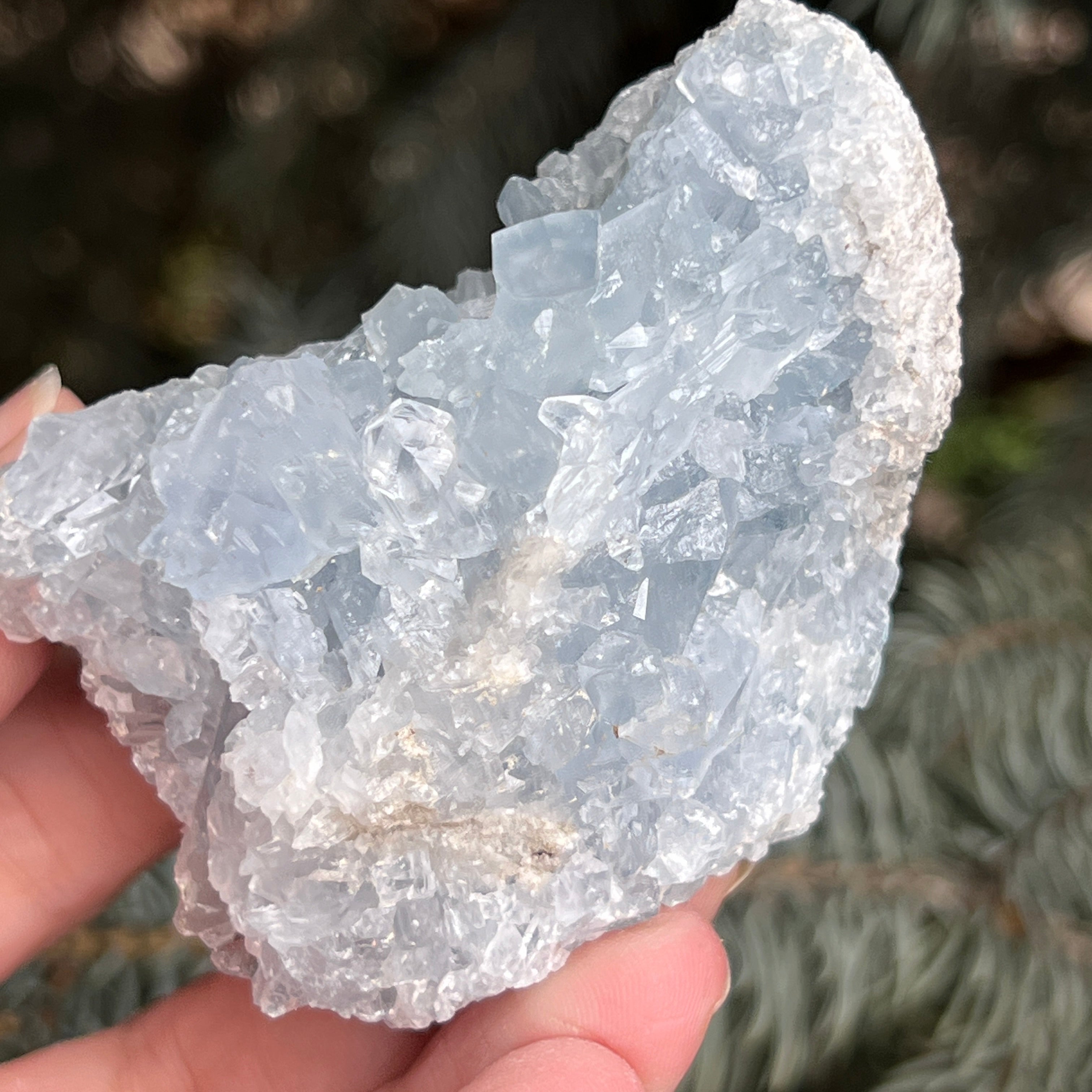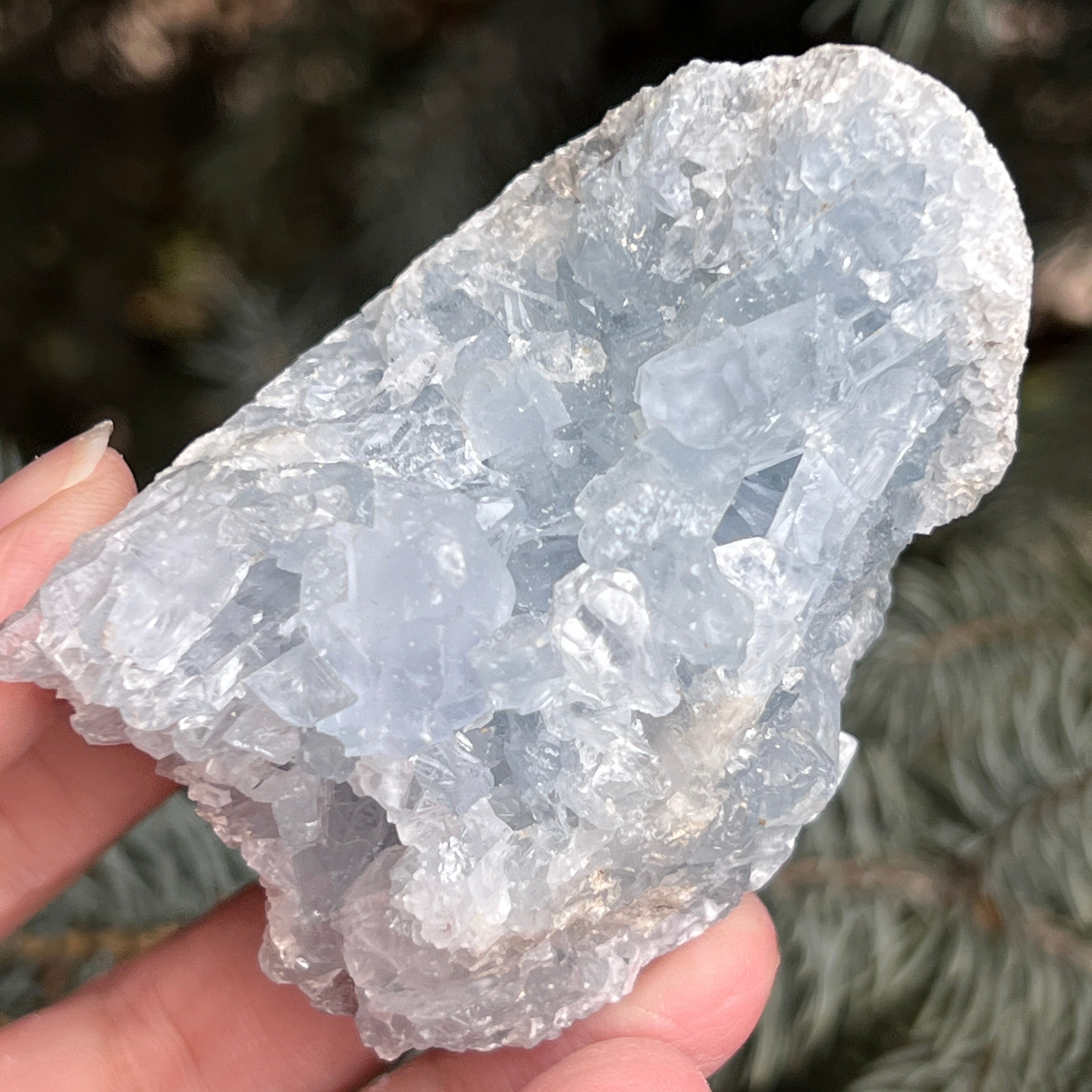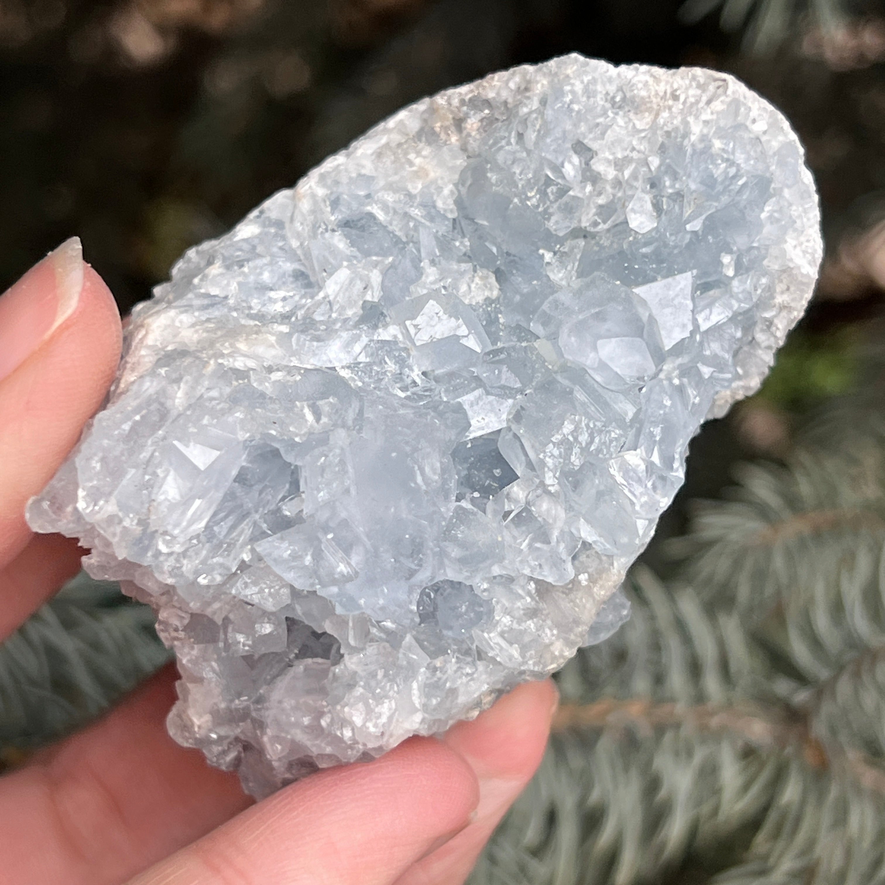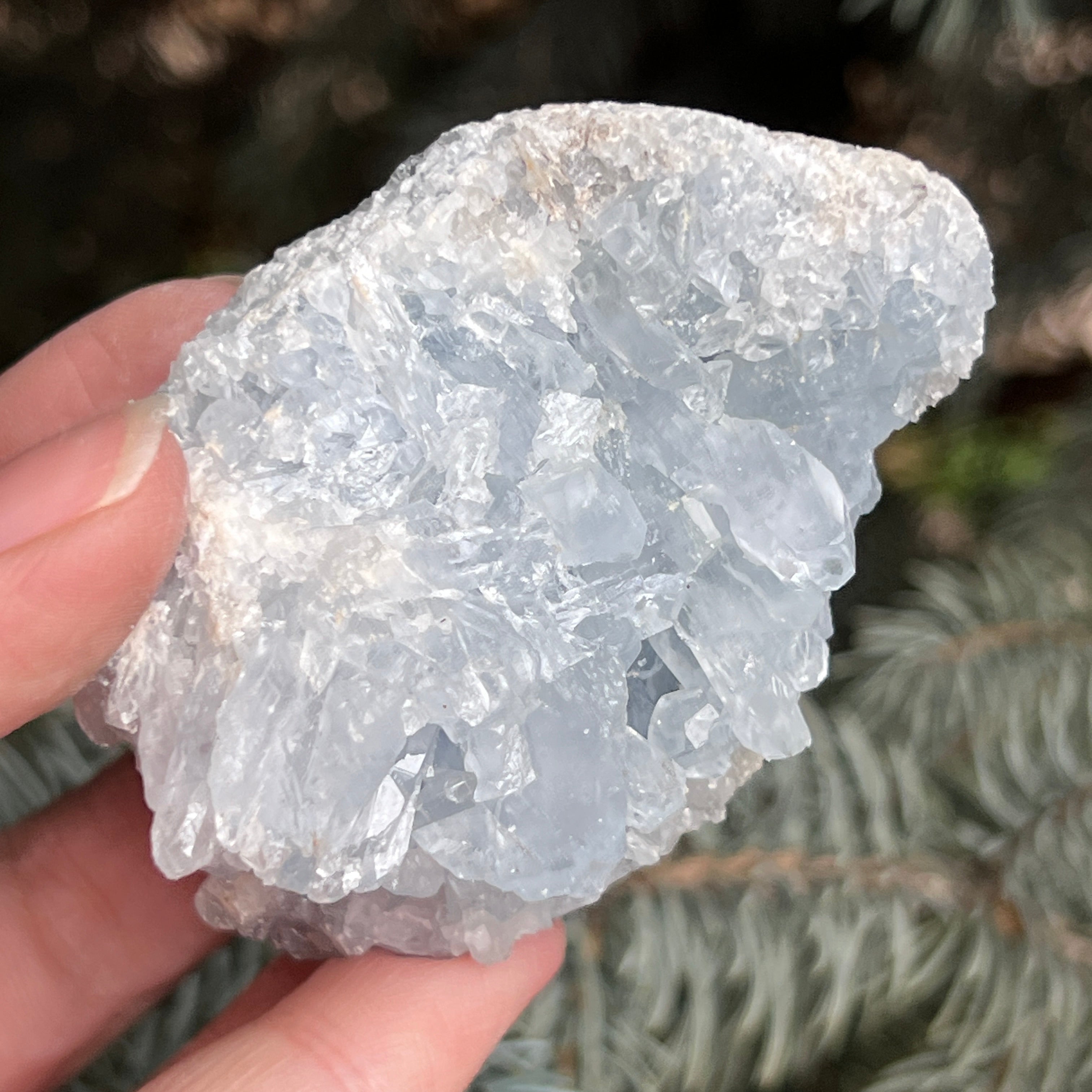 La celestita es una piedra semipreciosa de color azul o incoloro, formada por sulfato de estroncio. Tiene propiedades calmantes y relajantes, siendo a menudo utilizada en la meditación y en prácticas espirituales para promover la paz interior y la claridad mental. La celestita está asociada con el chakra de la garganta y puede ayudar en la comunicación clara y la expresión de emociones. Además, se cree que mejora la creatividad, la intuición y las habilidades psíquicas.