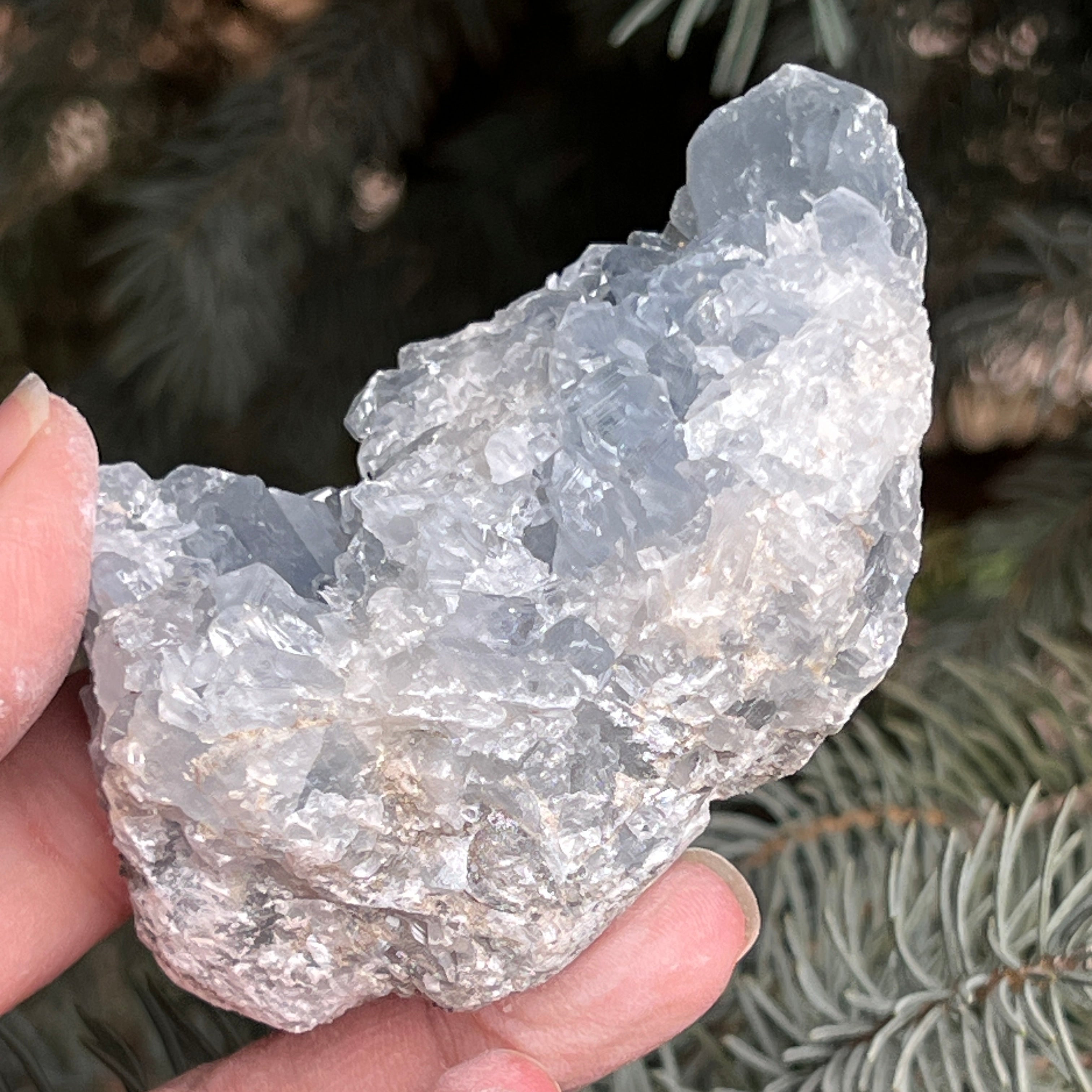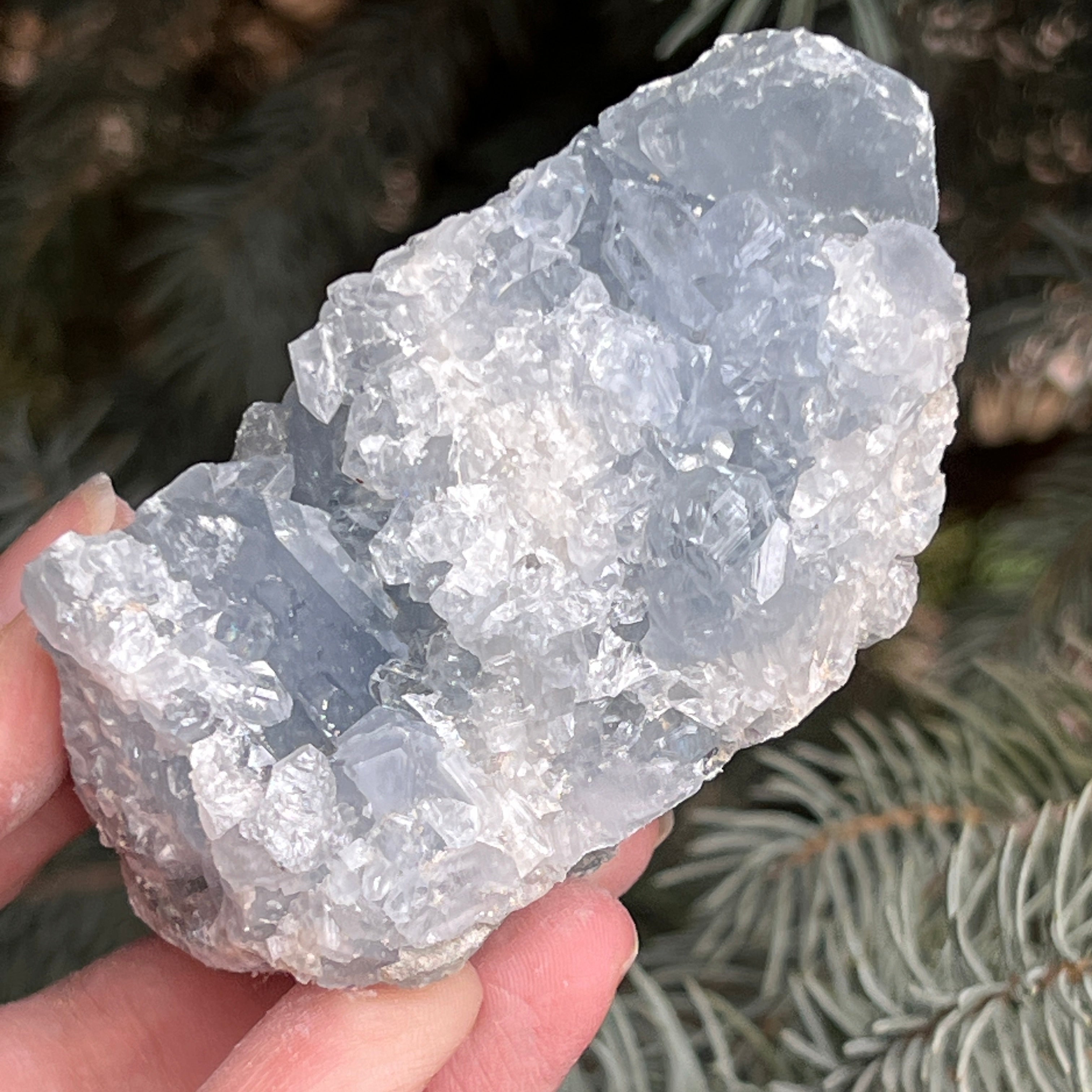 La celestita es una piedra semipreciosa de color azul o incolora, formada por sulfato de estroncio. Posee propiedades calmantes y relajantes, y se utiliza a menudo en la meditación y en prácticas espirituales para promover la paz interior y la claridad mental. La celestita está asociada con el chakra de la garganta y puede ayudar en la comunicación clara y en la expresión de las emociones. Asimismo, se cree que mejora la creatividad, la intuición y las habilidades psíquicas.