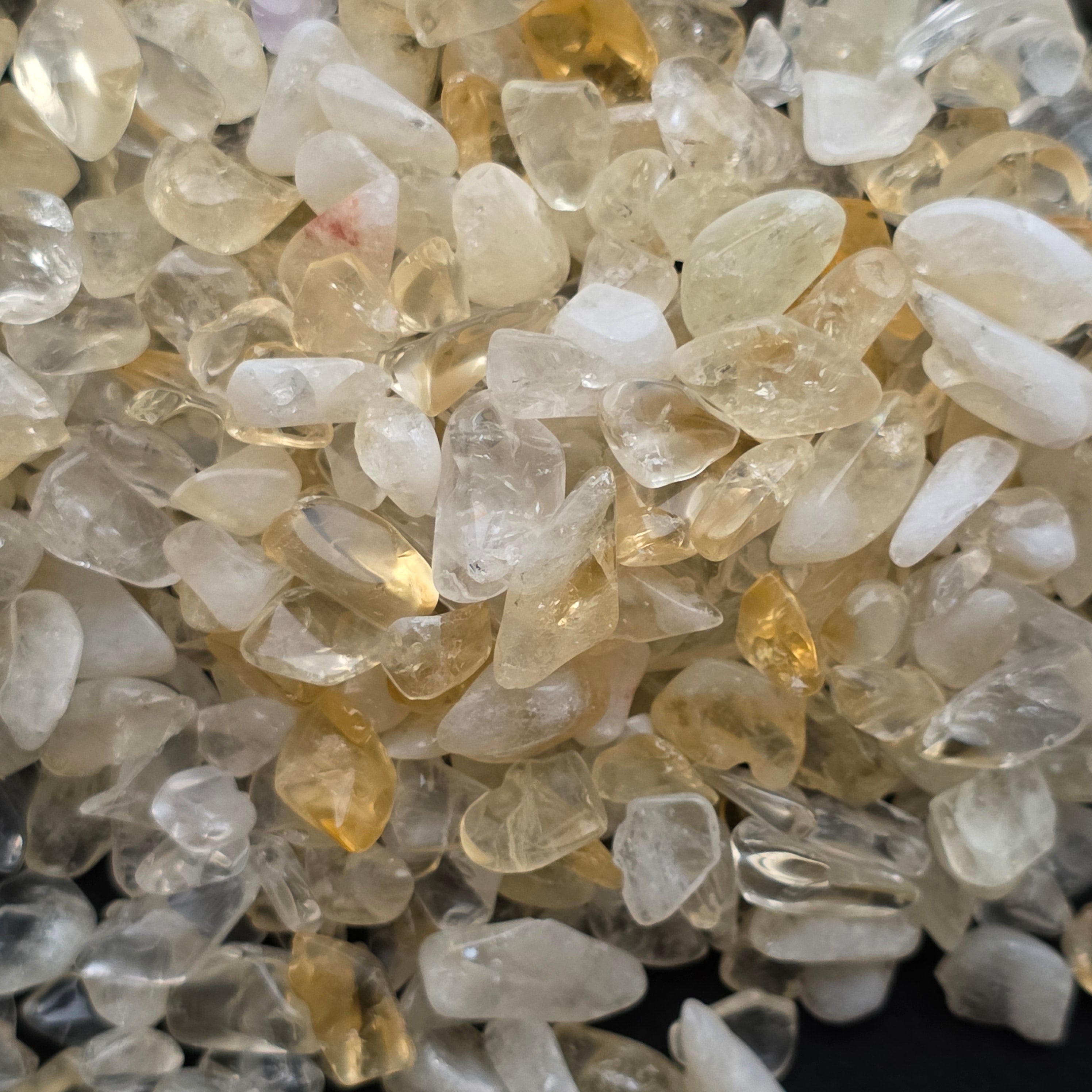 Tipo: chips de citrino natural (piedras pequeñas pulidas, irregulares)