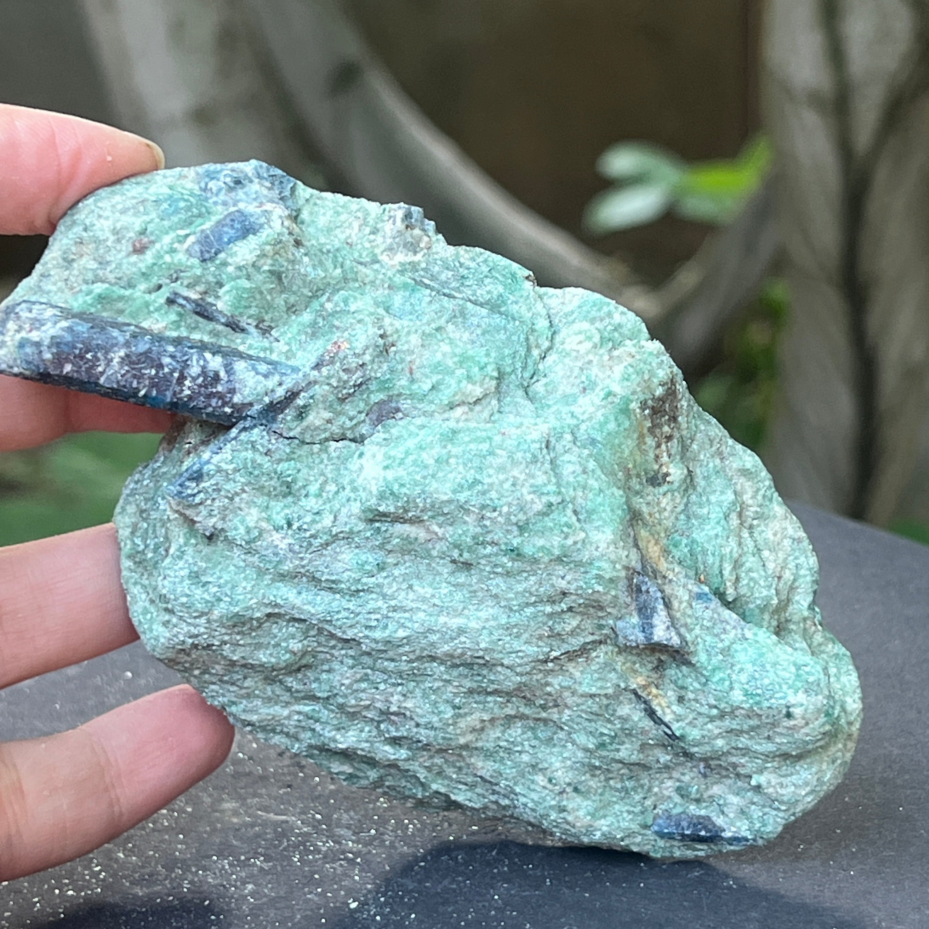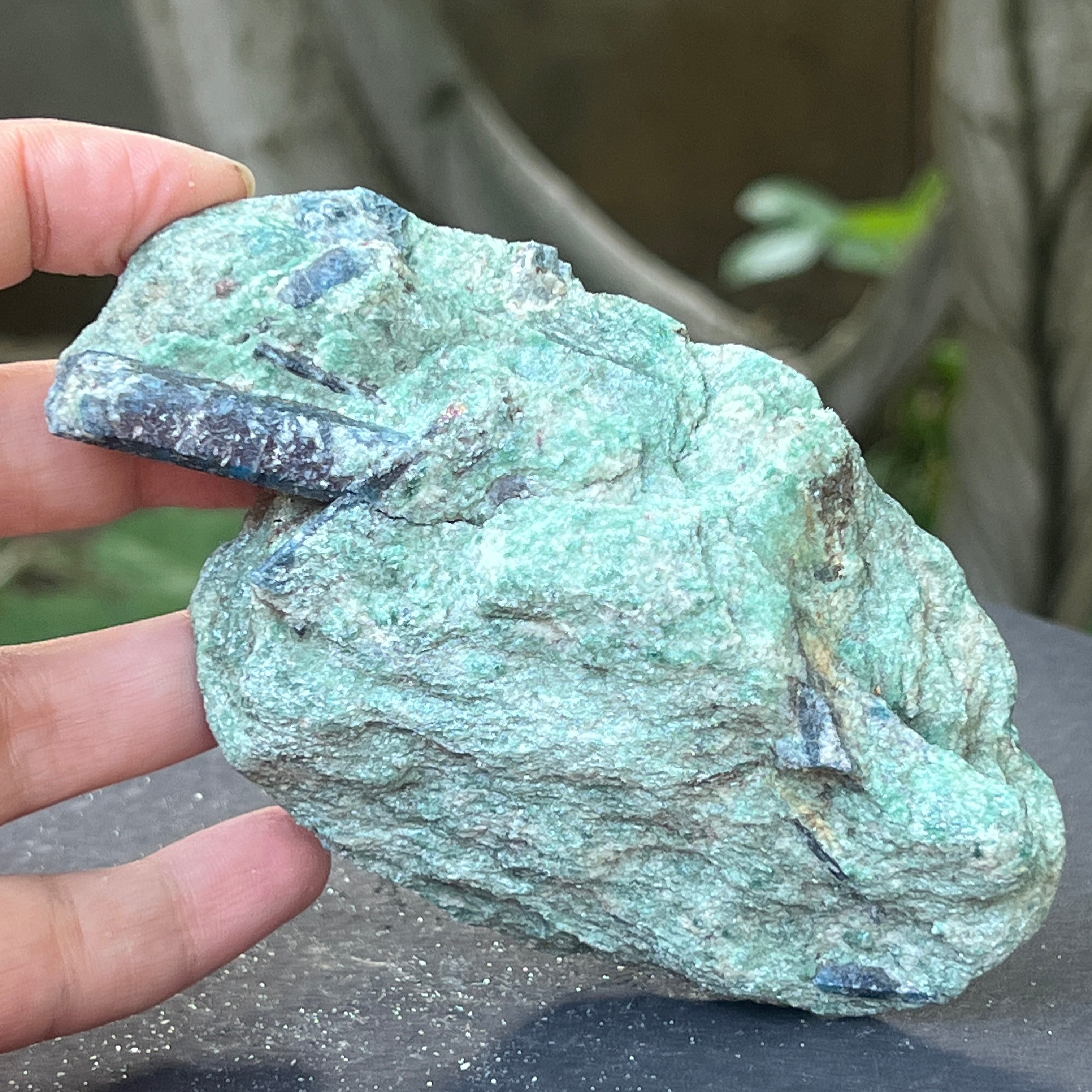 Cianita azul (cianita) en piedra en bruto fucsita | Modelo 7