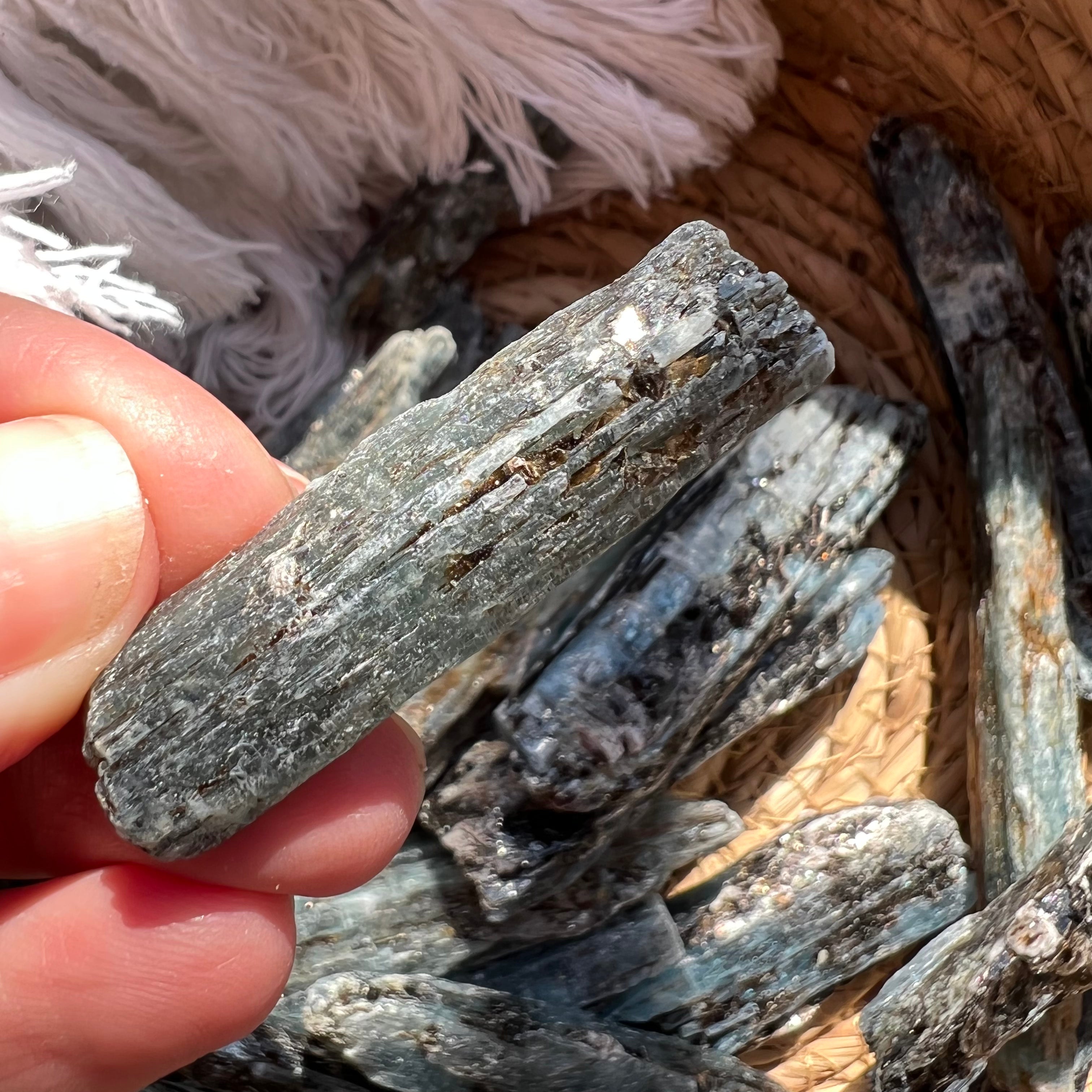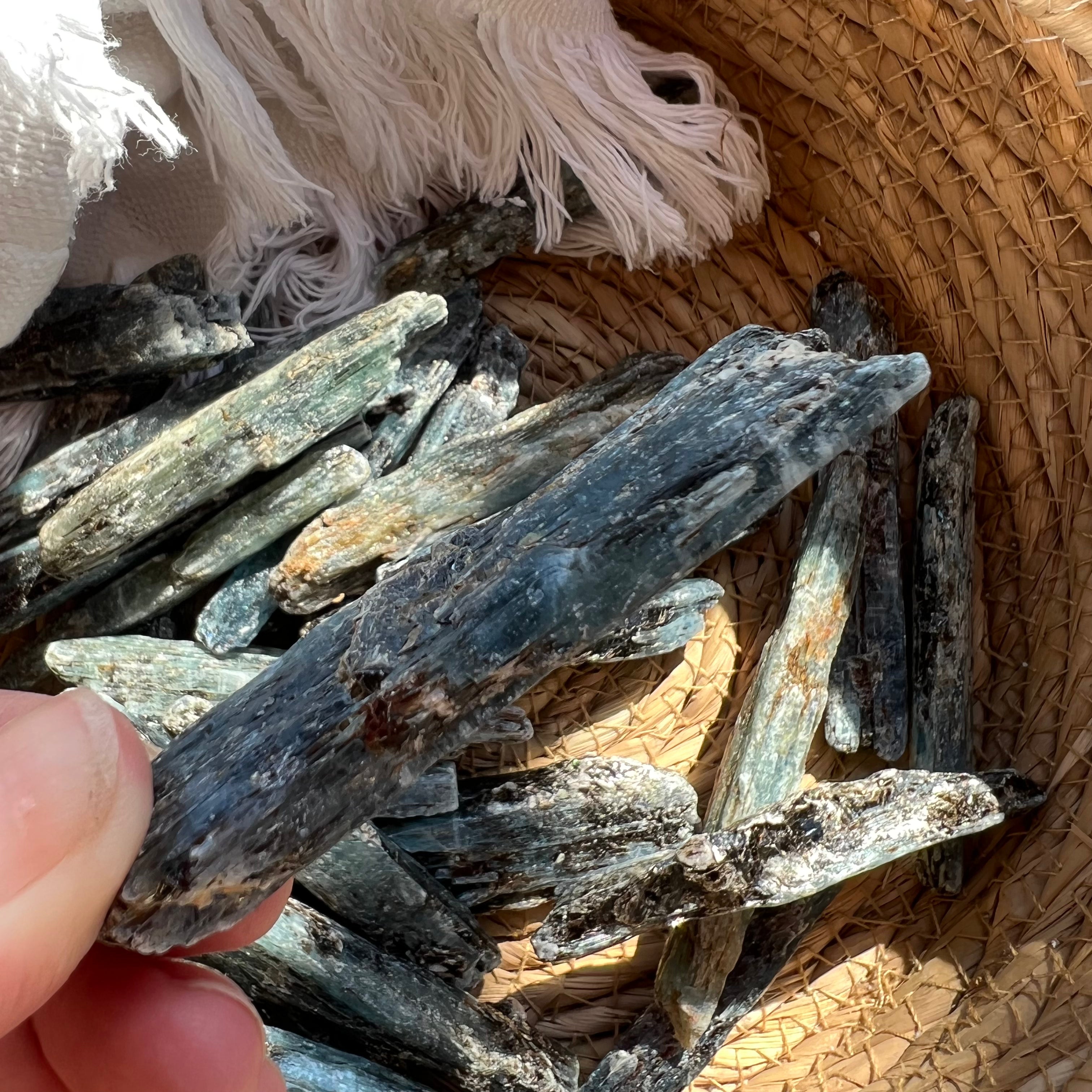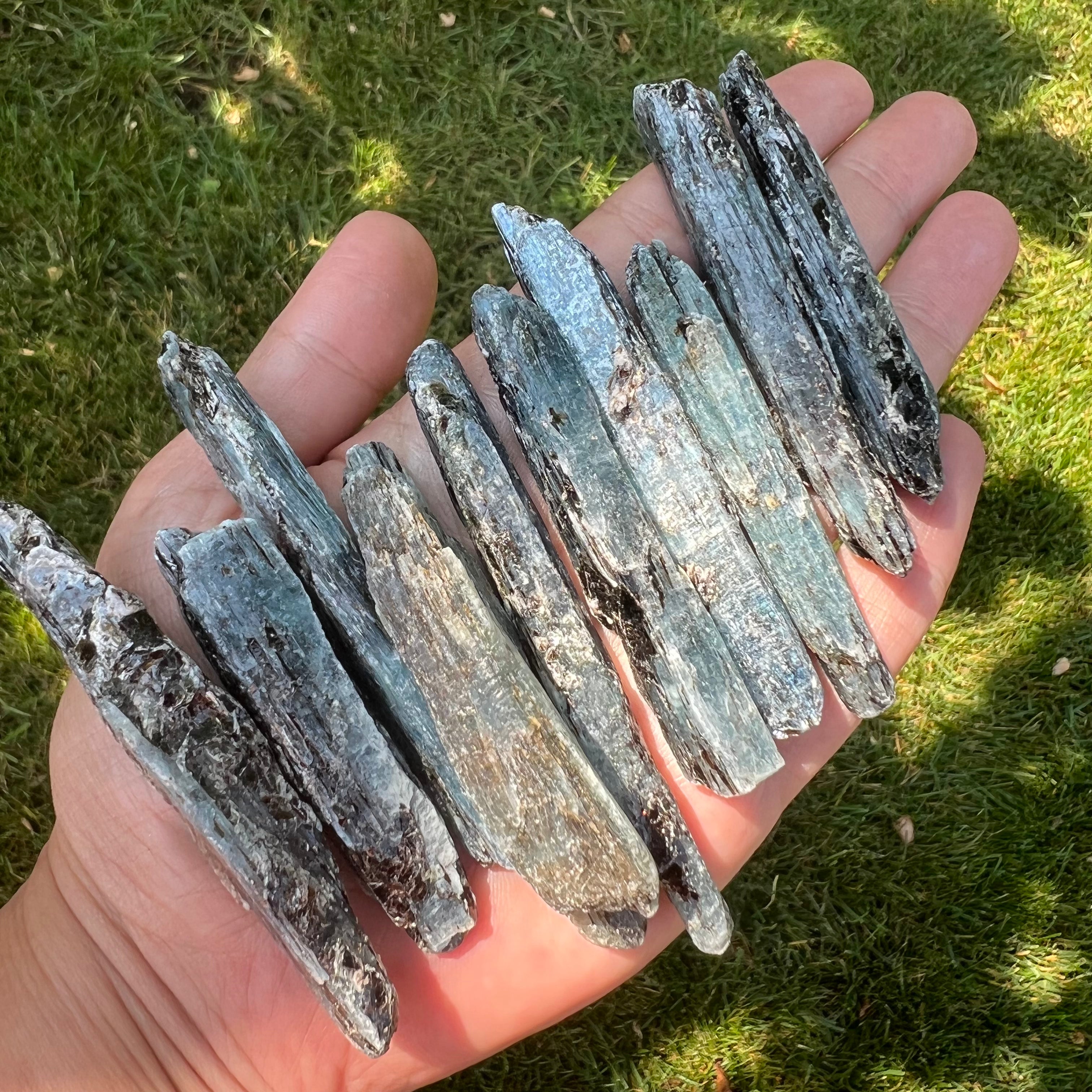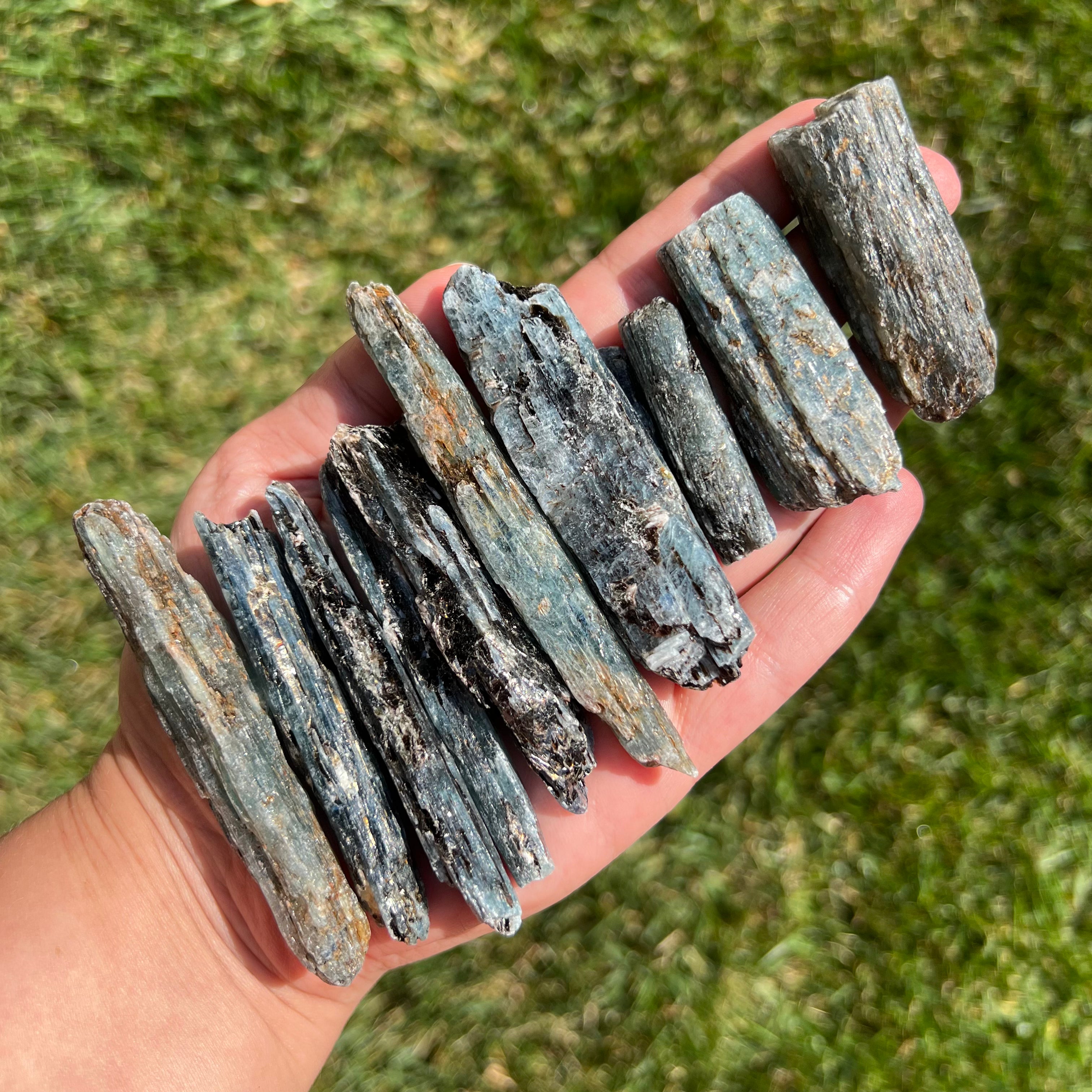 Cianita azul (Cianita) piedra en bruto, de dimensiones entre 6 y 8 cm. El precio varía según el tamaño de la piedra, por favor seleccione el tamaño deseado. El precio es por una unidad.