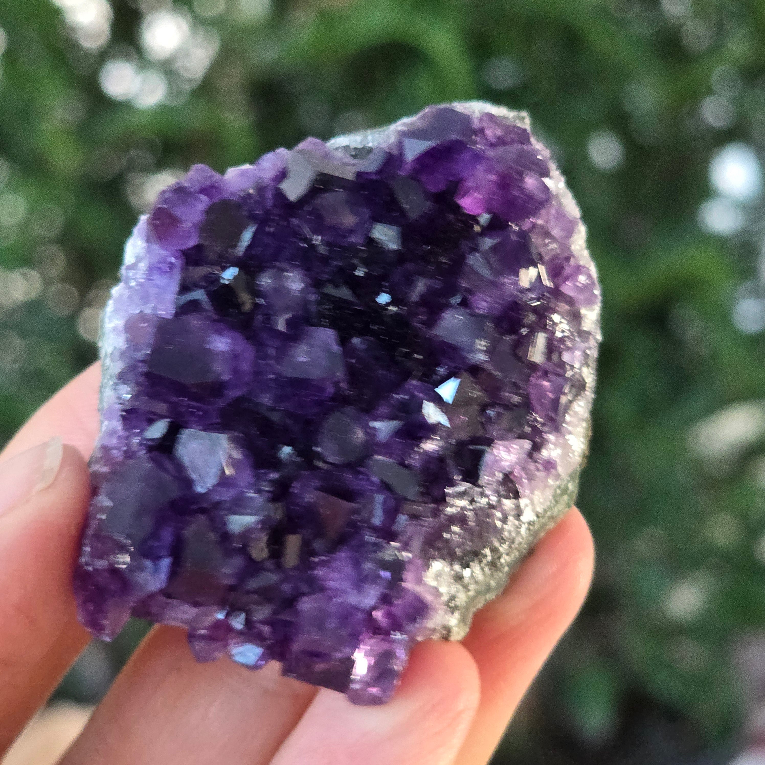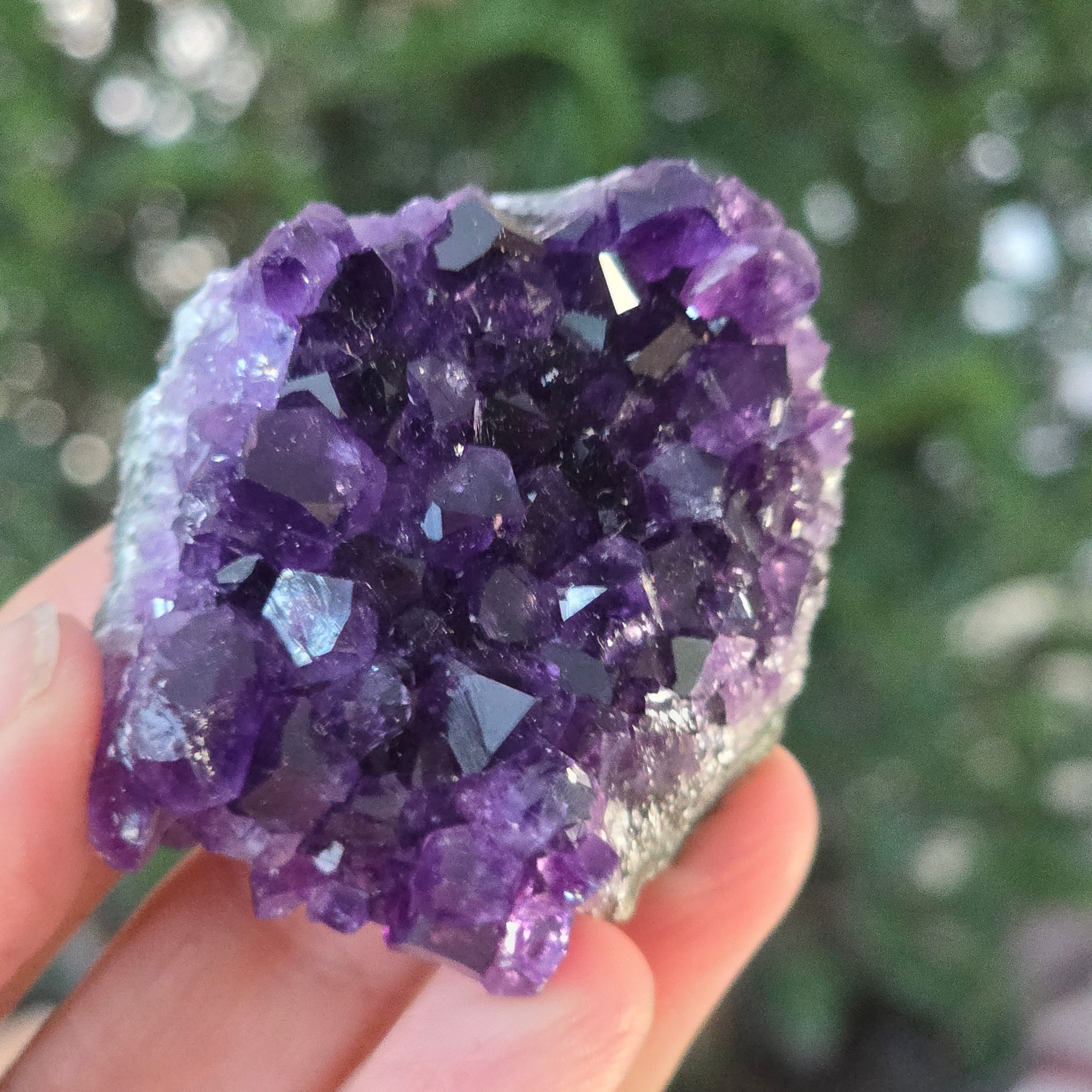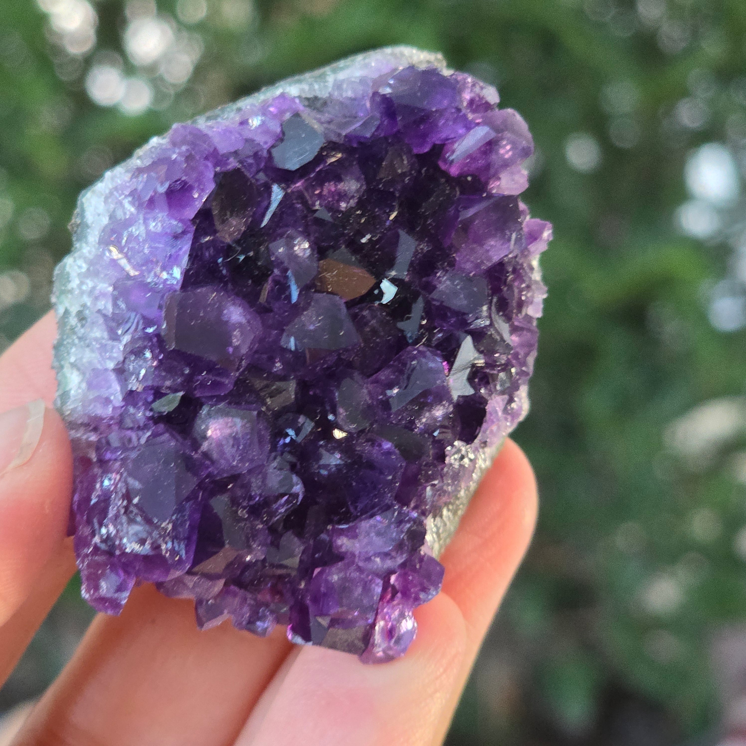 • Color: violeta intenso con reflejos luminosos, tono profundo característico de la amatista uruguaya