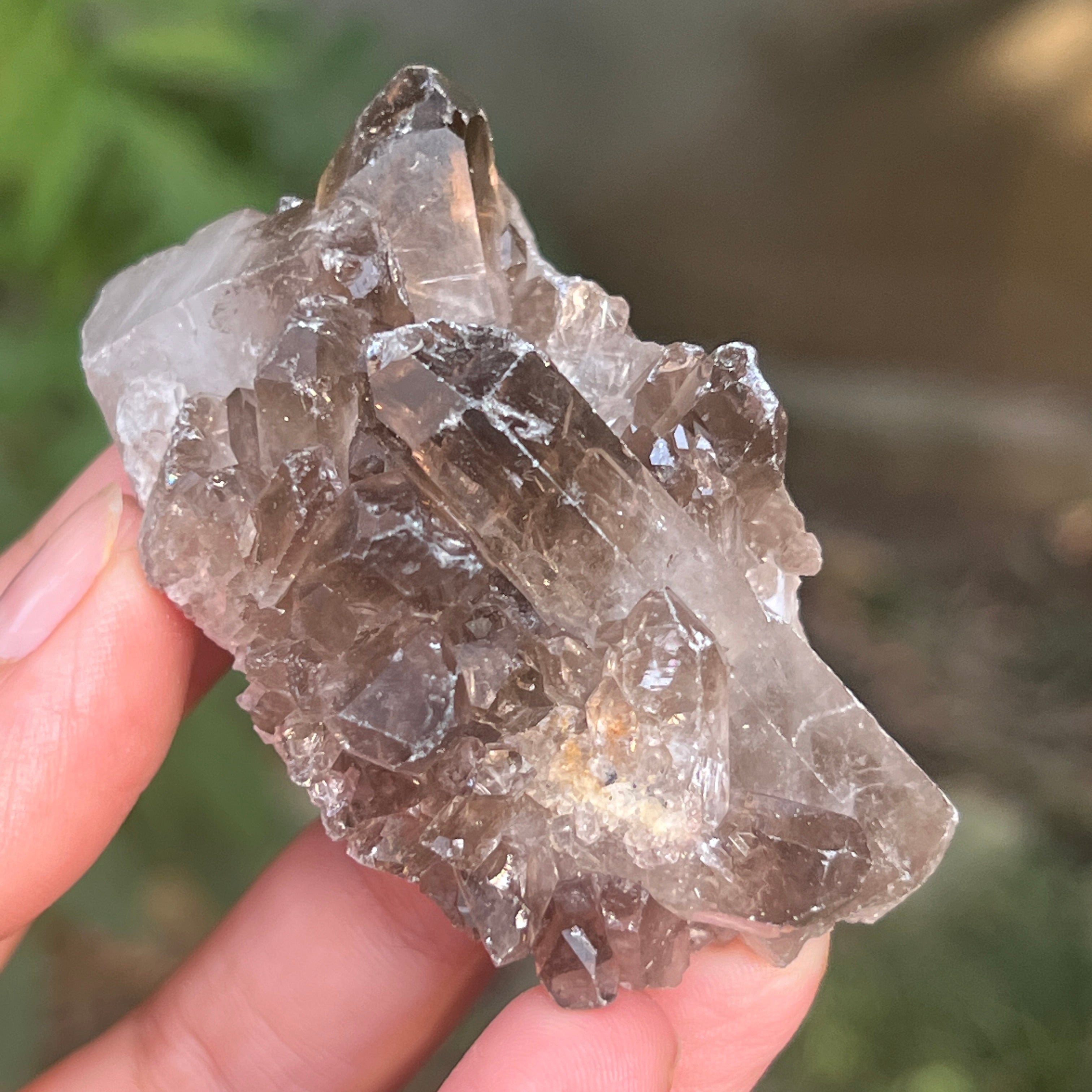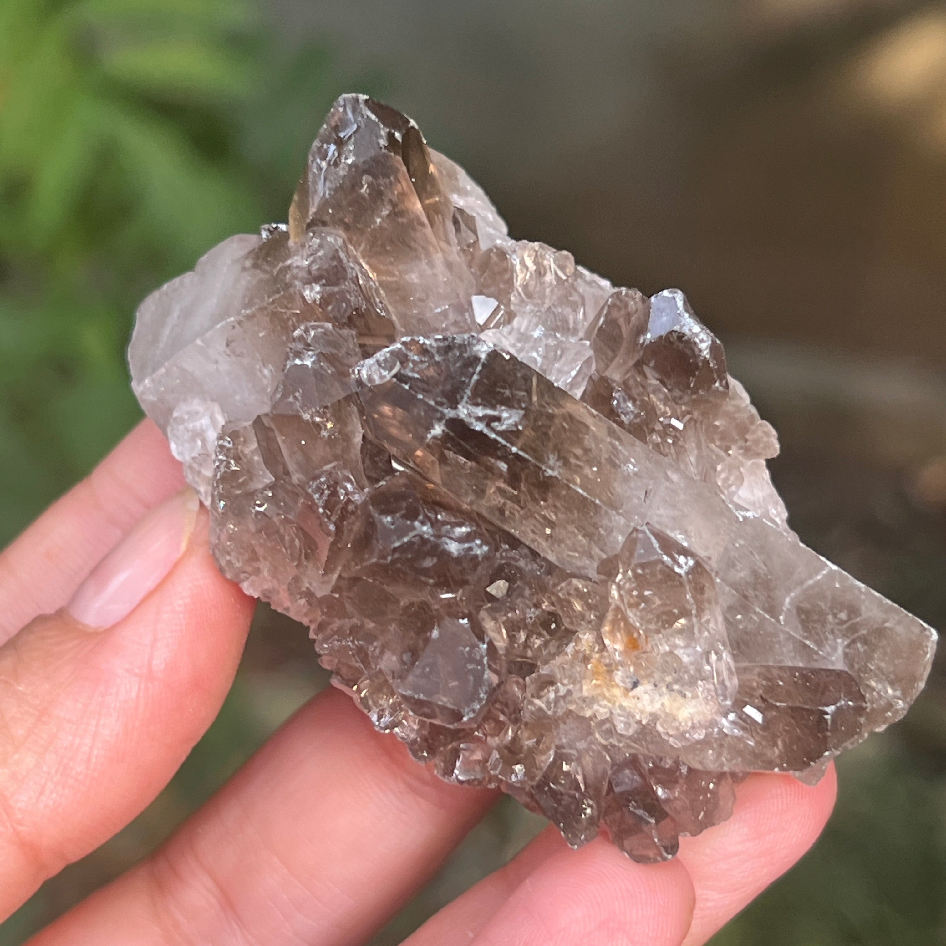 El color del cuarzo ahumado es el resultado de la irradiación natural o de la presencia de impurezas de aluminio durante su formación. Este proceso puede producir una amplia gama de tonos, desde pálidos hasta intensos.