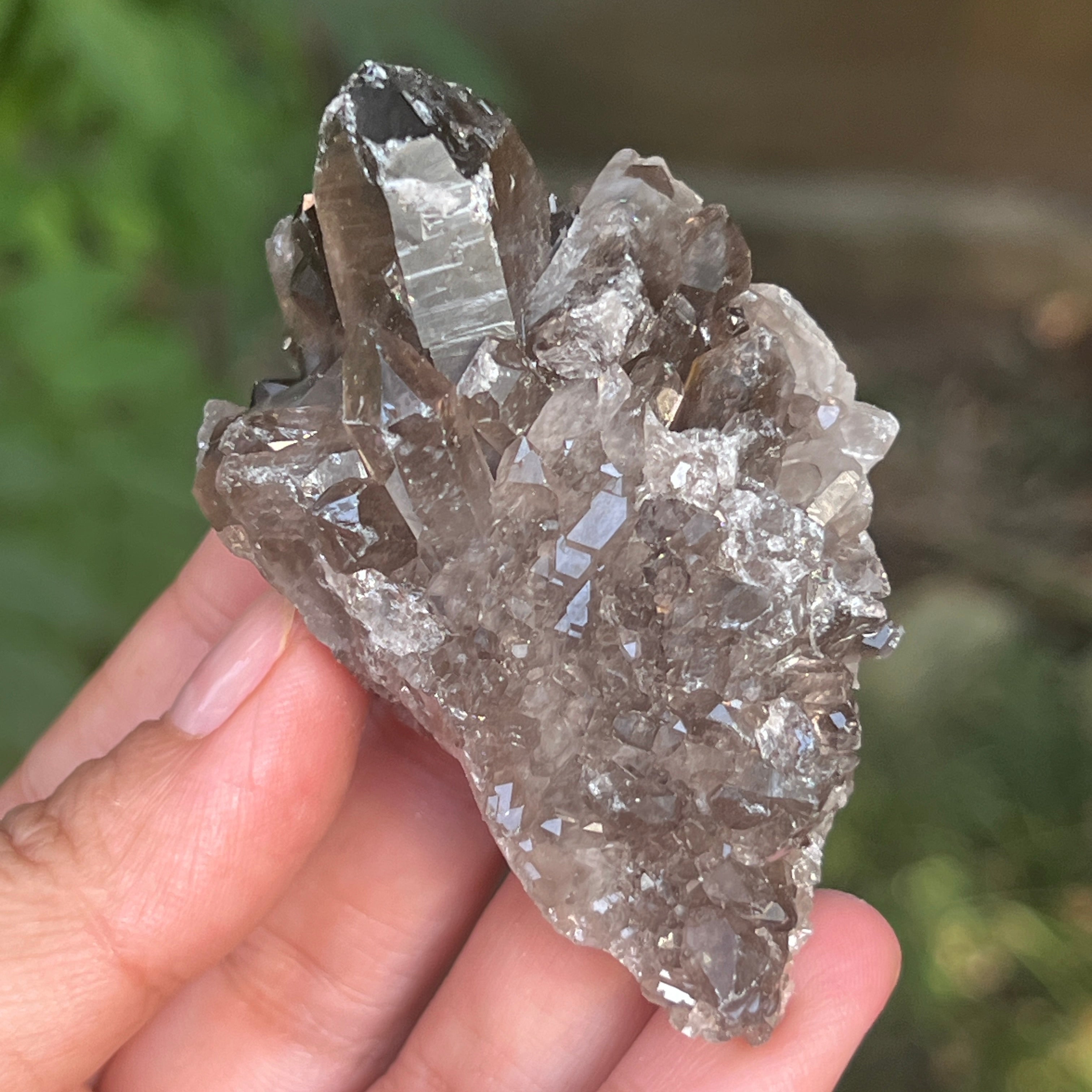 El color del cuarzo ahumado es el resultado de la radiación natural o de la presencia de impurezas de aluminio durante su formación. Este proceso puede producir una amplia gama de tonos, desde pálidos hasta intensos.