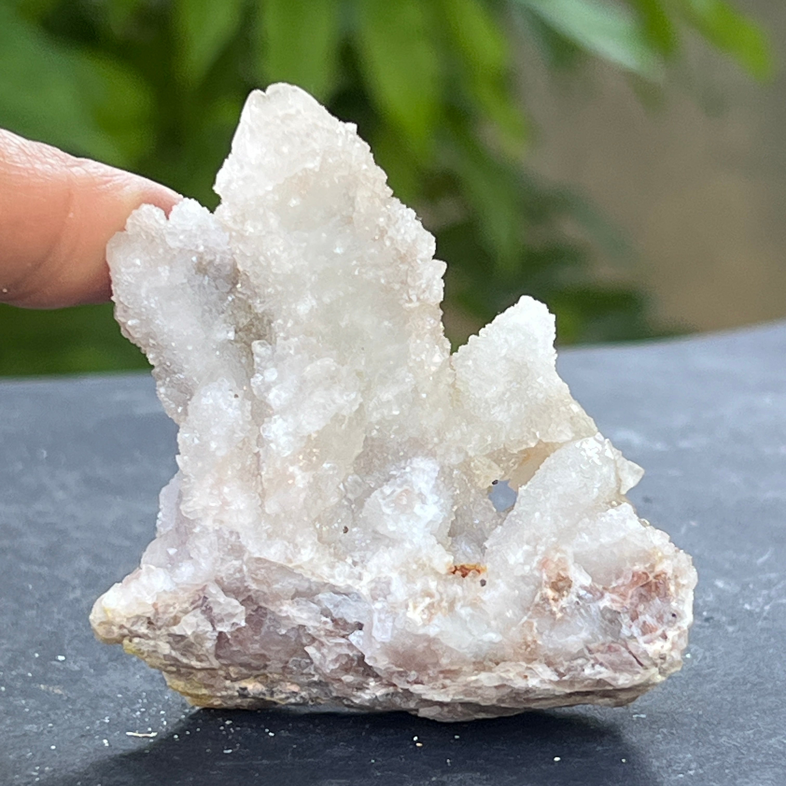 Formado en cavidades profundas de la corteza terrestre, en zonas donde las condiciones de temperatura, humedad y mineralización se alinearon perfectamente, la cristalización tomó una forma vertical, columnar, similar a las estalactitas minerales. Desde las paredes desnudas de una cueva, las moléculas de silicio se reunieron gota a gota, formando agregados radiales y compactos de cristales finos, como agujas de luz detenidas en un movimiento ascendente.