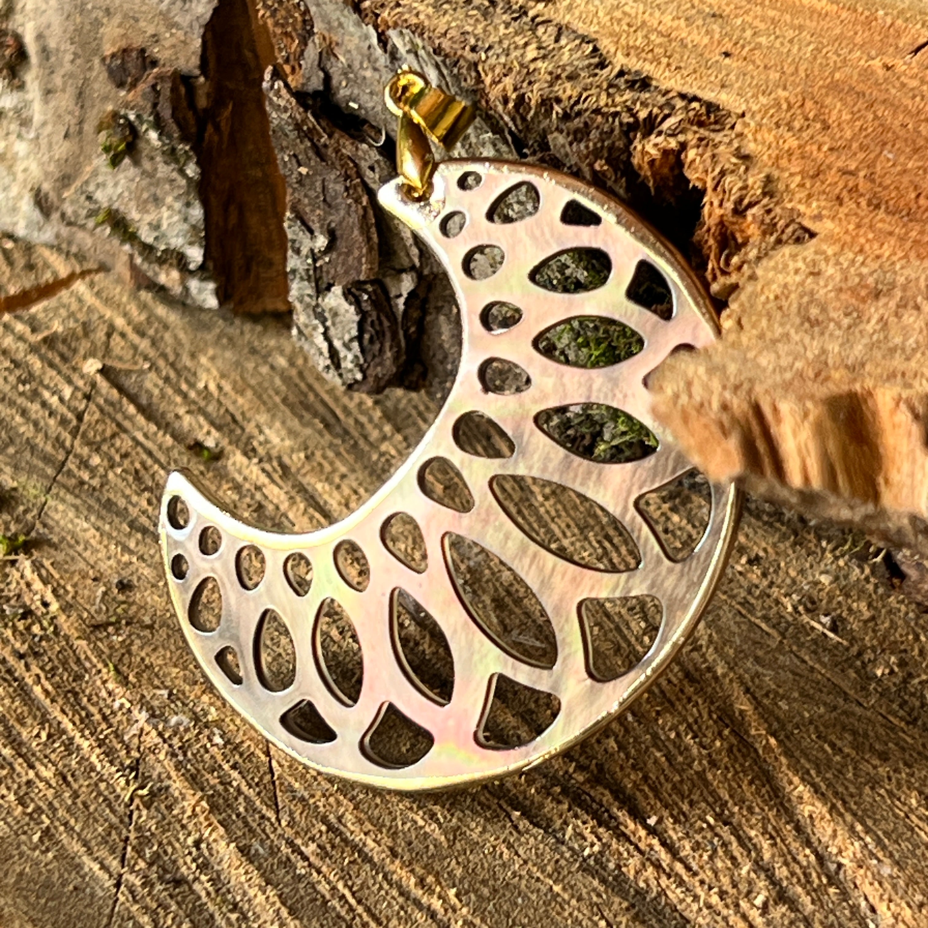 La concha de abulón es conocida por sus iridiscencias únicas en tonos de azul, verde y violeta, y se utiliza frecuentemente en joyería y artesanía. Considerada un símbolo de tranquilidad y conexión con la energía del océano, se aprecia por su belleza natural. Los colgantes y accesorios de abulón son piezas elegantes y versátiles, ideales para cualquier ocasión.