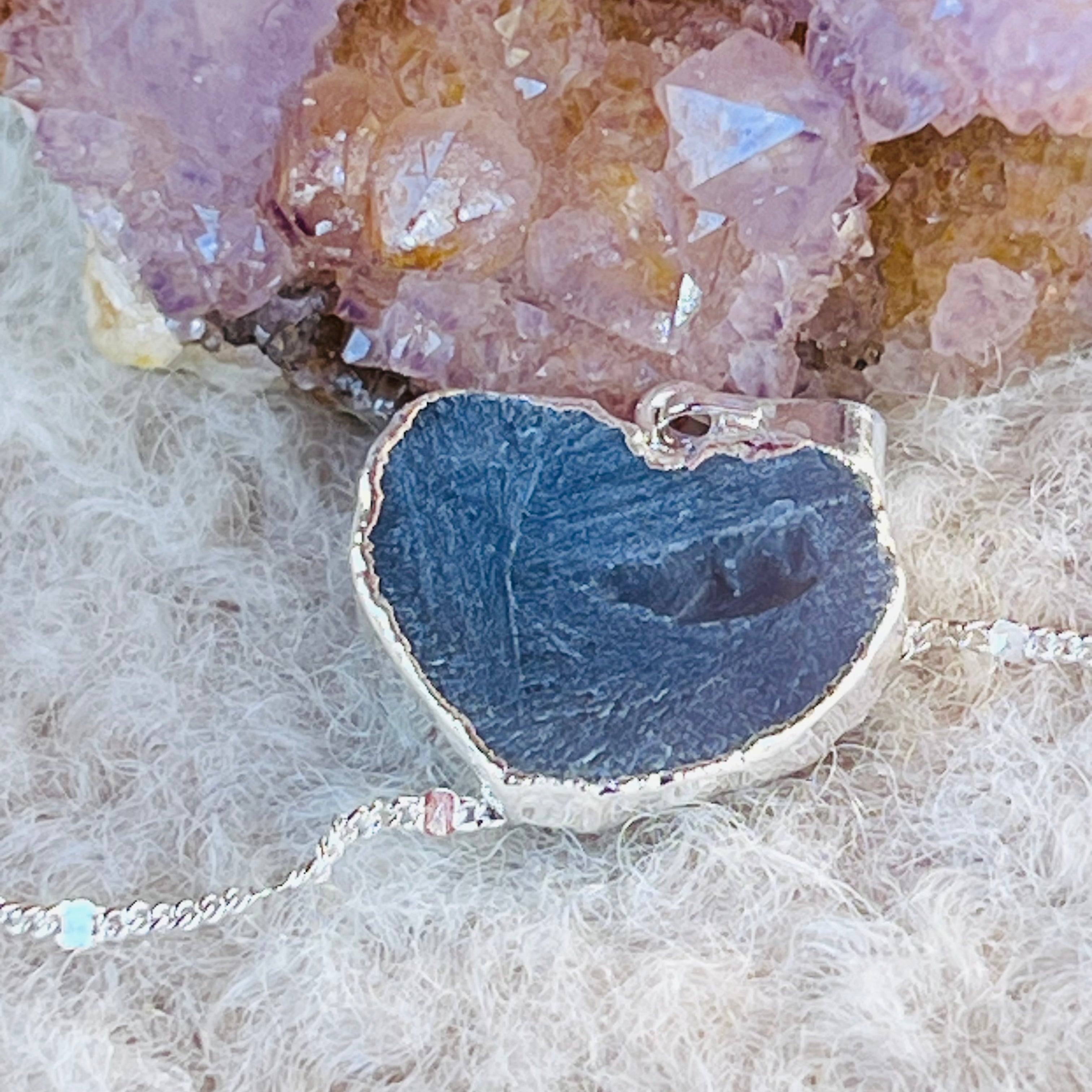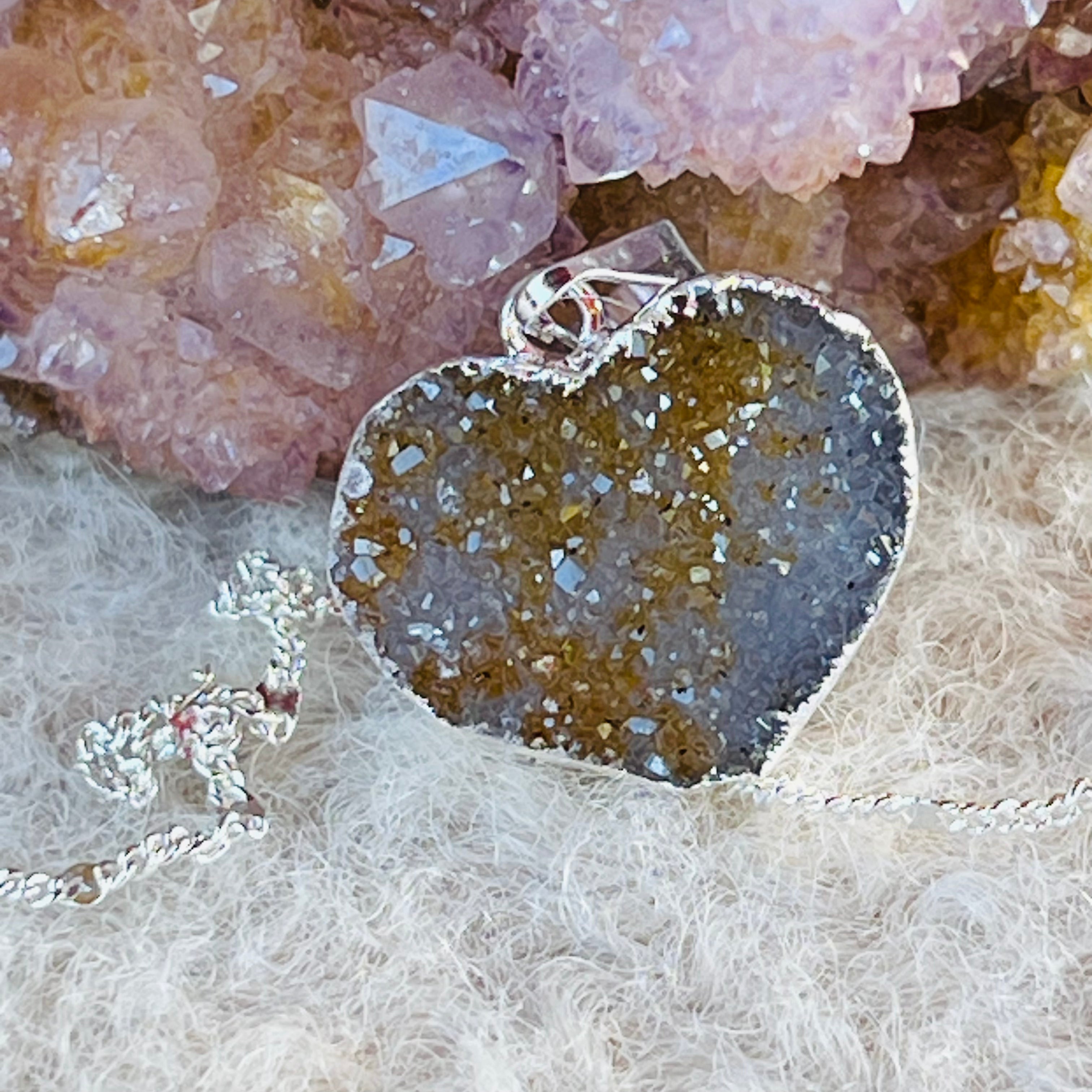Reseñas - Colgante corazón ágata druzy chapado en plata de Brasil modelo 3