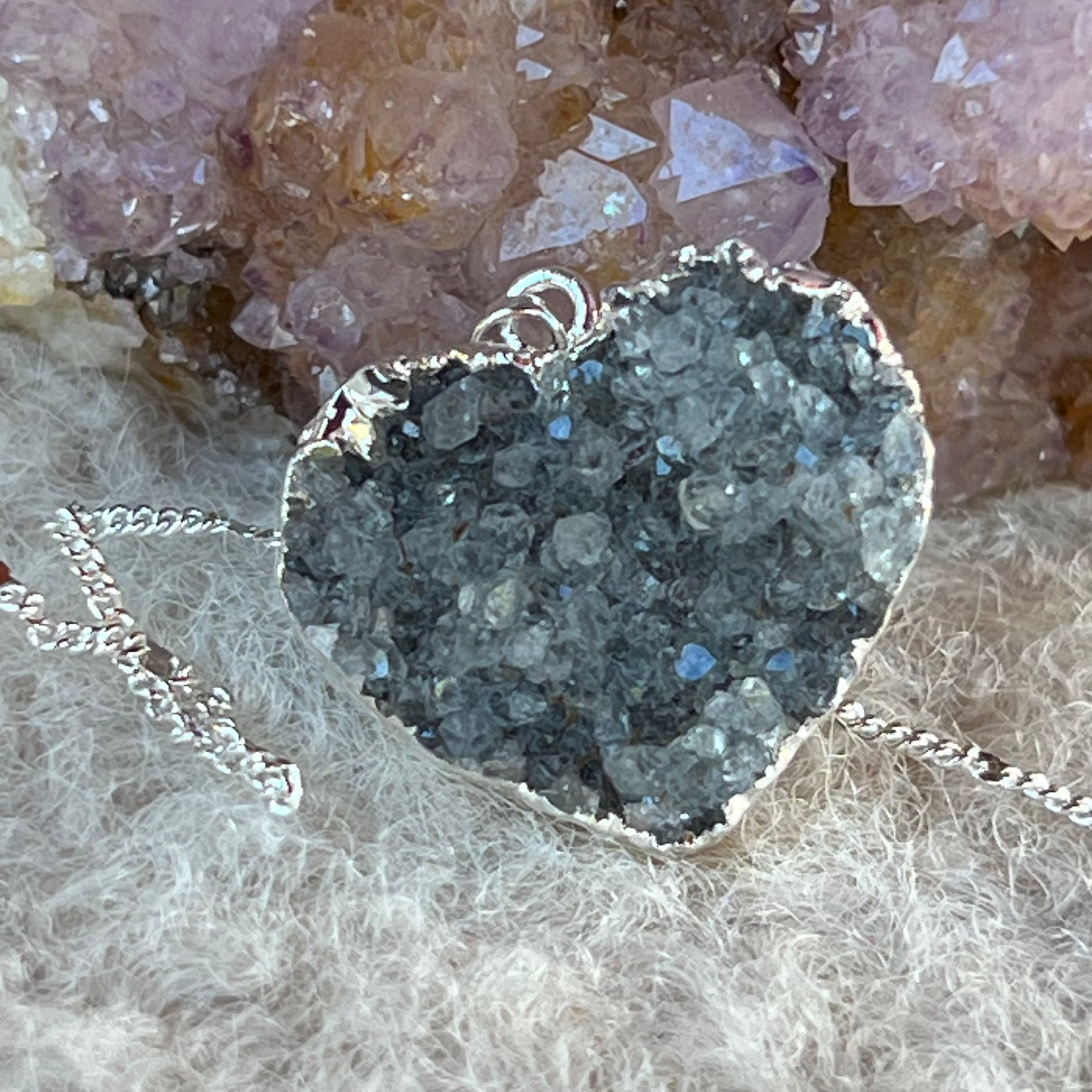 Reseñas - Colgante corazón ágata druzy chapado en plata de Brasil modelo 4