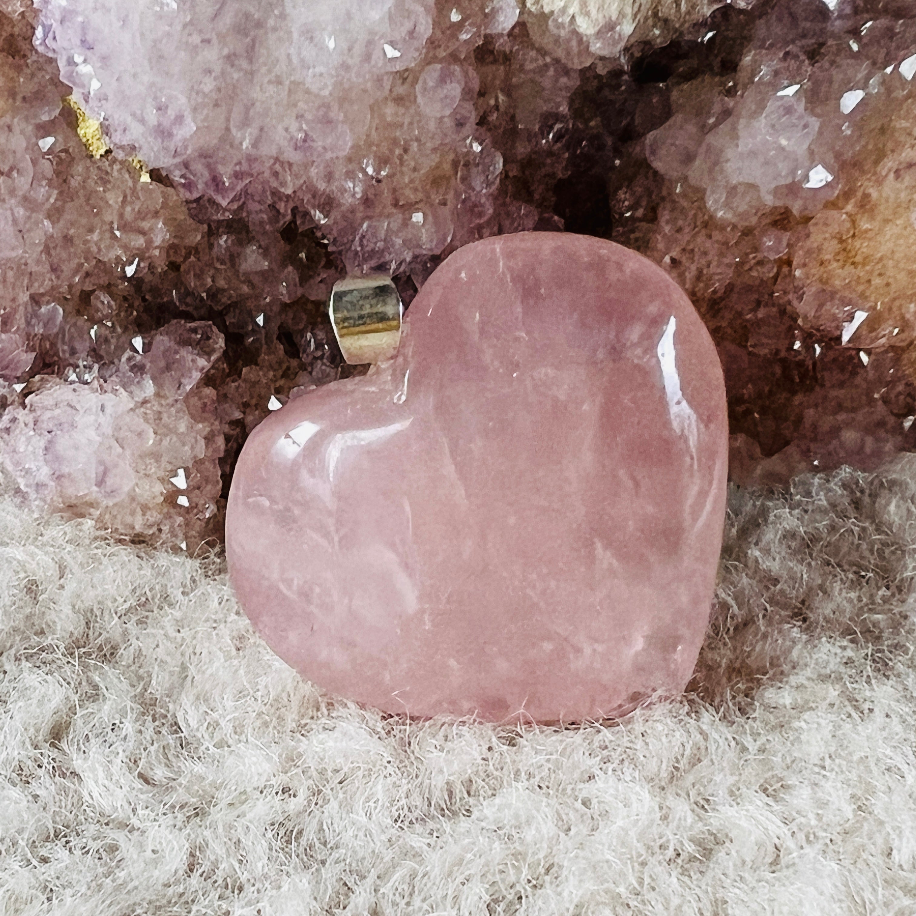 Colgante corazón de cuarzo rosa