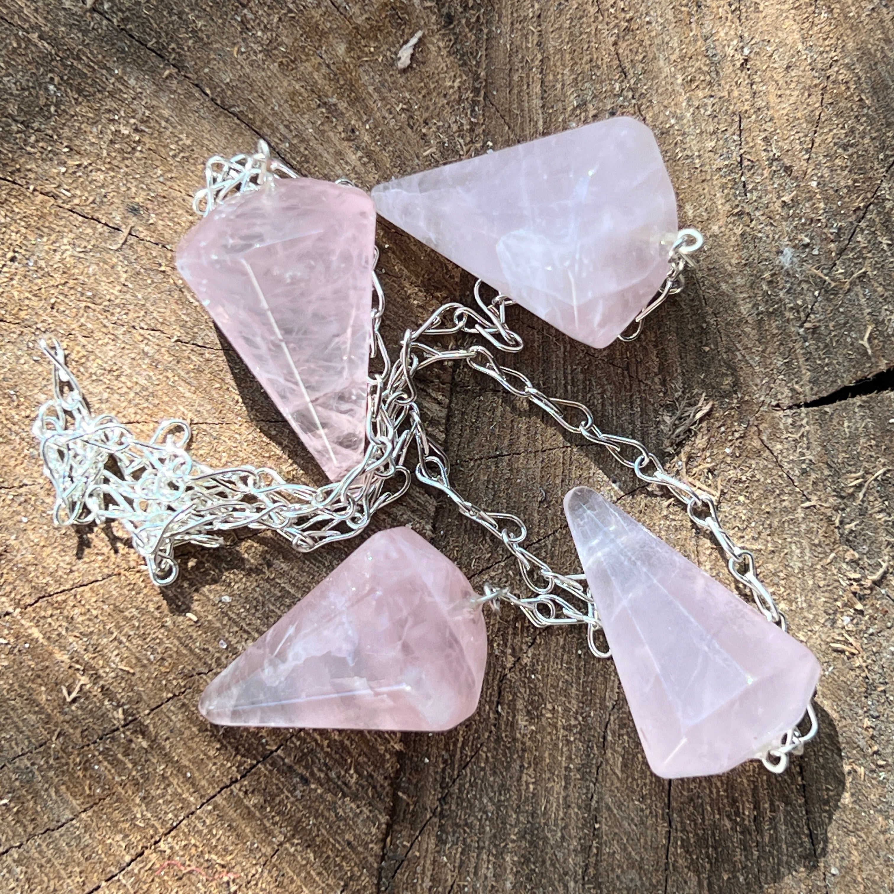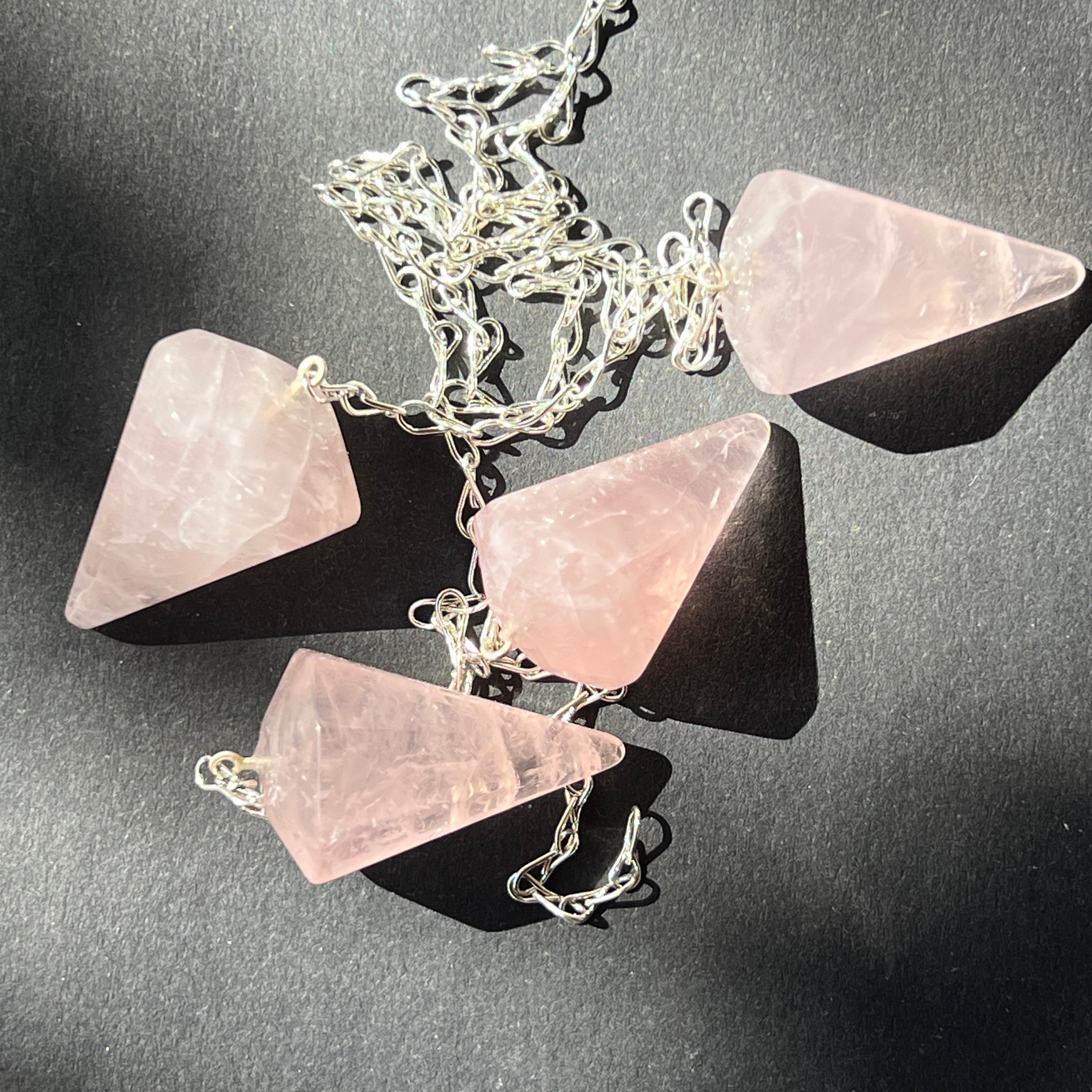 Descriere - Péndulo de cuarzo rosa con cordón normal