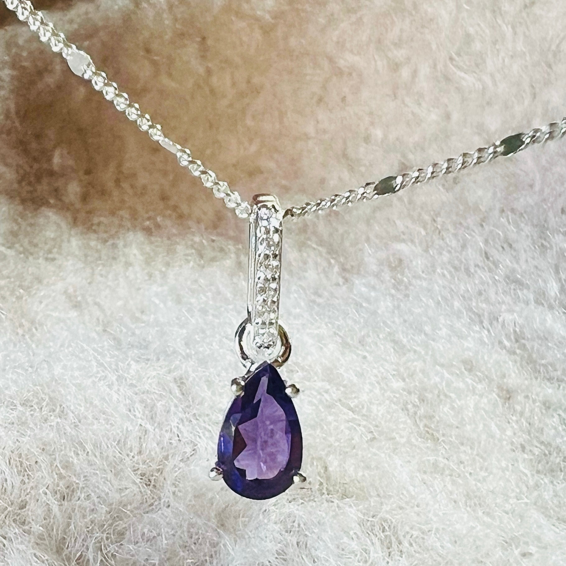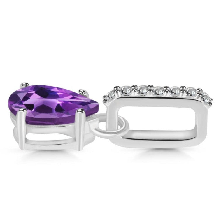 Colgante de amatista y topacio blanco en plata 8 mm Pera