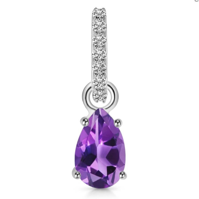 Descriere - Colgante de amatista y topacio blanco en plata 8 mm Pera
