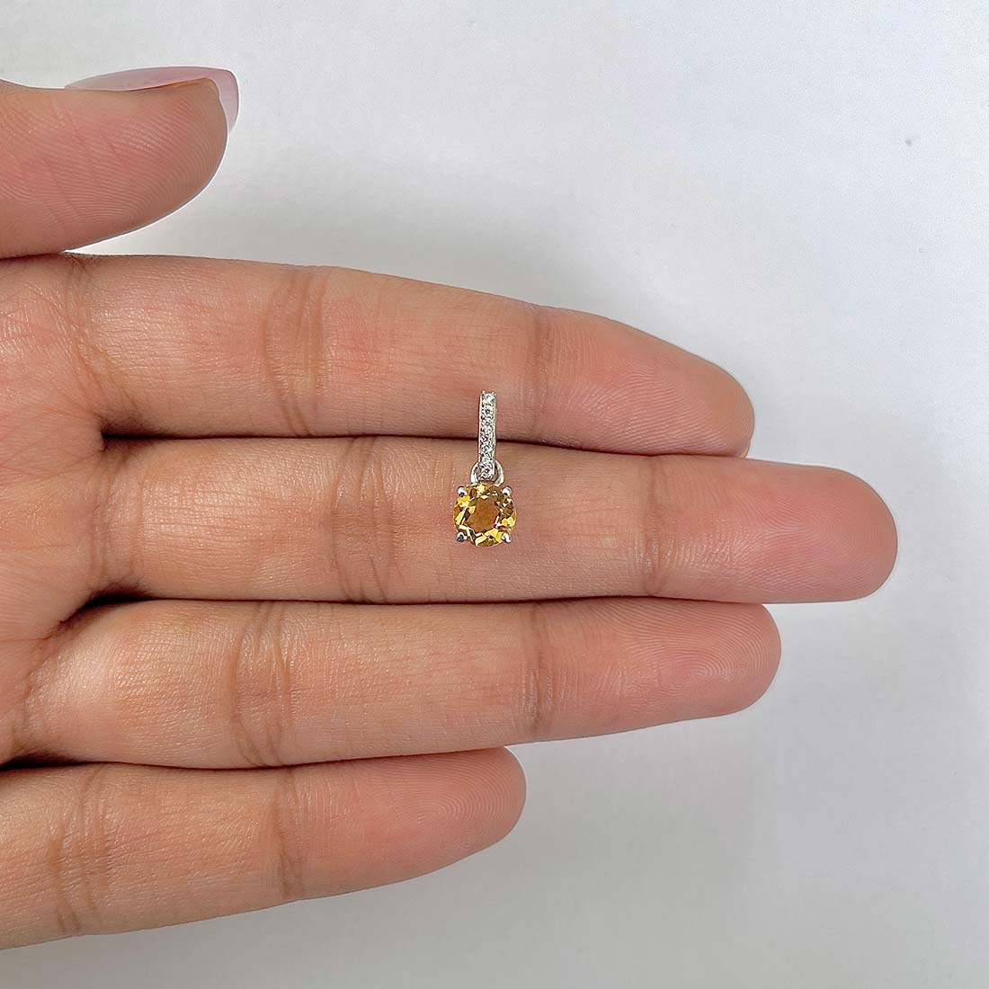 Este colgante versátil combina a la perfección tanto con cadenas finas de plata para un look clásico y elegante, como en combinaciones modernas con collares múltiples. Ideal para usar a diario, pero también en ocasiones especiales donde la luz del citrino aporta un toque de refinamiento.