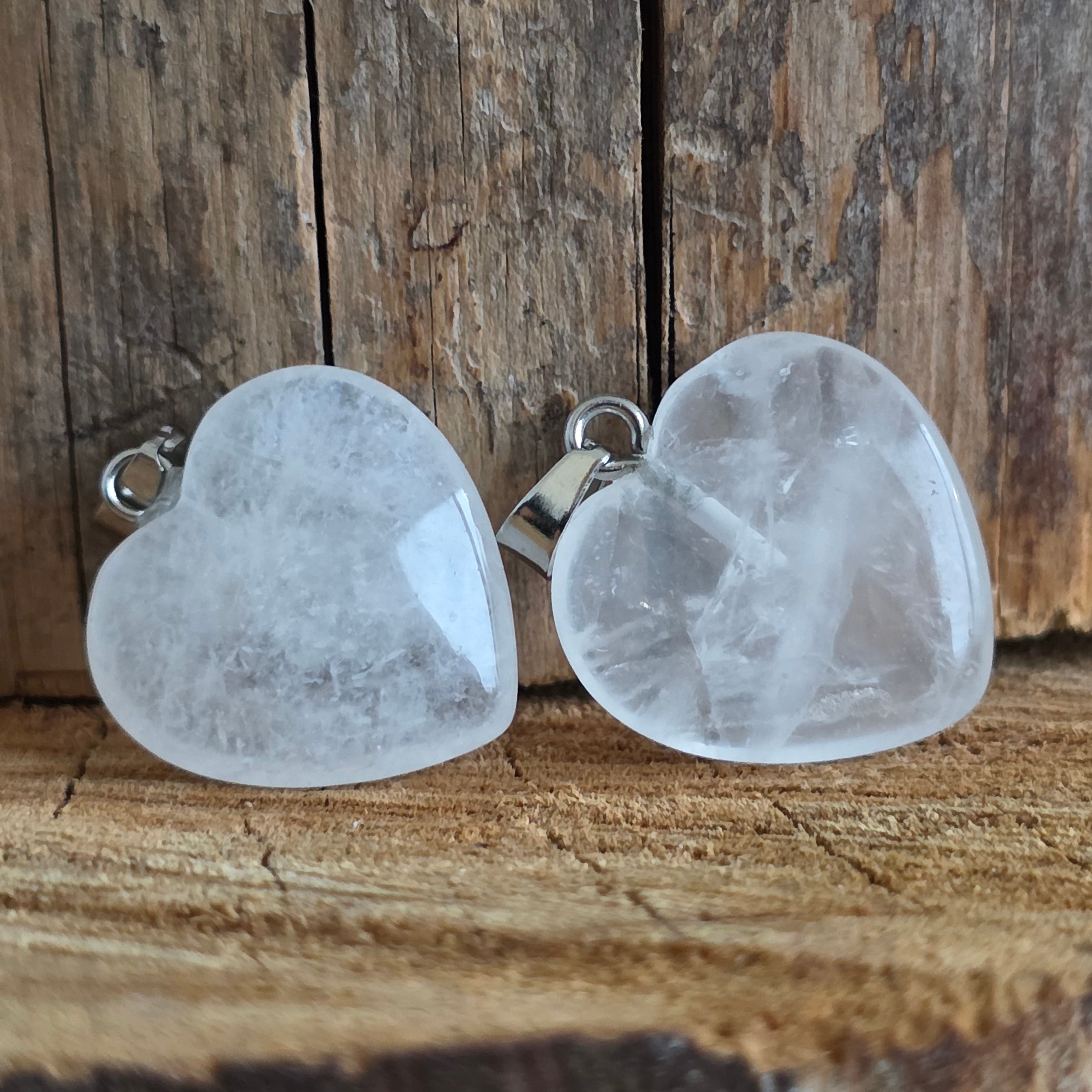 Colgante de corazón de cuarzo incoloro / cuarzo de roca