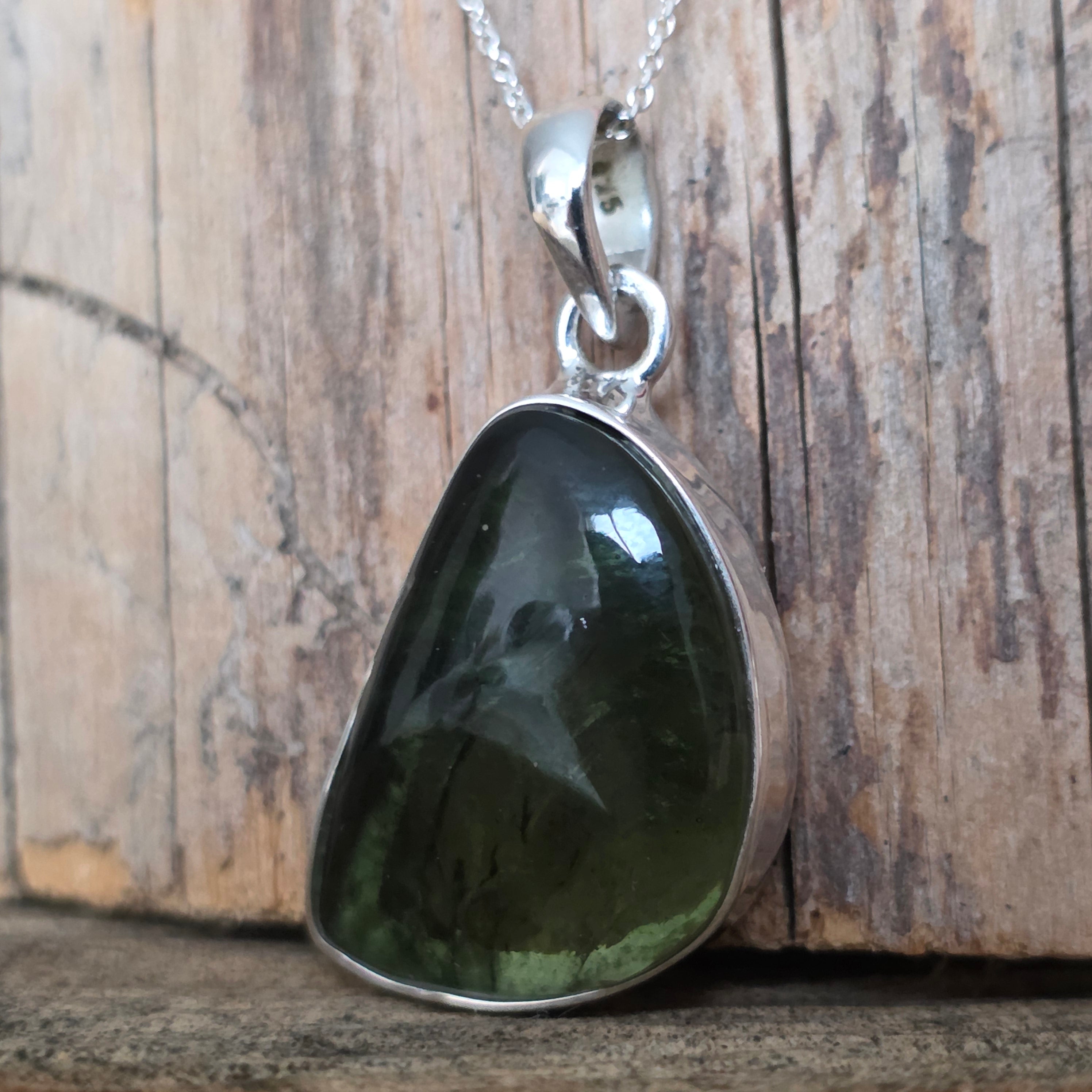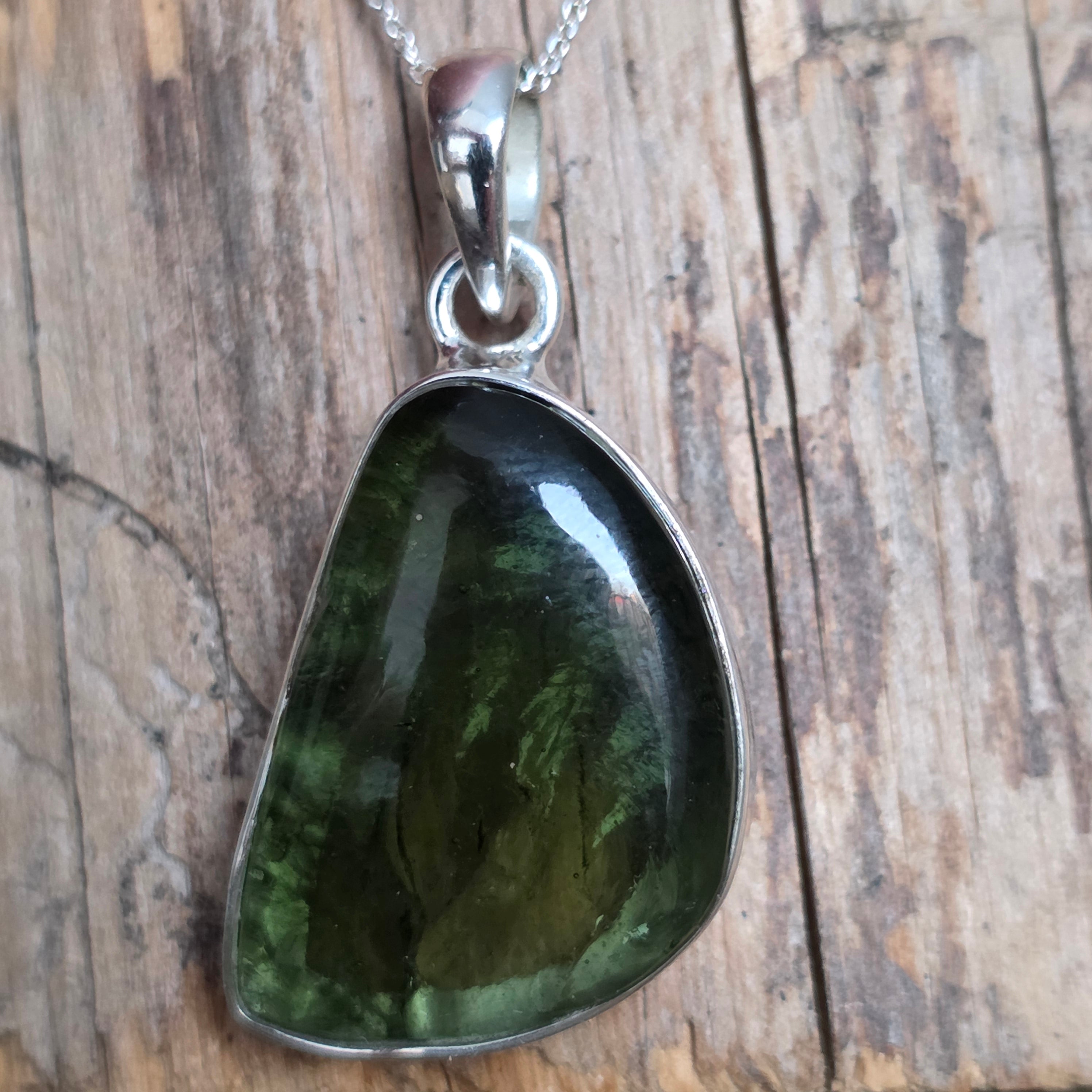 Colgante de moldavita de plata | Modelo 16