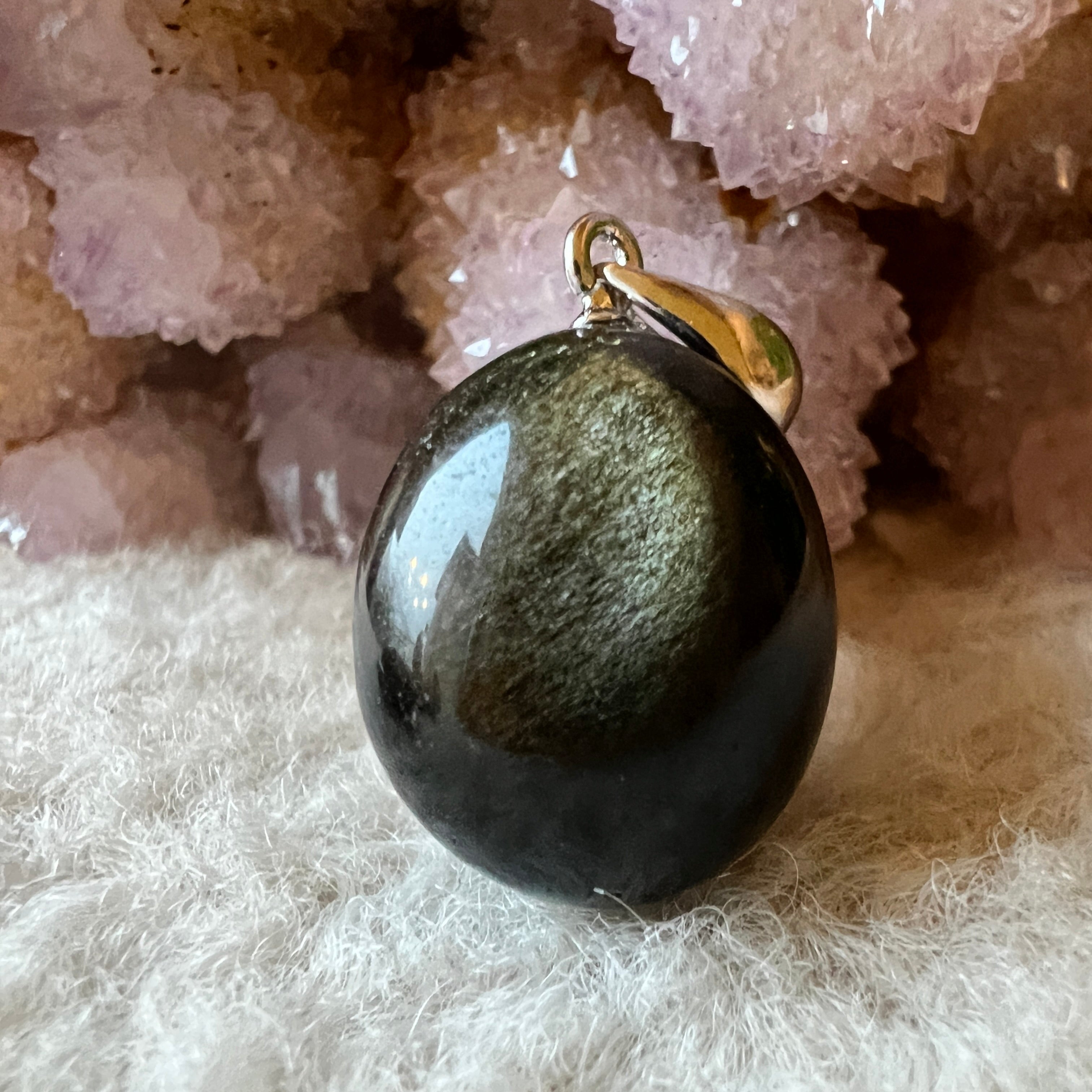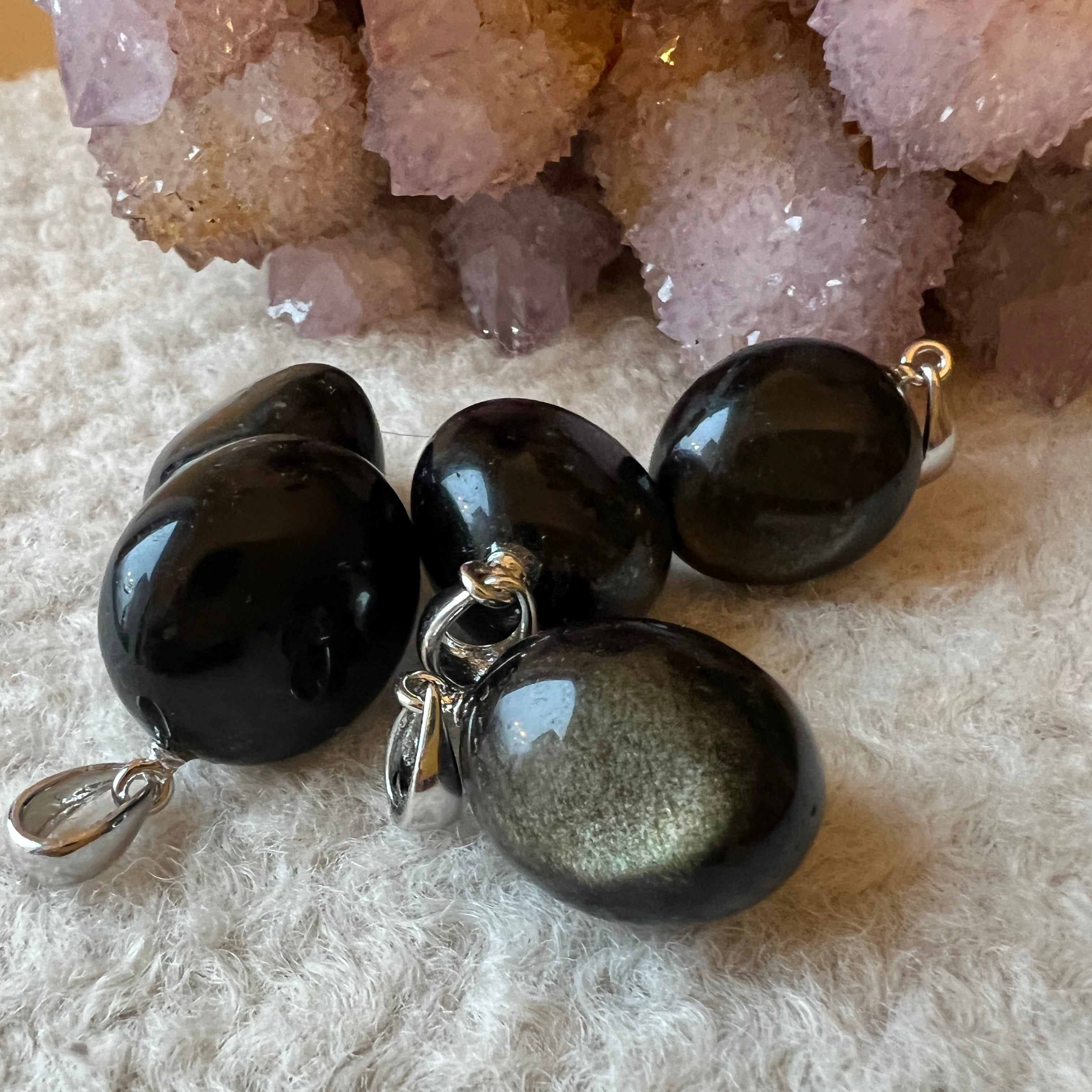 Colgante de obsidiana plateada tumble