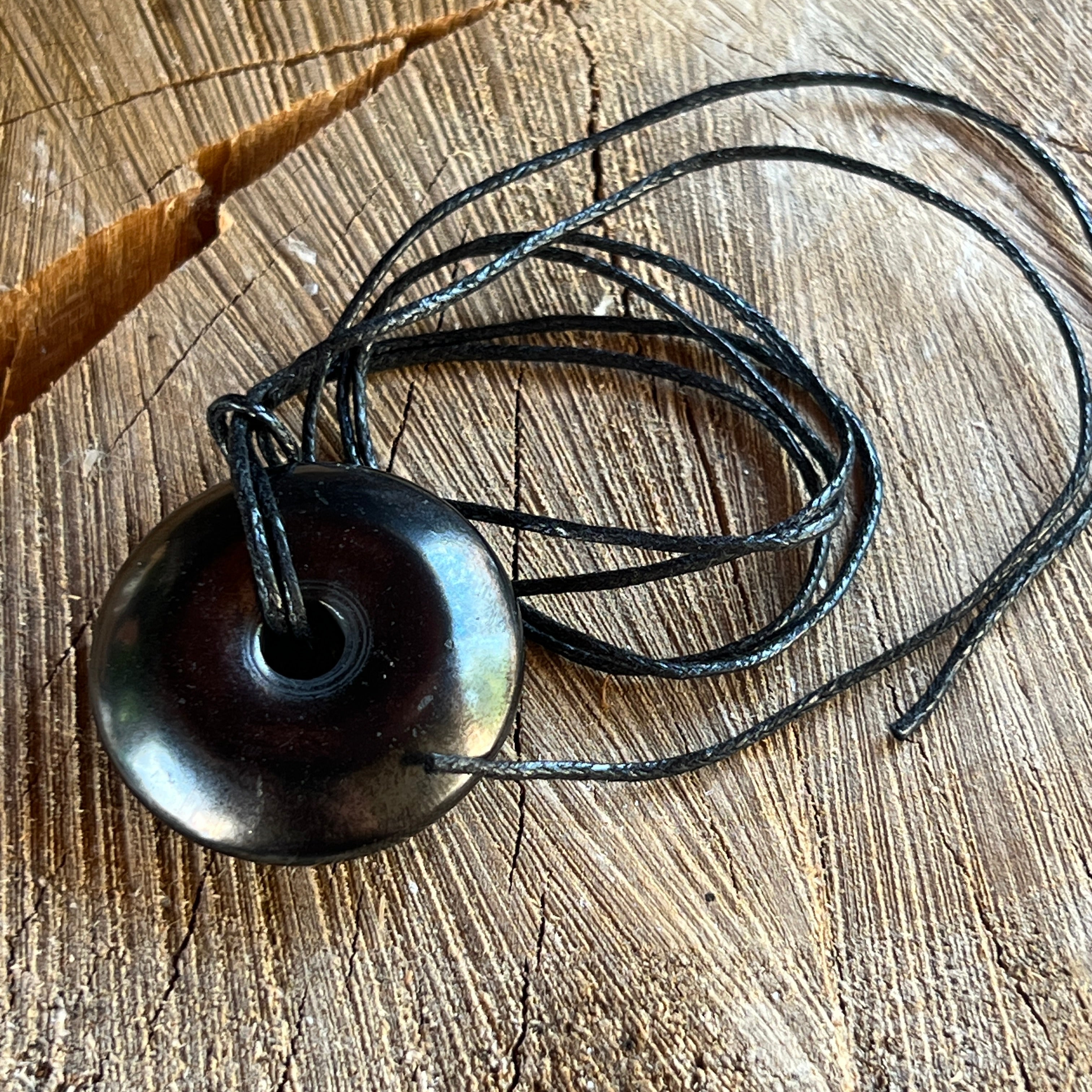 Colgante DONUT de Shungit 2,7 cm, tamaño del colgante 2,7 centímetros